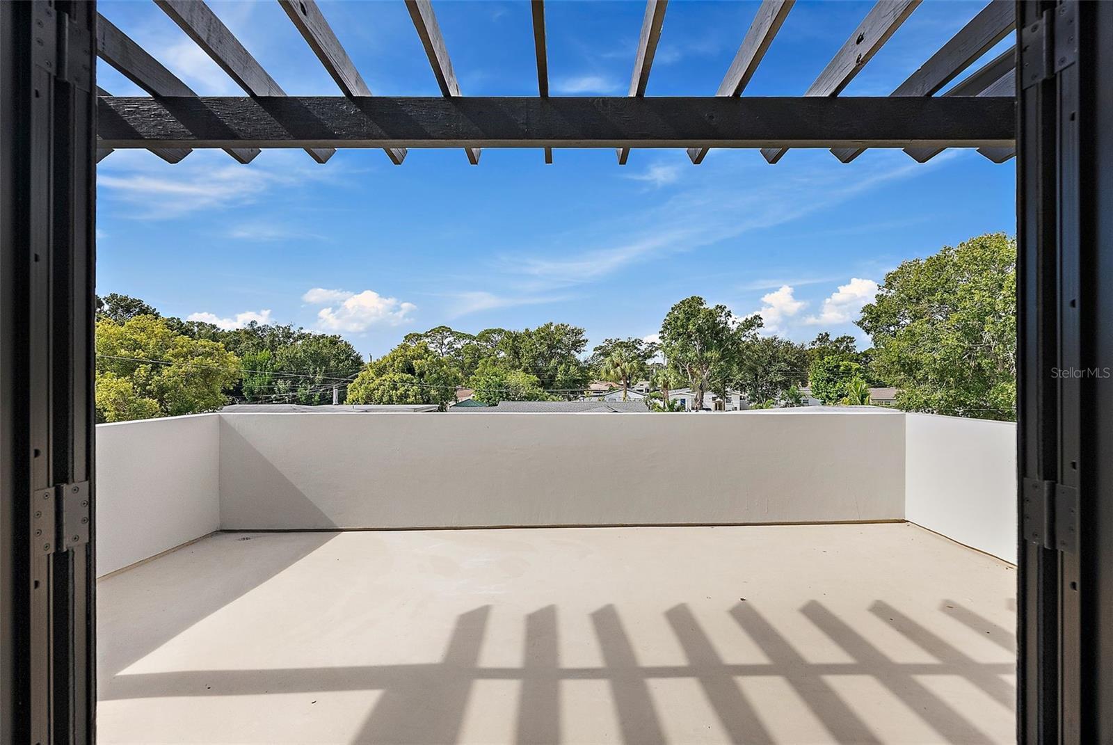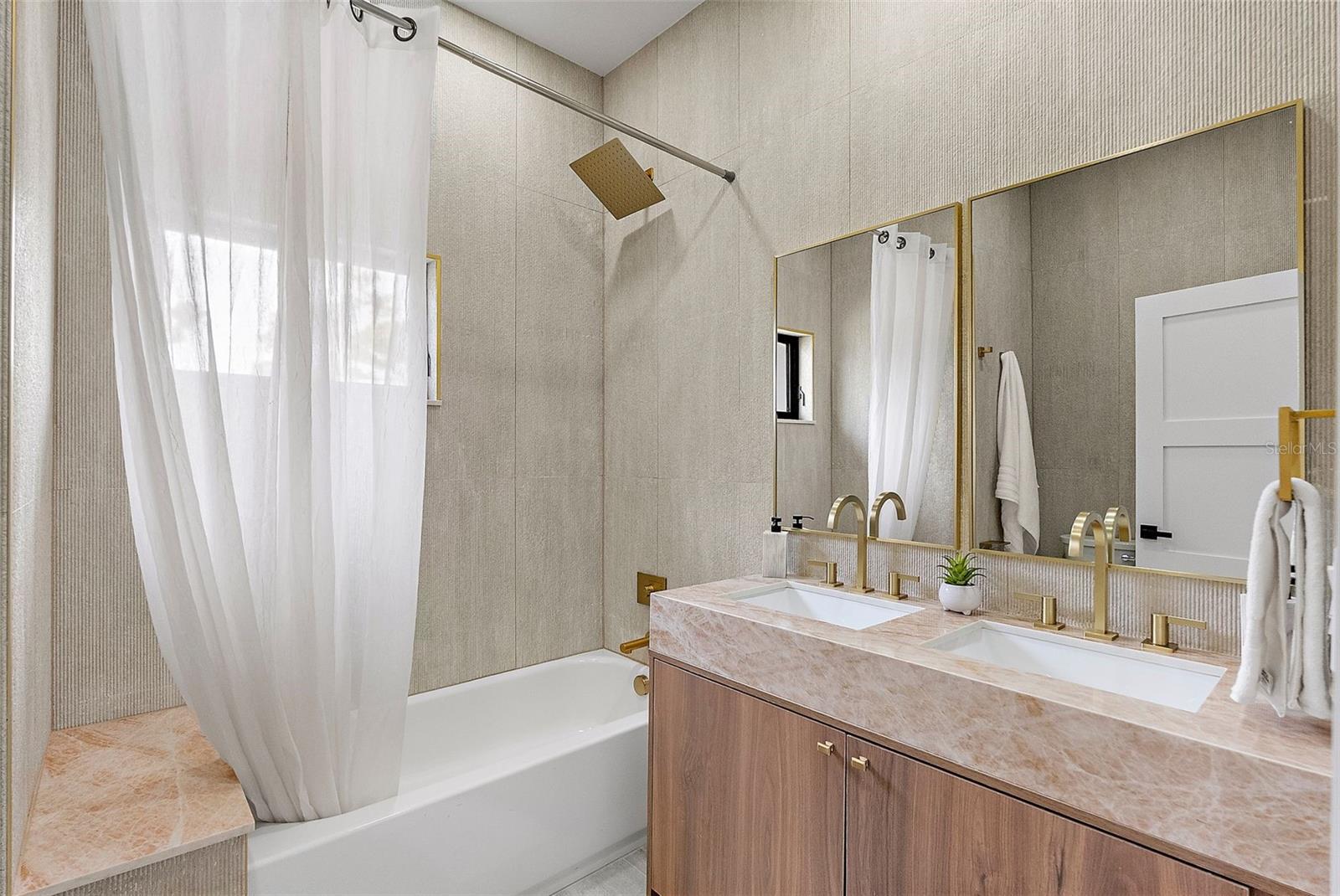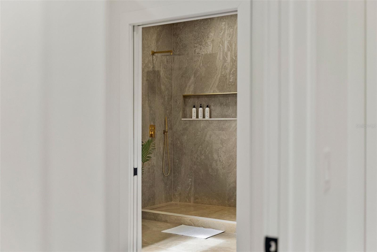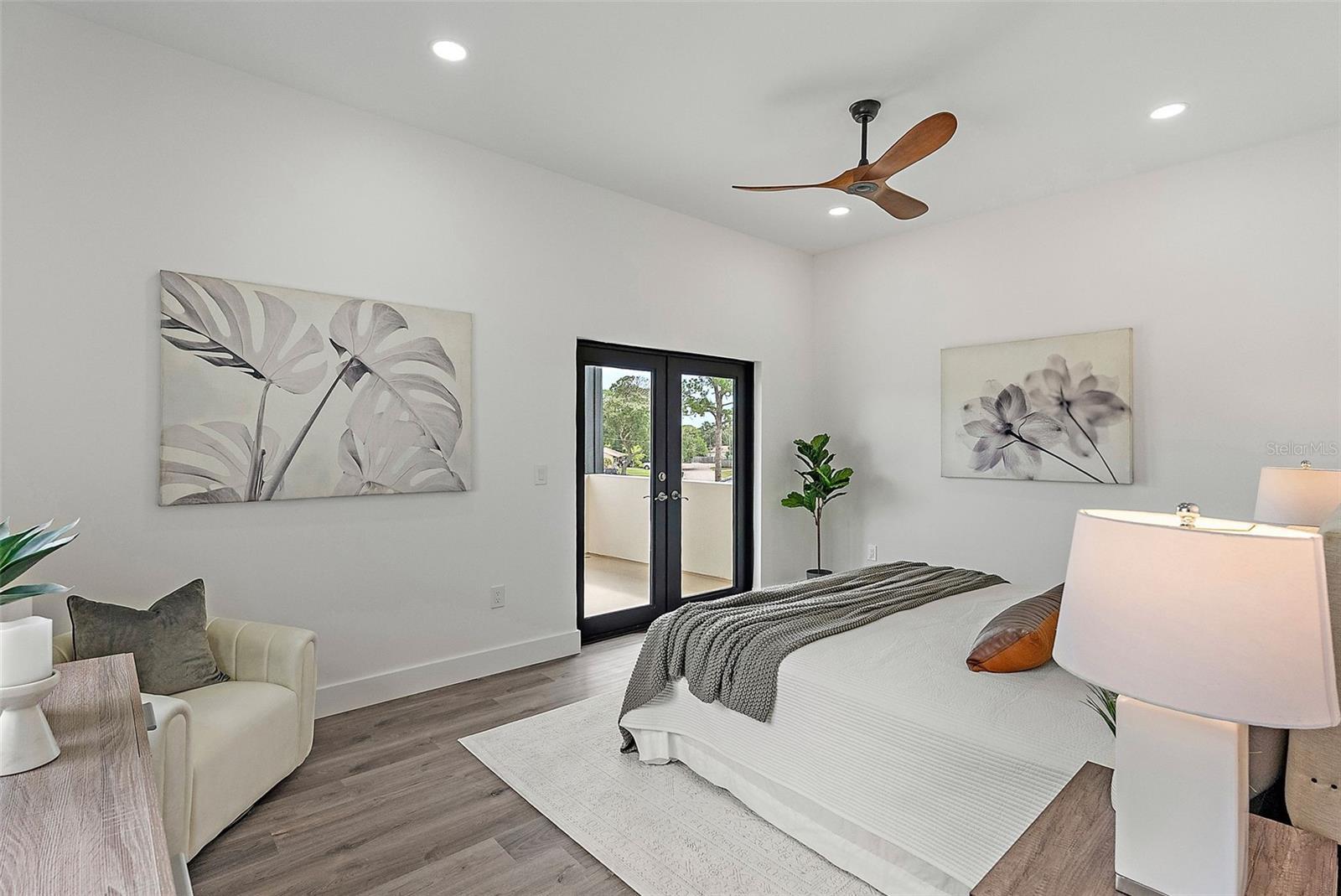 Builder offering $20,000 credit at closing toward rate buy-down and/or closing costs (call for details). Step into modern coastal luxury in this brand-new, all-concrete block 4-bedroom, 3.5-bath home on a corner lot, thoughtfully designed and elevated for peace of mind. High-end finishes and exceptional craftsmanship are showcased throughout, including black-framed hurricane-impact windows and doors, luxury vinyl plank flooring, recessed LED lighting, and upgraded 8-foot doors on both levels, creating a bright and sophisticated atmosphere. The open-concept living area centers around a showstopping designer kitchen featuring waterfall-edge quartz countertops with breakfast bar seating, custom wood cabinetry, stainless steel appliances, pot filler faucet, exposed wood beam accents, and statement lighting. A separate prep kitchen adds valuable storage and workspace—ideal for entertaining or everyday convenience. The primary suite is a true retreat, offering a spacious layout, private walk-out covered balcony, large walk-in closet with built-in storage, and a spa-inspired bath with freestanding soaking tub, beautifully tiled walk-in shower with gold fixtures, and a custom dual-sink vanity. Three of the four bedrooms include walk-in closets, and each bathroom features high-end tile work and designer finishes. Additional highlights include an interior laundry room with custom tile accent wall, covered front porch, upstairs balcony with pergola roof, irrigated landscaping, one-car garage, and a large side yard—perfect for pets or outdoor living. The home is backed by a comprehensive 1-2-10 year builder warranty for added peace of mind. Ideally located in North St. Petersburg, close to retail corridors, parks, golf courses, area beaches, and Tampa International Airport, this exceptional new construction home perfectly combines style, quality, and modern comfort.