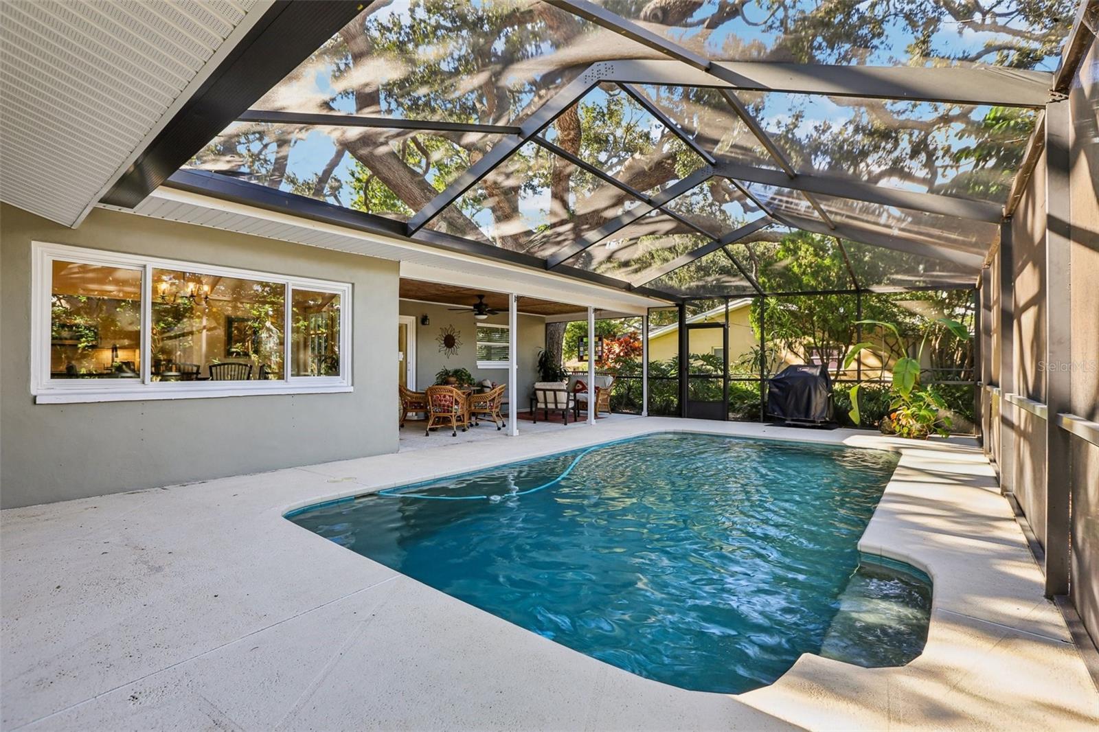 Motivated Sellers! One-of-a-Kind Home in Sought-After Fairway Estates Neighborhood | 4 Bed | 3 Bath | Dunedin, FL Welcome to this stunning, renovated gem in the heart of Fairway Estates — one of Dunedin’s most desirable neighborhoods. Nestled beneath the canopy of a historic Florida live oak, this 4-bedroom, 3- bathroom home offers 1,934 square feet of modern luxury blended with classic charm. As an added bonus, the house is equipped with hurricane-grade windows and doors and is high and dry with no history of flooding. Step inside and be wowed by the open-concept kitchen, family room, and breakfast nook– designed for both everyday living and entertaining. Every detail has been thoughtfully crafted– the kitchen features custom cabinets and shelves, one-of-a-kind quartzite countertops, stainless steel appliances, and an eat- in bar perfect for casual dining and hosting guests. Beyond the family room, you’ll find three spacious bedrooms and two bathrooms (one en-suite), as well as a private laundry room and pantry connected to a roomy two-car garage with newly installed polymer-coated flooring and custom shelving. Off the dining room and sun-drenched living room is a primary suite that acts as a private retreat, featuring a spa-like bathroom complete with a custom vanity, closet, and an oversized rain shower that feels straight out of a luxury resort. Step outside to your private backyard oasis, featuring a screened-in lanai, sparkling pool, firepit, and outdoor shower. Take a stroll around the block to soak in the neighborhood lake, parks, golf courses, nearby beaches and walking trails– perfect for your morning coffee or a sunset stroll. Location is everything — and this home delivers! Just minutes from Caladesi and Honeymoon Island, Pinellas Trail, Hammock and Highland Park, Dunedin Fine Art Center, Dunedin Golf Club, Downtown Dunedin, shops, restaurants, breweries, and more. Don't miss your chance to own this truly unique home in Fairway Estates– this one won't last!