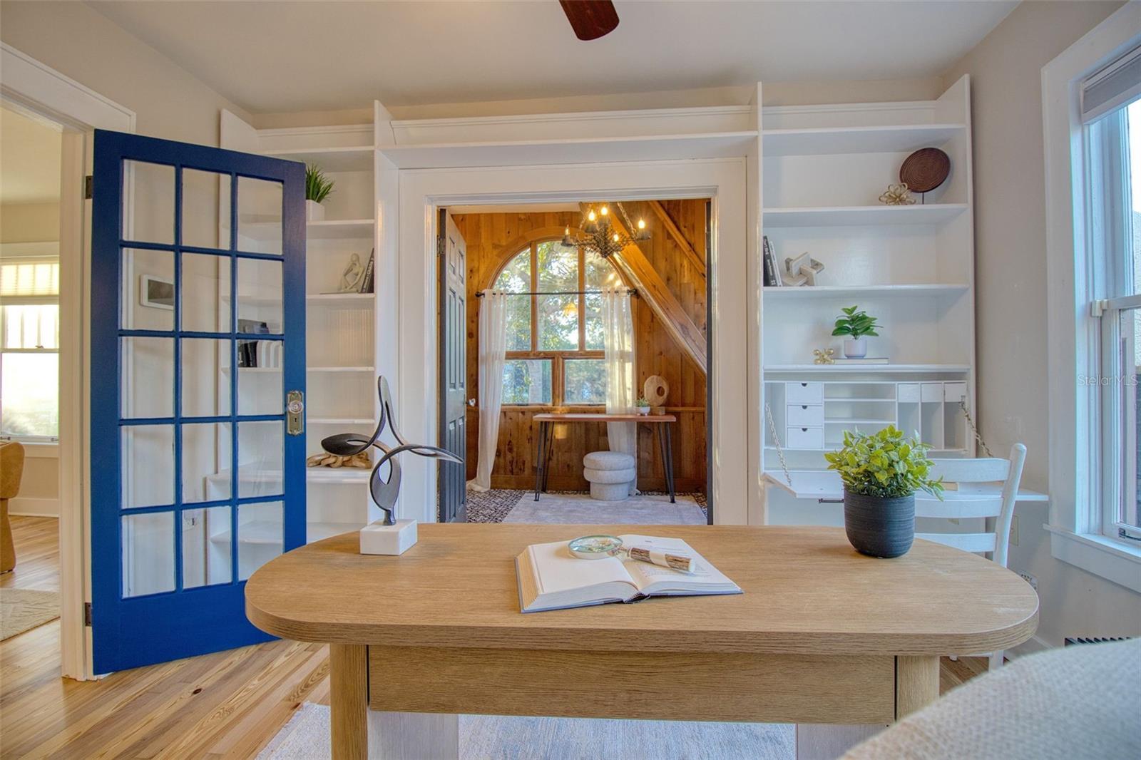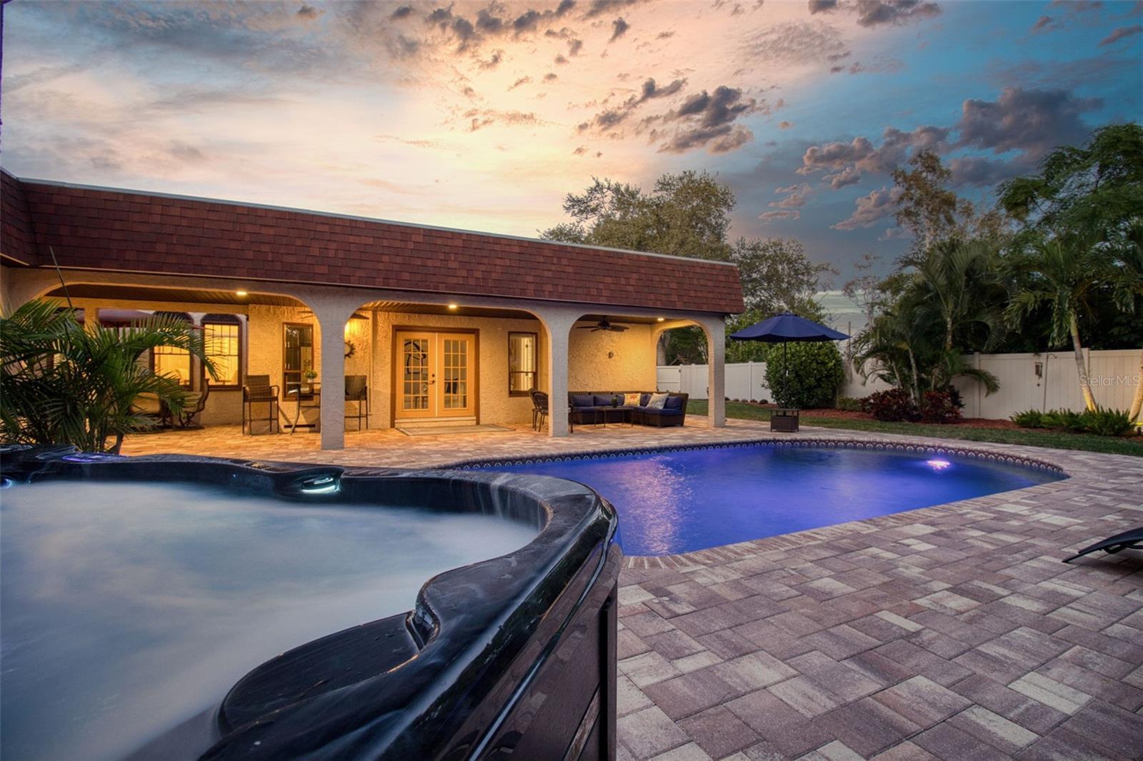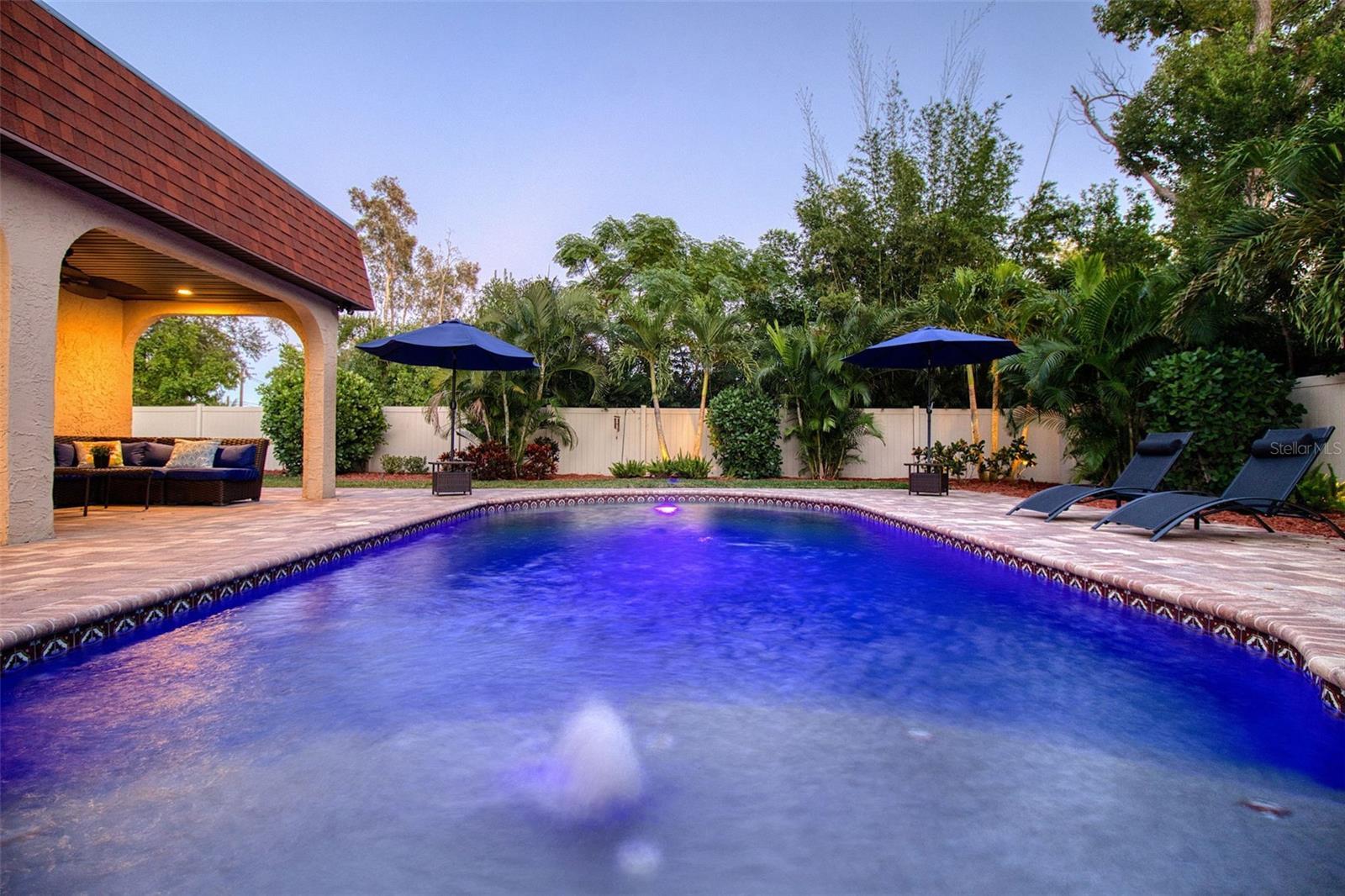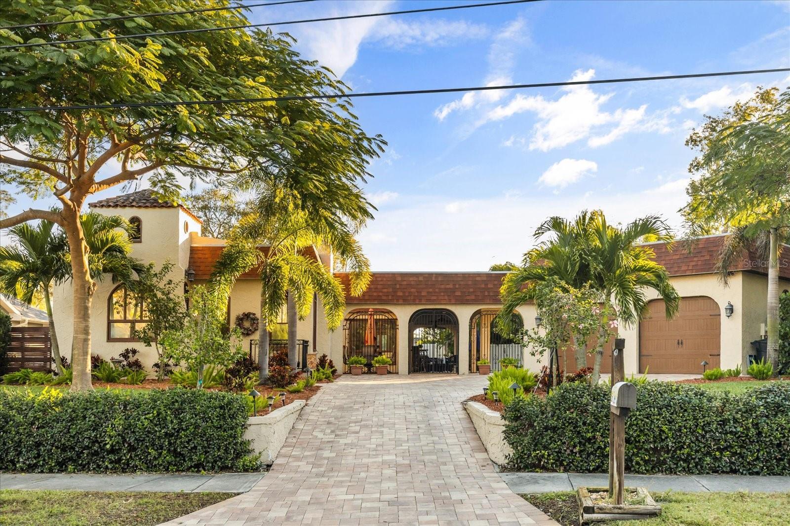 Elegance with a Spanish flair aptly describes this pristine 3 bedroom, 2.5 bath pool home on over 1/4 acre lot that backs the Pinellas Trail on Broadway. This stylish 1925 Grand Lady of Broadway, is for the discerning buyer with every attention to detail being addressed. Built in the same era, and within golf cart distance of the iconic Fenway Hotel, this home has been meticulously renovated with modern luxuries while retaining its era charm. On entering this home, you are welcomed by a 1920's foyer complete with cedar walls and a stairway to a loft "hideaway". This elegant home boasts stunning refurbished wood floors, high ceilings, period windows and distinctive tile flooring, a neutral color palette, unique lighting fixtures, and ample storage, all culminating into a truly historic feel with modern, luxurious updates. This delightful home is also light and bright boasting a welcoming living room with a wood burning fireplace; a dining room with seating for 8-10, a spacious, renovated kitchen with striking granite countertops, wood shaker cabinetry, mosaic backsplash and stainless-steel appliances. This one of a kind home also features 2 renovated bathrooms keeping with the 1920's aesthetic, a 1/2 pool bath and laundry room addition, and three generous sized bedrooms. The front bedroom features stunning French doors and is currently being used as an office. The primary suite is split from the other 2 bedrooms for privacy and has an ensuite bathroom, walk in closet and French doors that lead to the well-groomed lush backyard. The light and bright family room is conveniently located off the primary bedroom and the kitchen, and opens up through beautiful French doors onto a stunning large, paved courtyard creating a seamless blend of indoor/outdoor living. The fenced backyard offers privacy, has access to the Pinellas Trail and features a magnificent paved courtyard, an in-ground heated pool (2020) and jacuzzi and finishing this private courtyard are magnificent custom black metal gates. This backyard oasis is awesome and has been the scene of many events and festivities, including a wedding. The meticulous detail and size of this lush backyard oasis can only be appreciated in person. The owner also spared no expense on an oversized 2 car garage build, that matches the home's aesthetic even though it was built only 5 years ago. The garage features a finished drywall interior and a split a/c system is oversized and has 8 ft garage doors so you can fit your truck. The roof was also replaced in 2020 at the time of the addition. The location is also first class; NOT IN A FLOOD ZONE, walk or jump in your golf cart or bike ride the Pinellas Trail to nearby shops, restaurants, or a short walk to Edgewater Dr to watch the sunset, or head to downtown Dunedin for dinner or to the many festivals and events. Couple this with excellent schools, pristine beaches and all that fabulous Clearwater and Dunedin has to offer and you have the ultimate Florida lifestyle home.