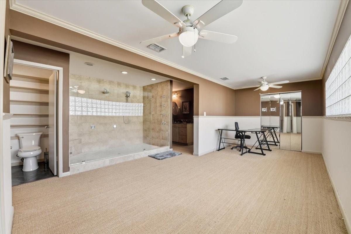 - Built-in Features, Ceiling Fans(s), Eat-in Kitchen, High Ceilings, PrimaryBedroom Upstairs, Solid Surface Counters, Solid Wood Cabinets, Walk-In Closet(s), Window Treatments