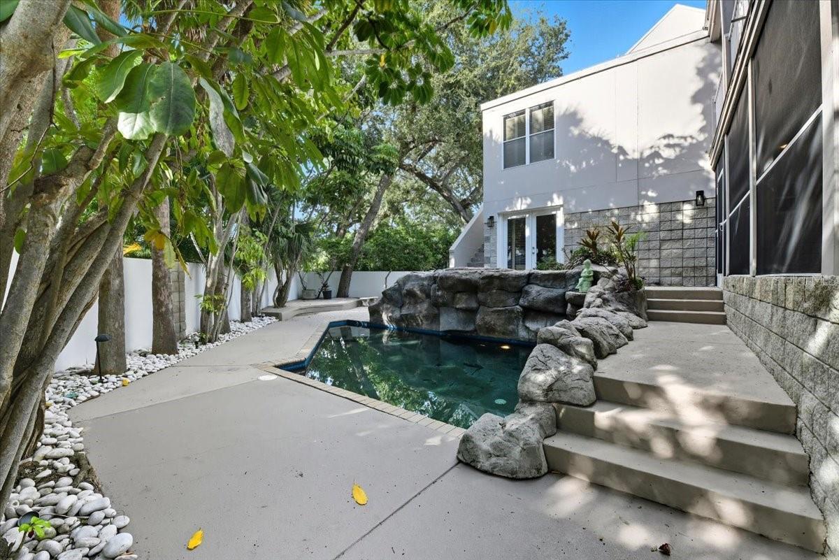 This incredible home is tucked away on one of South Tampa’s most charming cul-de-sacs, just a short walk away from iconic Bayshore Boulevard. This striking architectural residence combines modern design, tropical landscaping, and timeless character. Inside, soaring ceilings and geometric windows flood the living spaces with natural light. The dramatic open layout flows into a custom chef’s kitchen featuring rich wood cabinetry, granite countertops, stainless steel appliances, double ovens, pendant lighting, and an expansive island ideal for entertaining. A classic black-and-white tile floor anchors the space in style, while a cozy banquette nook and spiral staircase add architectural flair. The home offers multiple living areas and flexible rooms that can serve as guest quarters, home offices, or creative studios—each with its own unique character and abundant natural light. Upstairs, the owner’s retreat is a true sanctuary, highlighted by glass block walls, dual vanities, and an oversized walk-in shower. Lush tropical landscaping surrounds a rock waterfall pool and multiple screened patios, creating an inviting private oasis for outdoor living and relaxation. The property also includes a gated front door entry, two-car garage, wraparound screened balconies, and a distinctive glass-and-block architectural design. Enjoy the best of South Tampa living—just a short stroll to Bayshore’s scenic waterfront, where locals jog, bike, and take in the sunrise. Minutes from the boutiques and restaurants of Hyde Park Village, the cultural and dining scene of Downtown Tampa, and the sparkling nightlife of Water Street, this location offers the perfect balance of privacy and connection. Don’t miss this incredible opportunity to make this one-of-a-kind South Tampa retreat your own.