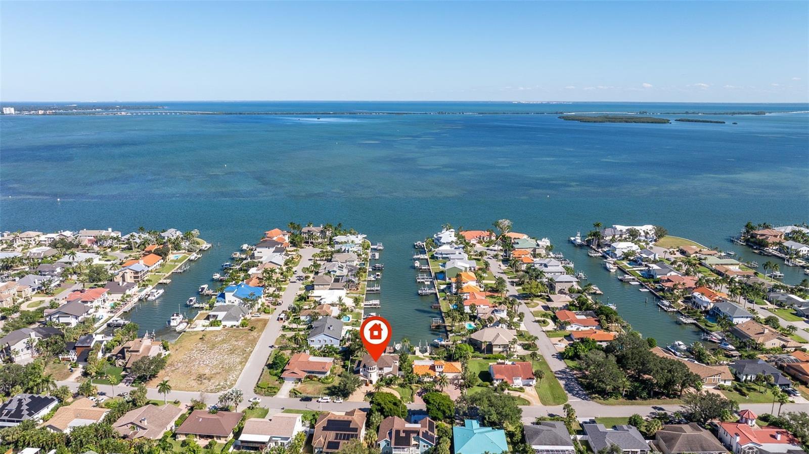 Under contract-accepting backup offers. A great opportunity to embrace the island lifestyle of Tierra Verde with direct open water access at an attractive price point. As you enter this home, a few steps lead up to the elevated main level, where double French doors immediately welcome you with abundant daylight and breathtaking water views. The open floor plan creates an airy, inviting atmosphere centered around a spacious living room that draws your eye straight to the wide canal and open waters beyond. To the left, the large kitchen and dining room combination offer an ideal space for entertaining, featuring solid wood cabinetry in soft coastal tones, contrasting dark granite countertops, and electric appliances—all overlooking the pool, private dock with boat lift, and the shimmering canal leading to Tampa Bay and the Gulf of Mexico. On the opposite side of the main level, the first of two primary suites provides the convenience of single-level living and offers serene water views. Upstairs, two guest bedrooms each feature French doors opening to a relaxing expansive private balcony, plush carpeting, and an updated guest bath with a tub/shower combination. The upstairs primary suite includes a walk-in closet, built-ins, soaking tub, separate shower, and access to another private balcony—your own tranquil retreat overlooking the open waters. This level also features a unique circular built-in office surrounded by windows, offering panoramic views of the neighborhood. It’s a bright, inspiring space perfect for working, reading, or simply enjoying the view. Outdoor living shines with multiple patios, a fully fenced property, and a sparkling pool—all surrounded by lush tropical landscaping and unexpected waterside privacy. The private dock with lift makes boating effortless and enjoyable. Recent maintenance updates include a new roof (2024), freshly painted exterior, new pool pump, circular paver driveway, and a garage with storage and laundry area. Most windows and sliders are original but held up impressively during the 2024 hurricanes, and the home remained dry during the storms. Located in Tierra Verde, this home is within walking distance to some of the island’s favorite restaurants and a walking and biking path that connects to the scenic Pinellas Trail or leads directly to Fort De Soto Park—home to award-winning beaches and a beloved dog park. All this is only 15 minutes from vibrant downtown St. Petersburg and about 40 minutes from Tampa International Airport, making it a fantastic location for both island living and easy access to everywhere you need to go. With timeless coastal style, open-concept living, and true open water access, this property offers exceptional potential and is attractively priced to sell.