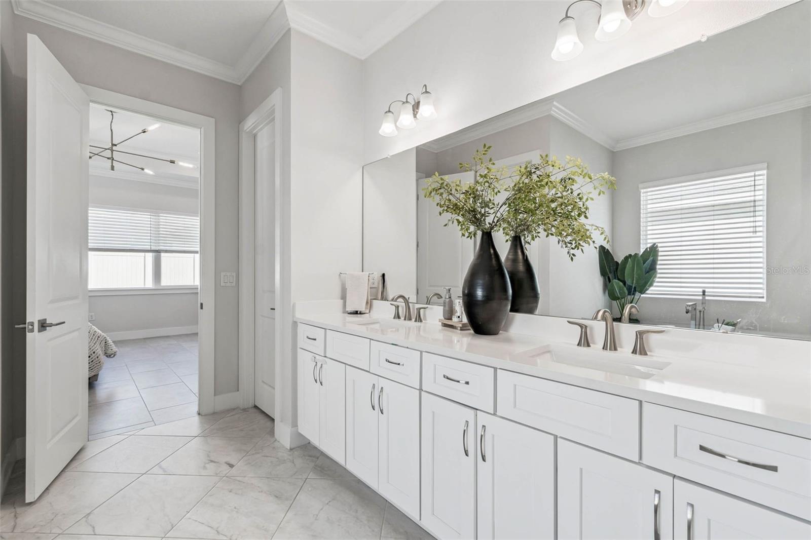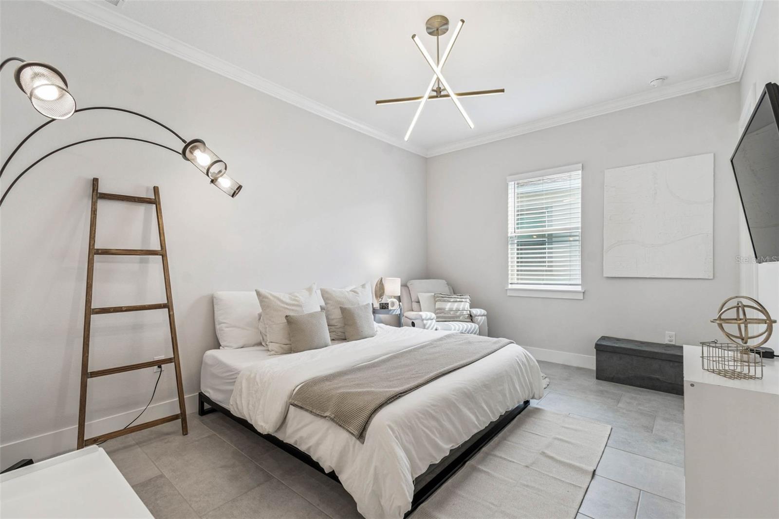 Welcome to 9028 Ivy Stark Blvd, where luxury meets lifestyle in Wesley Chapel’s Epperson community. Built in 2021, this modern 4-bedroom, 3.5-bath home spans 3,214 sq. ft. on a spacious 0.23-acre lot. Step inside to soaring ceilings and an open, airy floor plan. The living room features a custom accent wall, flowing into a chef’s kitchen with quartz countertops, premium stainless steel appliances, and an oversized island made for entertaining. Work from home in style with a custom-built office space. The primary suite is a true retreat featuring dual walk-in closets, a soaking tub, and a sleek walk-in shower. One guest room has a private en-suite, while two others share a full bath. The laundry room connects to a two-car garage, while a separate single garage is currently used as a home gym and private golf cart space. Step outside to your fenced backyard oasis, a covered patio wrapped in wood paneling from wall to ceiling, perfect for dining or relaxing in the Florida sunshine. The spacious yard offers plenty of room to design your dream outdoor living space or add a custom pool. From your front door, enjoy lake views and nightly sunsets, with a playground just across the street. Live where others vacation, steps from the MetroLagoon, dog parks, trails, playgrounds, and top-rated schools. Enjoy resort-style pools, endless recreation, and the convenience of riding your golf cart to Publix. This is more than a home, it’s a lifestyle. Come experience 9028 Ivy Stark Blvd today!