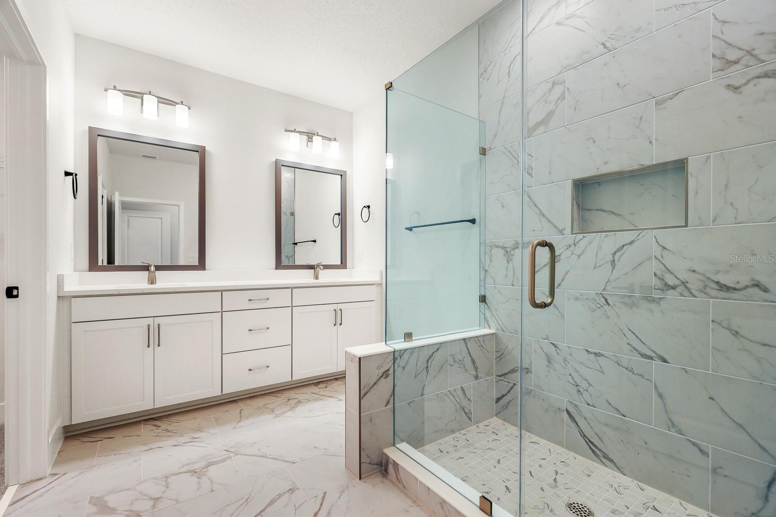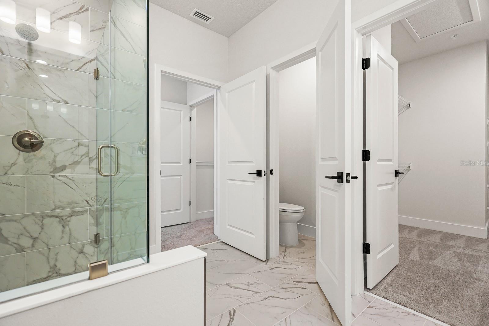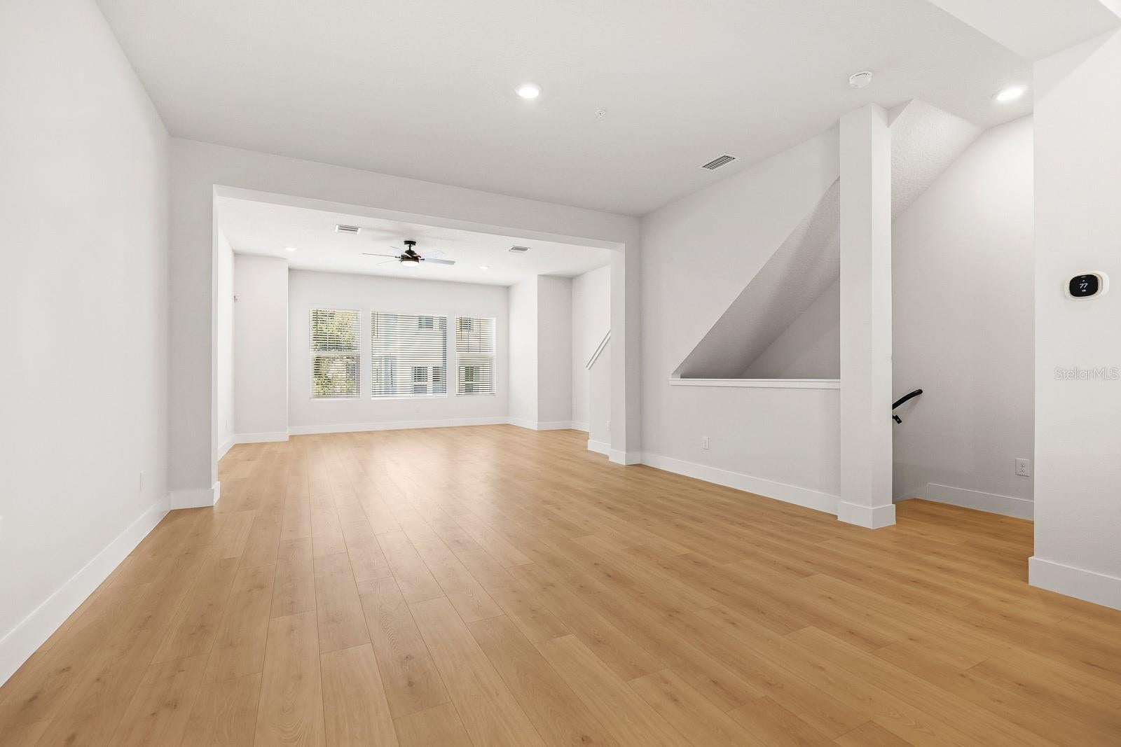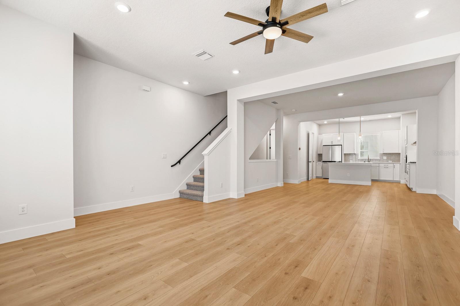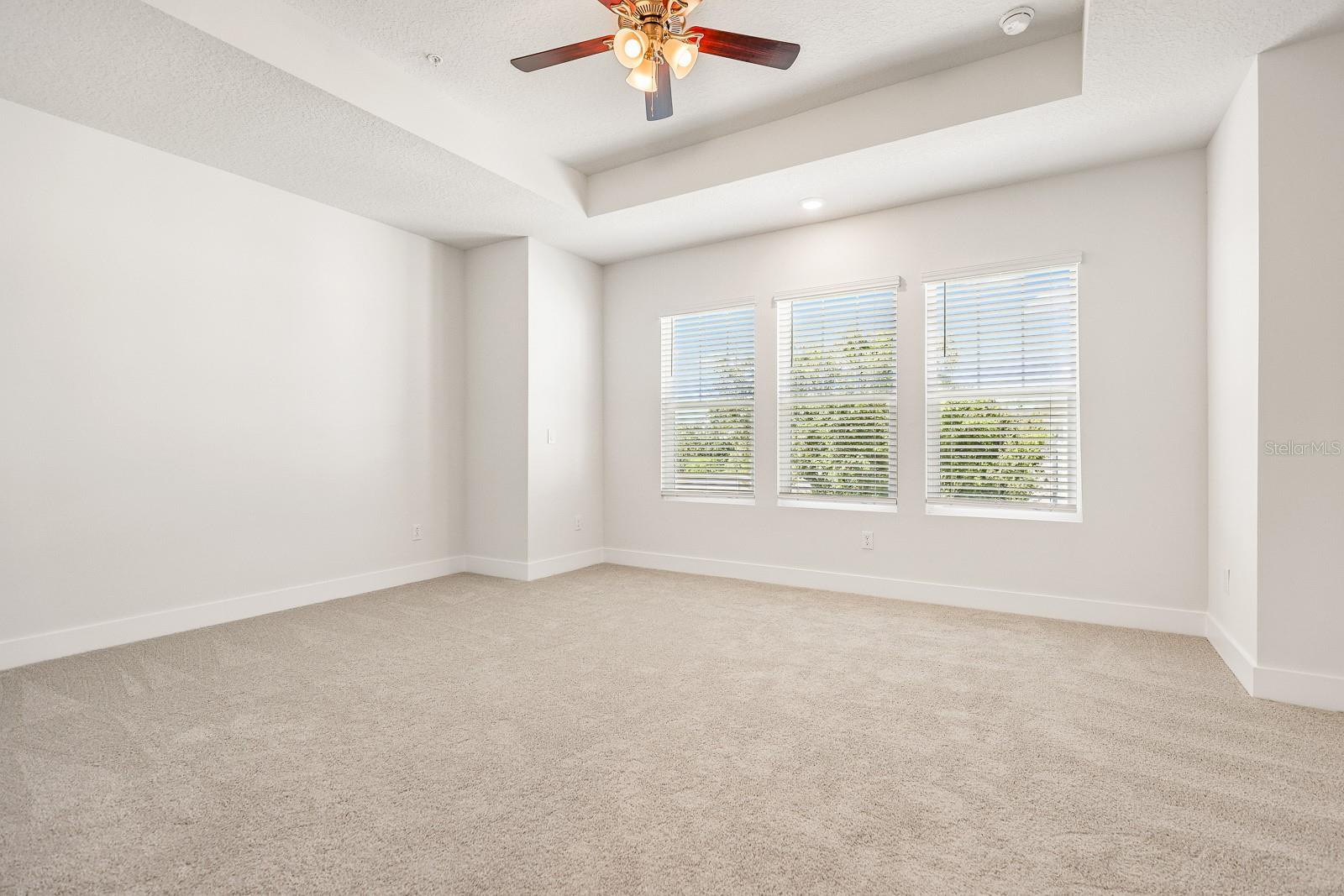 - Ceiling Fans(s), Eat-in Kitchen, High Ceilings, Living Room/Dining Room Combo, Open Floorplan, PrimaryBedroom Upstairs, Solid Surface Counters, Stone Counters, Thermostat, Tray Ceiling(s), Walk-In Closet(s)