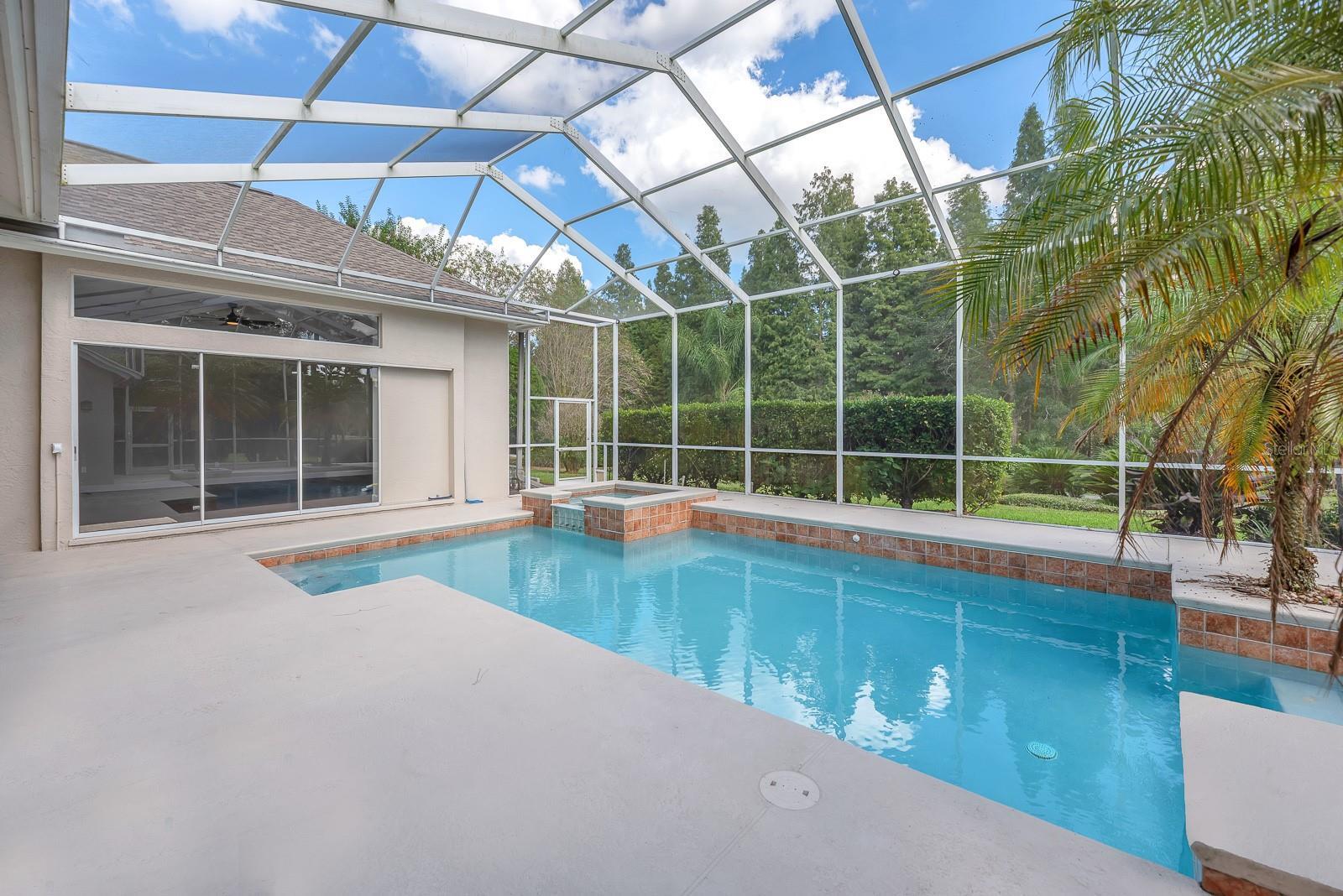 Welcome to River Hills, an elegant guard-gated community known for its tree-lined streets, resort-style amenities, and stunning golf course views. This beautifully updated four-bedroom, four-bathroom home with a three-car garage offers over 3,100 square feet of thoughtfully designed living space, blending timeless charm with modern comfort. Beautiful curb appeal greets you from the moment you arrive, with manicured landscaping enhanced by new landscape lighting added in 2023. Step through the double front doors into an inviting foyer that opens to a formal living and dining room combination, with pocketing sliding doors to the screened lanai, perfect for entertaining or celebrating special occasions. High ceilings, crown molding, and abundant natural light create a warm and open atmosphere that carries throughout the home. The kitchen is both stylish and functional, featuring quartz countertops, 42-inch wood cabinetry with under-cabinet lighting, designer tile backsplash, and a reverse osmosis water filtration system, along with a cooktop, built in oven, microwave and a dishwasher. A charming breakfast nook overlooks the sparkling pool, making it an ideal spot to enjoy morning coffee or casual family meals. The family room, located just off the kitchen, offers an impressive view of the outdoor living area through triple pocket sliding glass doors, allowing the beauty of the outdoors to flow seamlessly inside. The primary suite, set behind double entry doors, serves as a private retreat. It features a tray ceiling, private access to the pool through sliding glass doors, and a luxurious en-suite bathroom with split vanities, a oversized walk-in shower, and an expansive walk-in closet. Nearby, a dedicated home office with glass French doors and custom built-in shelving provides the perfect space for working remotely or managing household affairs. Three additional spacious bedrooms are situated on the opposite side of the home, offering comfort and privacy for family or guests, and share two beautifully updated full bathrooms. Step outside to the screened lanai, where a sparkling pool and spa take center stage. The covered seating area provides the perfect setting for outdoor dining or relaxing afternoons, and an outdoor pool bath adds convenience for guests. The backyard landscaping enhances both beauty and privacy, offering a peaceful buffer from golfers while still enjoying the serene view of the course. This home has been lovingly maintained and thoughtfully enhanced with modern improvements throughout. The tile roof was replaced in 2022, while solar panels installed in 2023 bring energy efficiency and reduced utility costs. Wood flooring added in 2023 runs throughout the home, complemented by ceramic tile in the bathrooms, creating a clean and cohesive look with no carpet. All lighting fixtures and bathroom finishes were refreshed in 2023, while updated ceiling fans were added in 2024 for improved comfort and style. A new water softener system was installed in 2024, and the dual HVAC systems were replaced in 2020 and 2023 to ensure year-round comfort. Even the garage has been upgraded with overhead storage racks that will remain with the home.