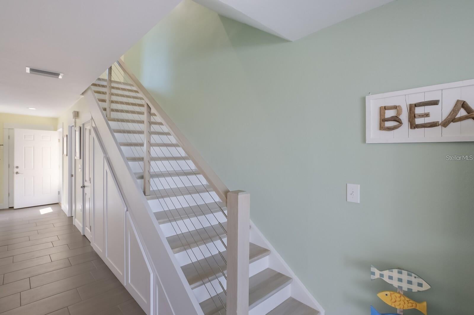 Spectacular Southern exposure corner beach front villa that has been impeccably rebuilt featuring expanded, incredible, open beachfront sunning deck maximizing the Gulf of America sunset views! The main level includes an open and spacious living room, dining area, and all new stainless GE appliances, custom wood cabinetry and beautiful Marble countertops throughout the home. Meticulously crafted wood finishes, plank tile, maintenance free floors throughout, looks exactly like wood. Additional features include; refined wood staircase, cable railing, custom lighting, subway tile backsplash and much more! Gulfside screened porch out to the newly added spacious open deck on the beach! The Southern exposure and Westerly Sunsets are breathtaking. Top floor is comprised of the guest ensuite bedroom and bath, Gulfside Master ensuite bedroom and bath...complete with screened porch and floating Teak deck. The ground level, out of the sun patio features a fully enclosed outdoor shower, all leading to the pristine beach. The newer enclosed garage is air conditioned and offers back of the enclosed space french doors for south side access for the golf cart and a Hurricane Rated garage door for your SUV. The revamped exterior features; 2021 metal roof, impact glass throughout, Trex decking with soffits, trim and composite siding. HOA approved plans to add an ensuite bedroom with modified entry. Excellent rental history if desired. A complete, like new, beautiful Townhome...come and visit this almost completely rebuilt - only 10 home - beachfront development!