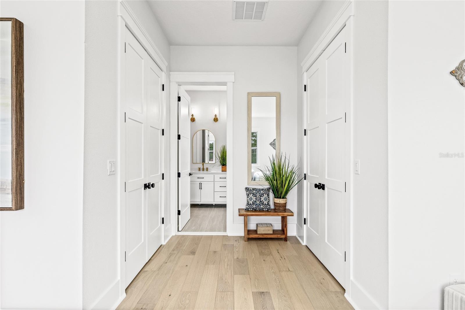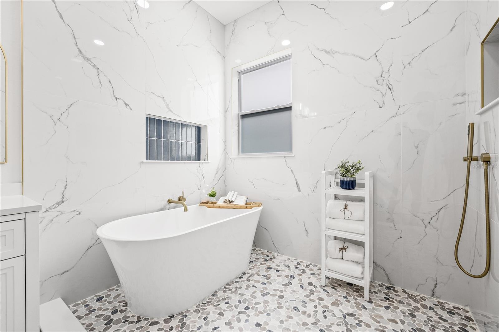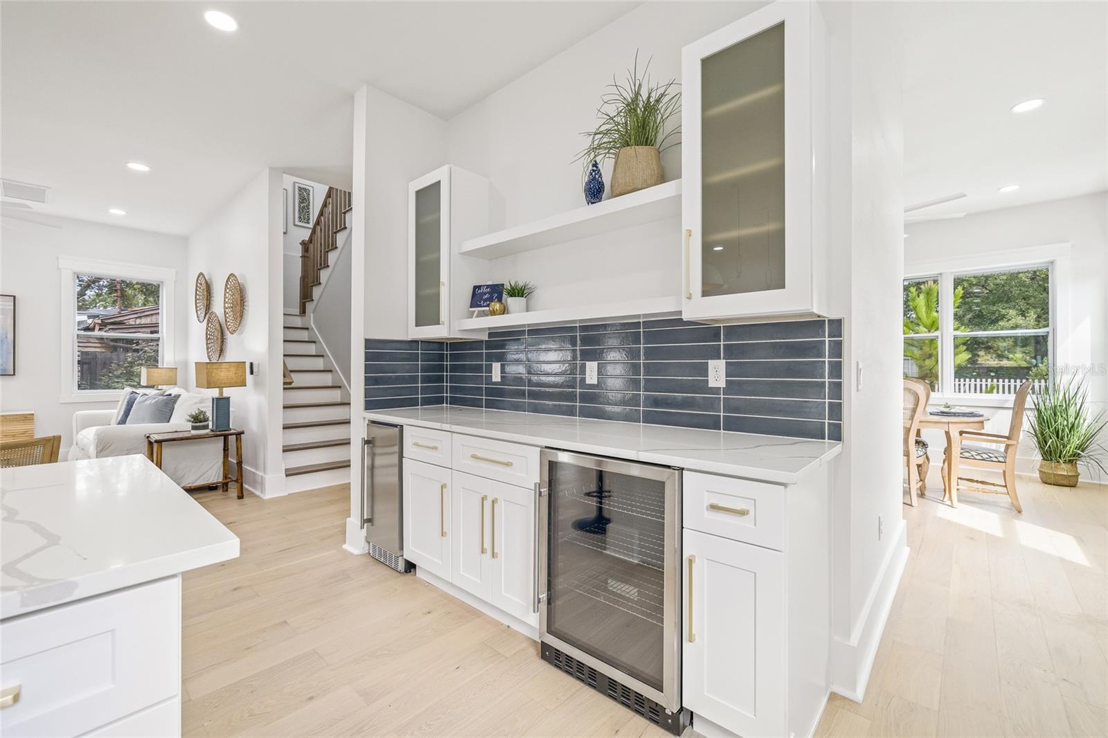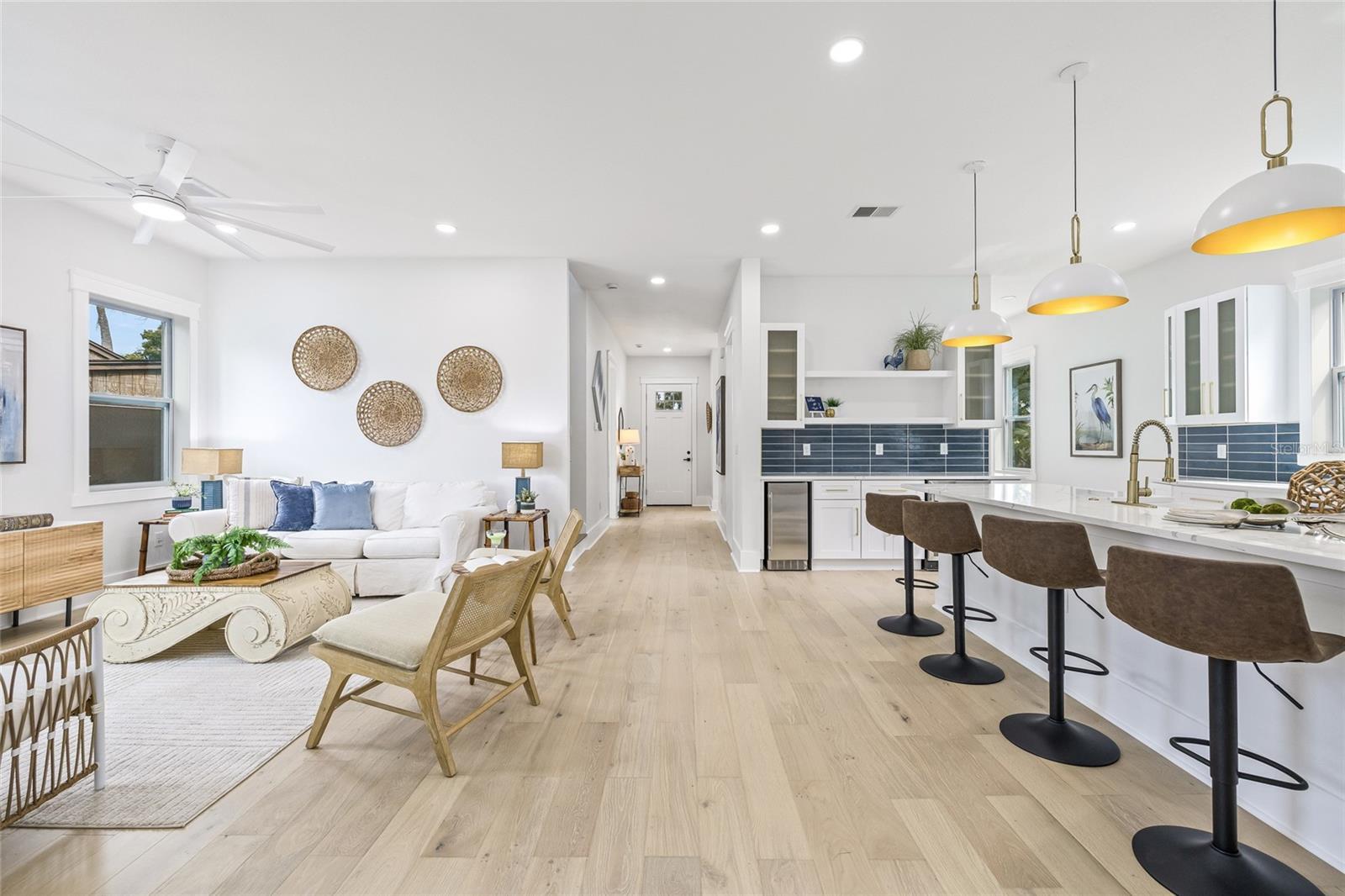 Brand-New Construction in Northeast St. Petersburg by Coastline Homes! Situated on a quiet street in the Greater Allendale area, this stunning new-construction home offers refined living in one of St. Petersburg’s most sought-after areas. Fully completed and move-in ready, this thoughtfully designed residence features 5 bedrooms + loft, 4 bathrooms, and an attached 2-car garage with alley access. Inside, you'll find 10’ ceilings, rich engineered hardwood flooring, 8’ interior doors, and high-end designer finishes throughout. Elegant trim work, oversized baseboards, and cased windows add to the home’s timeless charm. The custom kitchen is a chef’s dream with abundant cabinetry, wine fridge, ice maker, butler's pantry and stylish finishes, seamlessly connecting the dining & family room spaces. The main level bedroom with en-suite bathroom offers flexibility to serve as a playroom, home office, or guest suite, while the great room provides a comfortable space to relax or entertain. The Master Suite is a private retreat with a luxurious en-suite bathroom featuring an oversized double-sink vanity and a spa-like walk-in shower with soaking tub. Step outside to enjoy the covered front and rear porches and a fully fenced backyard with white vinyl fencing—perfectly private and offering ample space to add a future pool. Whether you're entertaining guests or enjoying a quiet evening at home, this outdoor space is ready to grow with your vision. Located just minutes from vibrant Downtown St. Pete, Gulf beaches, parks, and top-rated schools, this home blends luxury, comfort, and convenience in a location you’ll love. Don’t miss your chance to own this exceptional new home—schedule your private tour today!