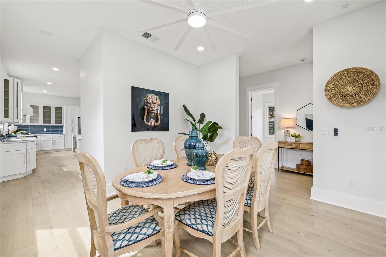 - Ceiling Fans(s), Eat-in Kitchen, High Ceilings, Kitchen/Family Room Combo, Open Floorplan, PrimaryBedroom Upstairs, Solid Wood Cabinets, Stone Counters, Thermostat, Walk-In Closet(s)