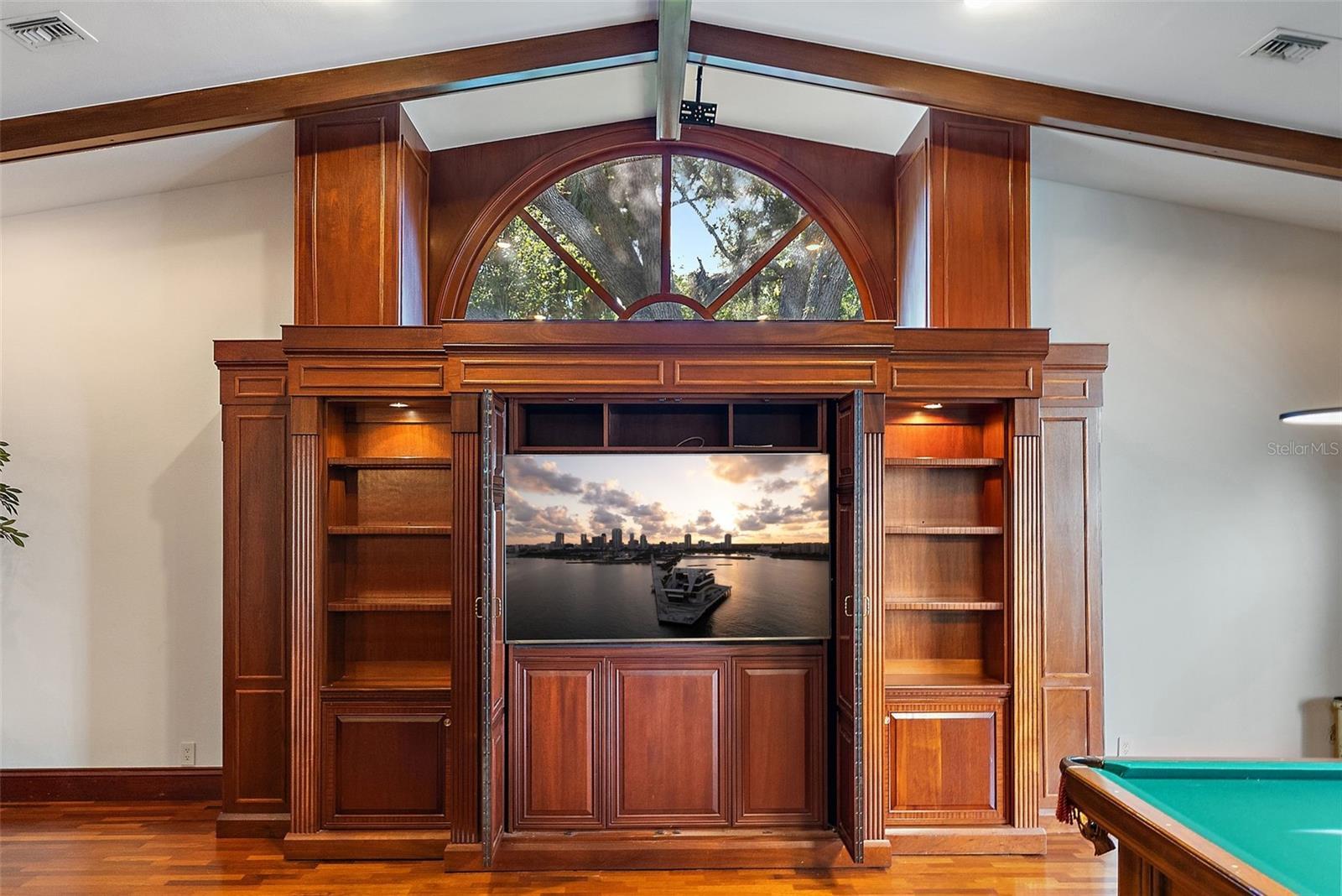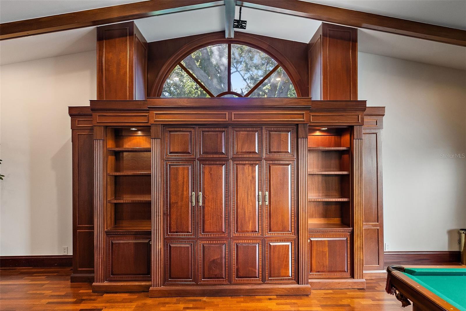- Built-in Features, Cathedral Ceiling(s), Ceiling Fans(s), High Ceilings, Primary Bedroom Main Floor, Solid Wood Cabinets, Split Bedroom, Stone Counters, Vaulted Ceiling(s), Walk-In Closet(s), Wet Bar, Window Treatments