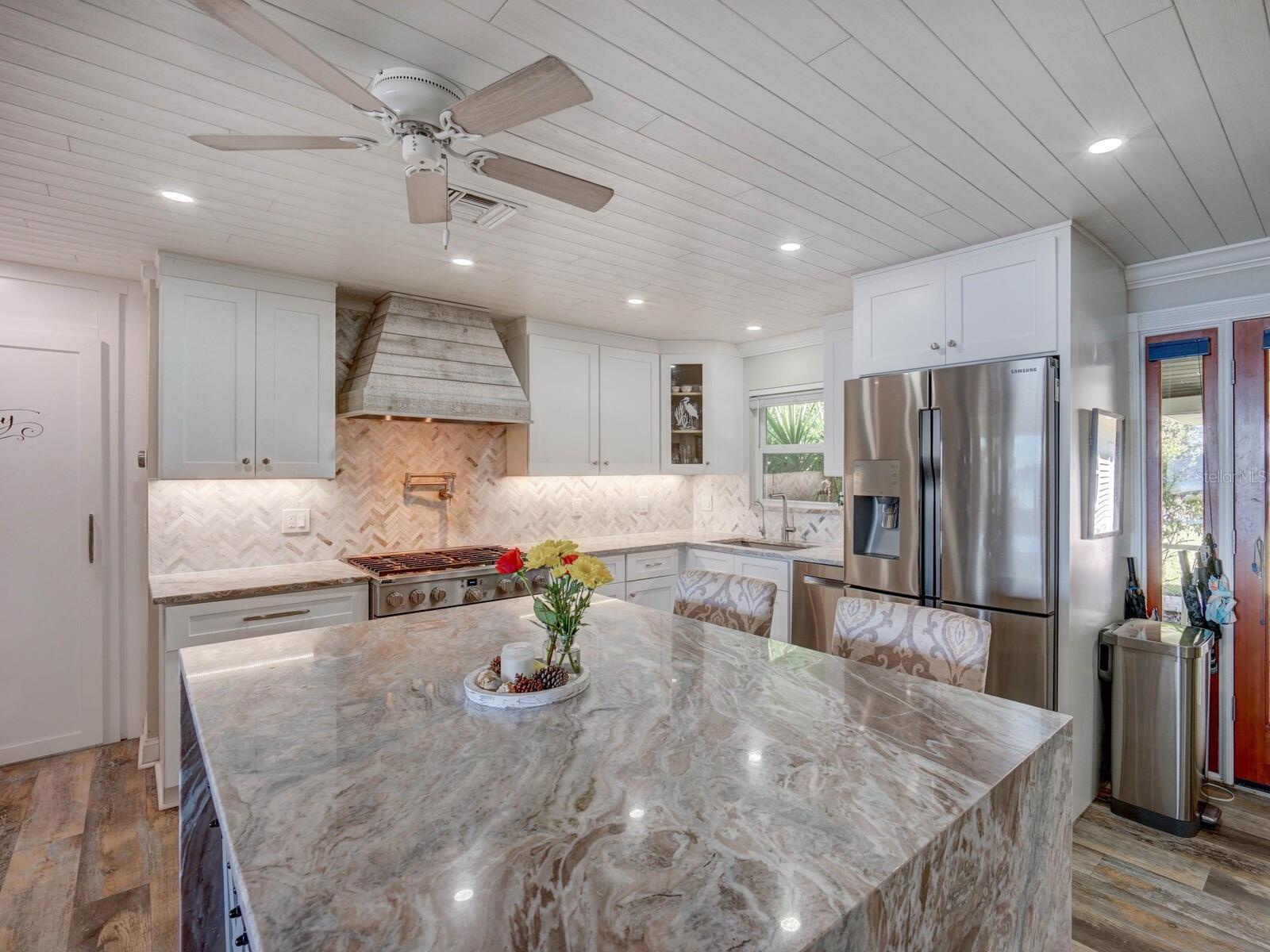 Own a piece of Florida’s hidden waterfront legacy! This luxury lakefront property blends historic charm, modern comfort, and outdoor adventure. A timeless mid-century modern design with upscale finishes, this home sits on a rare double lot (26,136) accessed by a private driveway lined with oaks and tropical foliage, culminating in a spectacular Royal Poinciana tree—a true showpiece when in bloom. From the moment you arrive, enjoy a breathtaking view of 2,534-acre Lake Tarpon, one of Pinellas County’s largest freshwater lakes—ideal for bass fishing, boating, jet-skiing, and wildlife watching. Relax or entertain on your private dock overlooking the water. This 3-bedroom, 3.5-bathroom residence has been completely updated and meticulously maintained, showcasing over $314,000 in premium upgrades. Significant improvements include a new roof, a new A/C system, a new hot-water heater, updated electrical, an updated gas fireplace, a Generac whole-home generator, an A/C in the garage, and a new Jacuzzi added to the pool for ultimate relaxation and year-round comfort. Step inside to discover luxury vinyl flooring throughout, crown molding, and bright, open spaces filled with natural light. The chef’s kitchen is a masterpiece, featuring a custom-built espresso machine, a gas range, a large center island with deep storage drawers, and barn doors concealing additional pantry space. The custom bar features a built-in beer tap, dual wine coolers, and a hidden charging station. A coastal-living wood ceiling adds warmth and character to the space. The open living area highlights bay windows framing the pool, spa, and patio, seamlessly connecting to the covered boat dock. The pool area was expanded to include a custom spa, while the lanai showcases a handcrafted cypress-wood ceiling and dual-blade ceiling fans, creating a serene retreat. Outdoors, enjoy underground utilities, a reclaimed-water sprinkler system, and a reverse-osmosis (RO) water system for convenience and efficiency. Every feature has been thoughtfully curated to deliver true turn-key, move-in-ready luxury. Enjoy serenity, sophistication, and no HOA—your private lakefront sanctuary on beautiful Lake Tarpon awaits.