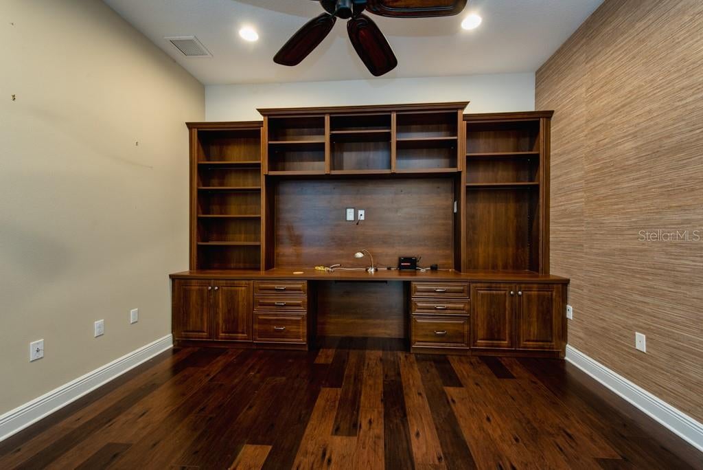 - Built-in Features, Ceiling Fans(s), Crown Molding, Dry Bar, Eat-in Kitchen, High Ceilings, Open Floorplan, Other, Solid Surface Counters, Solid Wood Cabinets, Split Bedroom, Stone Counters, Tray Ceiling(s), Walk-In Closet(s)