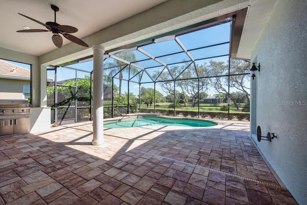 Golf Course Serenity Meets Luxury Living in Lakewood Ranch Country Club! This stunning 3-bedroom, 2-bathroom pool home is perfectly positioned on the prime 4th hole, par-3 of the Lakewood Ranch Golf & Country Club course—offering sweeping views of the lake, lush fairways, and surrounding nature. Freshly painted in October 2025, the exterior shines with exceptional curb appeal in one of America’s #1 master-planned communities. Step inside to find a thoughtfully designed floor plan featuring a custom office/den with built-ins and elegant tray ceilings. The spacious kitchen includes a breakfast bar and nook that overlooks the golf course—ideal for enjoying morning coffee with a view. Expansive hurricane glass pocket sliders extend the living space outdoors, opening to a screened lanai and gas-heated pool surrounded by a paver deck and built-in outdoor kitchen, perfect for entertaining or relaxing in your private retreat. The primary suite offers direct access to the pool area, creating a seamless indoor-outdoor flow. Additional features include a pool bath, hurricane shutters stored in the garage, and a well-maintained pool cage. Located within a guarded and gated community, residents enjoy security, privacy, and a maintenance-friendly lifestyle with low HOA fees. Lakewood Ranch Golf & Country Club provides access to four championship golf courses, tennis and pickleball courts, a junior Olympic pool, a fitness center, clubhouse dining, and more—all available through optional membership. Conveniently close to Waterside Place, UTC Mall, fine dining, SRQ Airport, and world-class Gulf beaches, this home places you near everything Lakewood Ranch has to offer. A-rated schools, vibrant community events, and an active lifestyle make this home an exceptional choice for those seeking the perfect blend of comfort, location, and leisure. Experience the best of Lakewood Ranch Country Club living—where golf course views, elegant design, and resort-style amenities create a home that truly stands out. Call now and schedule your viewing today!***FREE 1/0 Rate Buy Down when using the seller's preferred lender!***