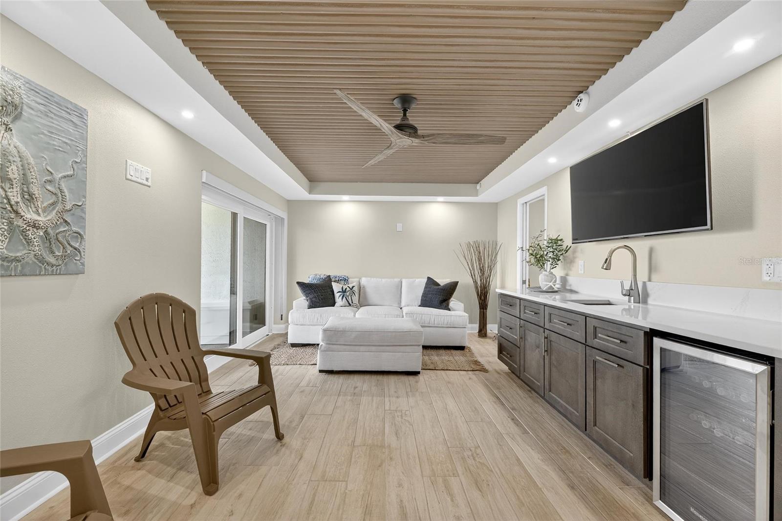 BRING YOUR BOAT AND YOUR LOVE FOR COASTAL LUXURY! This FULLY FURNISHED end-unit waterfront townhome in the sought-after Marina Del Rey community on Sand Key offers the ultimate Florida lifestyle with breathtaking open water views and direct boating access. Completely renovated with elegant coastal finishes, this spacious home spans three levels of versatile living space. First Floor: A flexible bonus room (ideal as a boat room, game room, or guest retreat) features a wet bar, full ensuite bath, and sliding doors to a private patio with backyard and dock access. Second Floor: Drenched in natural light, the main living level boasts a designer kitchen with white shaker cabinetry, waterfall-edge island, gleaming countertops, and top-of-the-line stainless appliances. A home office/bonus space (potential 4th bedroom) and a stylish half bath are nearby. The open dining and family rooms are wrapped in windows showcasing stunning views of the Intracoastal and marina. Third Floor: The luxe primary suite offers a private waterfront balcony, a massive walk-in closet with custom built-ins, and a spa-style ensuite bath featuring double vanities and a dramatic wet room with soaker tub and shower — all with water views. A second light-filled bedroom includes a large closet and updated ensuite with a walk-in shower. Additional highlights: Plantation shutters throughout, Spacious laundry room, Abundant storage. Boaters will fall in love with the double dock with sundeck, 20,000 lb boat lift, 2 jet ski lifts, kayak lift, and TREX decking with dual-side boat access — all right in your backyard! All of this just across the street from the beach, near Sand Key Park, and a short walk to restaurants and boutiques. This is coastal living at its finest — don’t miss your chance to lease a slice of Sand Key paradise! No pets allowed. Support Animal Application required for any assistance or emotional support animals.
