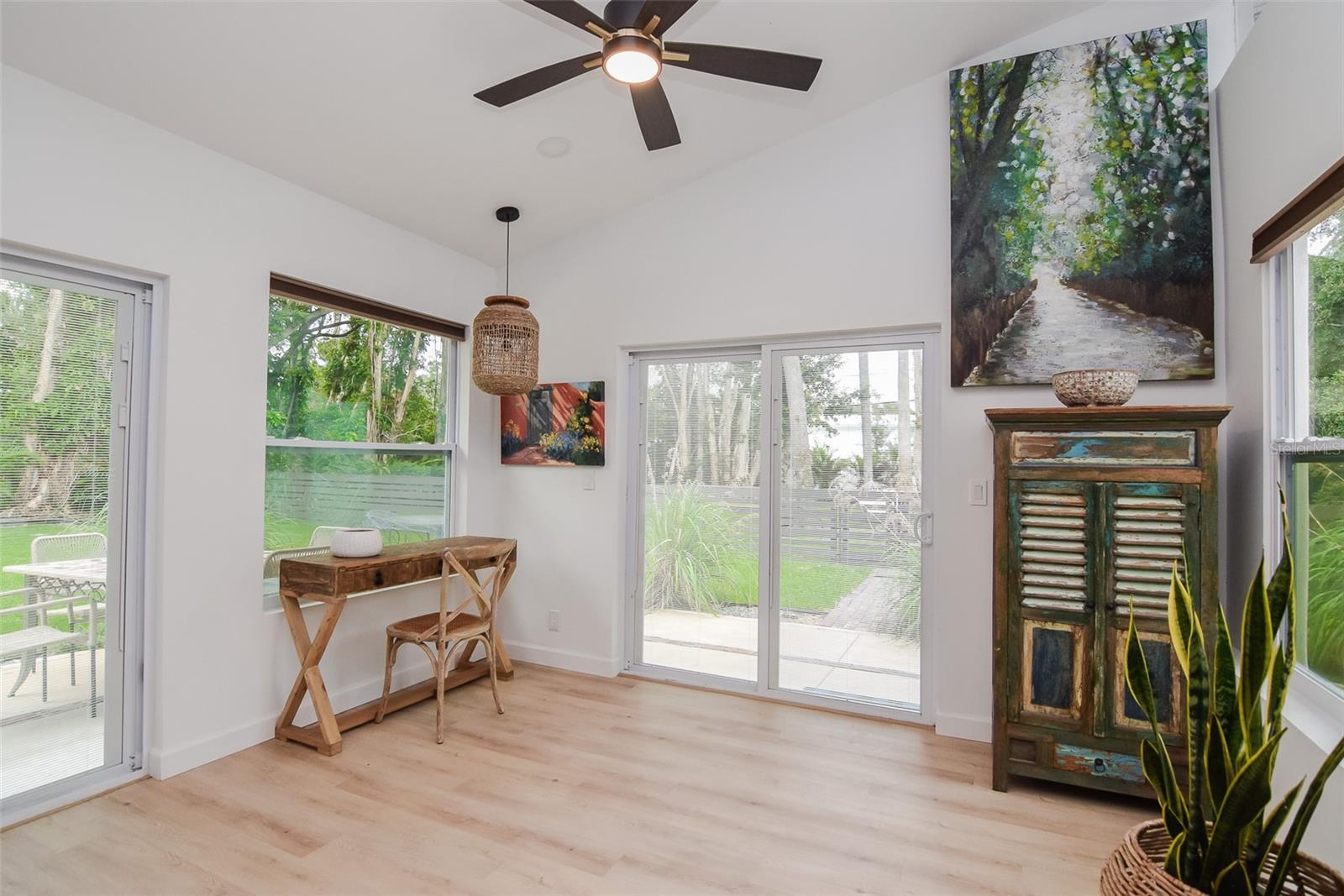 Don’t miss this stunningly restored mid-century modern home in St. Petersburg’s highly sought-after Pasadena on the Gulf Community! PERFECTLY SITUATED ON A RARE DOUBLE LOT THAT’S ALMOST HALF AN ACRE, THIS PROPERTY OFFERS OVER 1,600 SQ. FT. OF BEAUTIFULLY UPDATED LIVING SPACE AND A BACKYARD OASIS THAT’S TRULY ONE OF A KIND...AND IN A NON-FLOOD ZONE! Step inside to discover a bright, open living area with vaulted ceilings, abundant natural light from double-pane windows, and sleek luxury vinyl plank flooring in the main living areas, plus a beautiful marble foyer. Thanks to the vaulted ceilings and natural lighting, this home feels huge! The gorgeous kitchen boasts new stainless steel appliances, butcher block countertops, floating shelves, and a designer herringbone backsplash. The primary suite features a fully remodeled en-suite bath with a glass-enclosed shower, modern vanity, and beautiful lighting. 2 additional bedrooms offer flexible space, with the 3rd bedroom opening to the back patio through elegant French doors, making it the dreamiest guest suite. The spacious hall bath is equally impressive, showcasing a tub/shower combo with glass doors, stylish tilework, and updated lighting. Enjoy comfort year-round with central A/C, a BRAND-NEW MINI-SPLIT in the back family room area, and new light fixtures and ceiling fans throughout. Outside, the possibilities are endless! The expansive fenced backyard features a large patio perfect for entertaining, with ample room to add a pool. The second half of the yard offers a firepit area, lush green space, and room for hammocks or even outdoor events and weddings. ADDITIONAL HIGHLIGHTS INCLUDE A SPACIOUS 2-CAR GARAGE WITH A/C AND WASHER/DRYER, PLUS A PRIME CENTRAL LOCATION JUST MINUTES TO THE GULF BEACHES, DOWNTOWN ST. PETE, DOWNTOWN GULFPORT, ADMIRAL FARRAGUT ACADEMY, AND ALL THE DINING AND SHOPPING ON CENTRAL AVENUE. Best of all—this home is located in a NON-FLOOD ZONE and has never flooded. If you’ve been dreaming of a move-in ready mid-century modern gem with room to grow, this is the one. *Home has been professionally staged and furnishings/decor are available for purchase.*