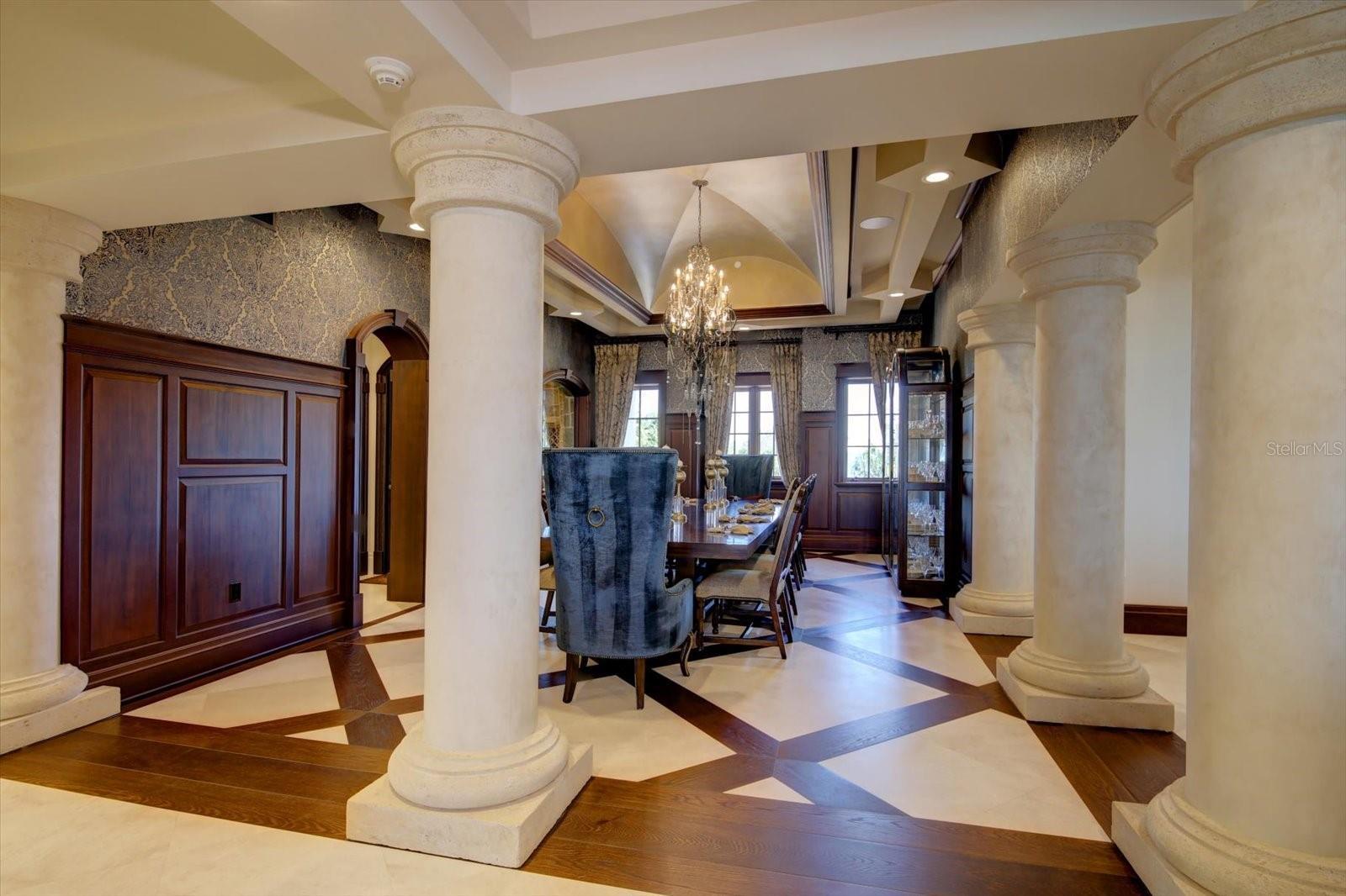 - Cathedral Ceiling(s), Ceiling Fans(s), Central Vaccum, Coffered Ceiling(s), Crown Molding, Elevator, High Ceilings, Kitchen/Family Room Combo, Living Room/Dining Room Combo, Open Floorplan, PrimaryBedroom Upstairs, Smart Home, Solid Wood Cabinets, Stone Counters, Walk-In Closet(s), Window Treatments