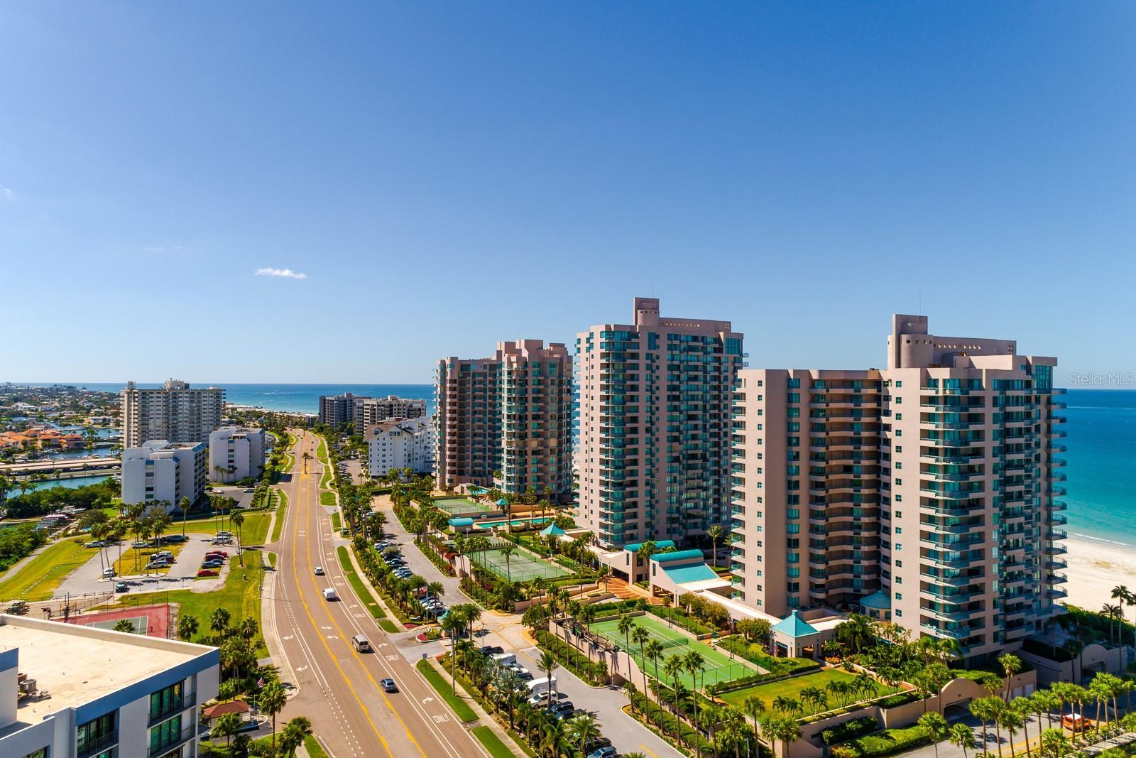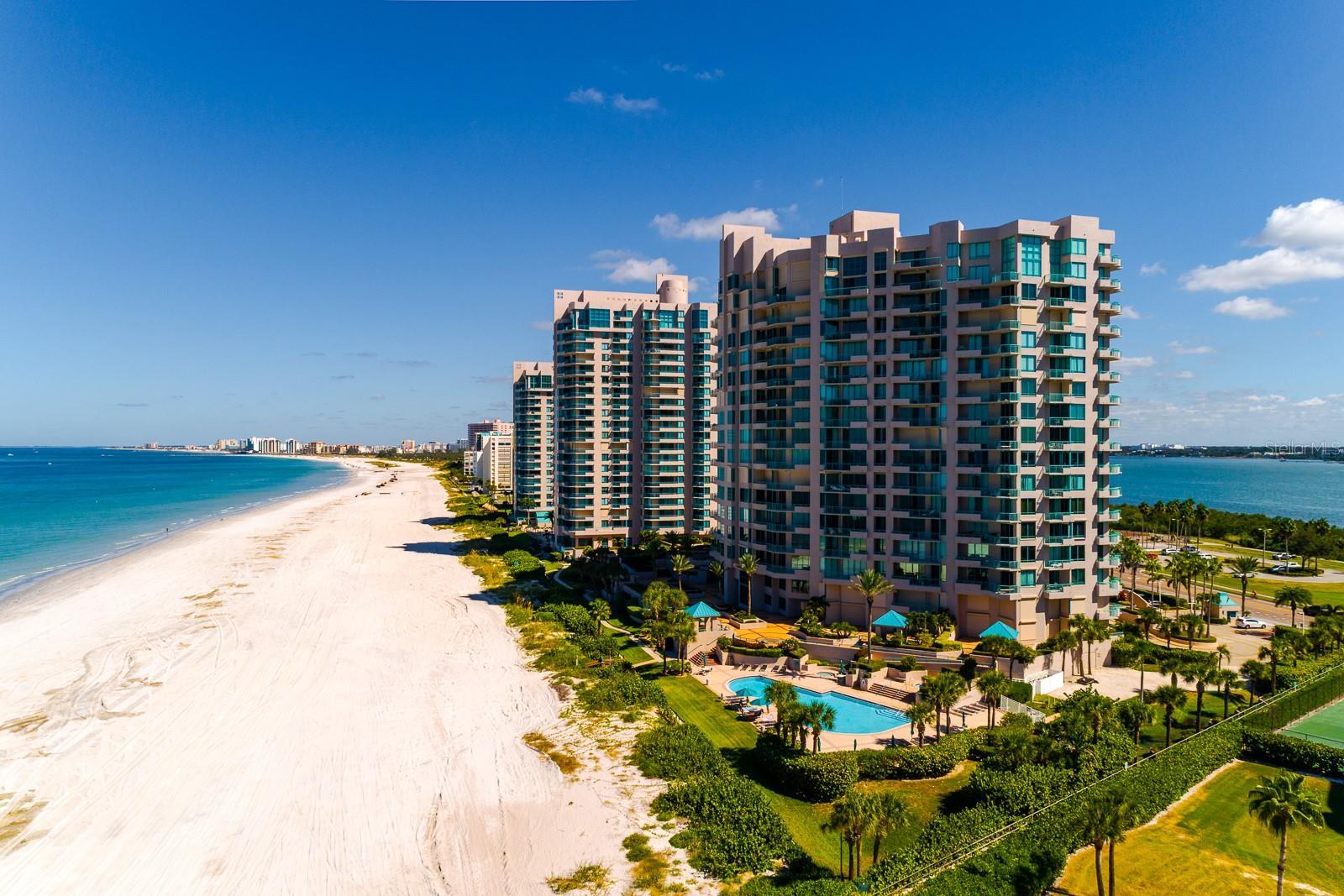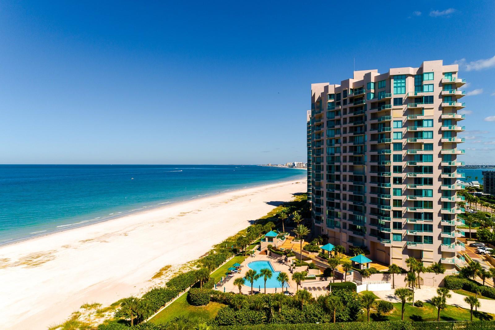 Live the coastal dream in this 15th-floor residence at the prestigious Ultimar on Sand Key, where luxury and lifestyle meet the beauty of the Gulf. Perfectly perched well above the surrounding buildings, this spacious 3-bedroom, 2.5-bath home offers unobstructed, panoramic views of both the sparkling Gulf and the Intracoastal Waterway. With views of the sunrise and sunset, every hour brings a new masterpiece across the horizon. Unlike other beachfront units, this south west end corner unit boasts 10-foot ceilings, with floor-to-ceiling windows and sliding glass doors that fill the 2,464-square-foot interior with natural light and endless 300 degree views to the West, South, and East. The wraparound balcony, spanning two-thirds of the unit, offers multiple seating and dining areas perfect for entertaining, relaxing, or simply taking in another unforgettable Sand Key sunset. Inside, the home has been lovingly maintained and is ready for a new owner’s personal touch. With a timeless floor plan, a clean neutral palette, and original finishes throughout, it provides the perfect opportunity to customize your own waterfront retreat. The kitchen, family room, and bedrooms all offer access to those incredible views, and the convenience of in-unit laundry and one reserved parking space adds to the ease of living. The Ultimar is known for its world-class amenities and resort-style atmosphere. Residents enjoy three geo-thermal heated pools with spas, tennis and pickleball courts, a putting green, basketball and croquet courts, shuffleboard, a firepit and grill area, a fitness center, sauna, steam room, billiards and game rooms, and an elegant clubhouse with a full kitchen, bar, and lounge. The community is 24-hour guard gated, offering both security and peace of mind, while HOA fees cover nearly every service and convenience imaginable—including cable, internet, water, sewer, and exterior maintenance. Whether you’re looking for a full-time beachfront residence or the ultimate seasonal retreat, this rare offering delivers the best of Sand Key’s luxury lifestyle—breathtaking views, resort amenities, and direct Gulf access just steps from your door. Schedule your private showing today and experience the Ultimar difference for yourself.