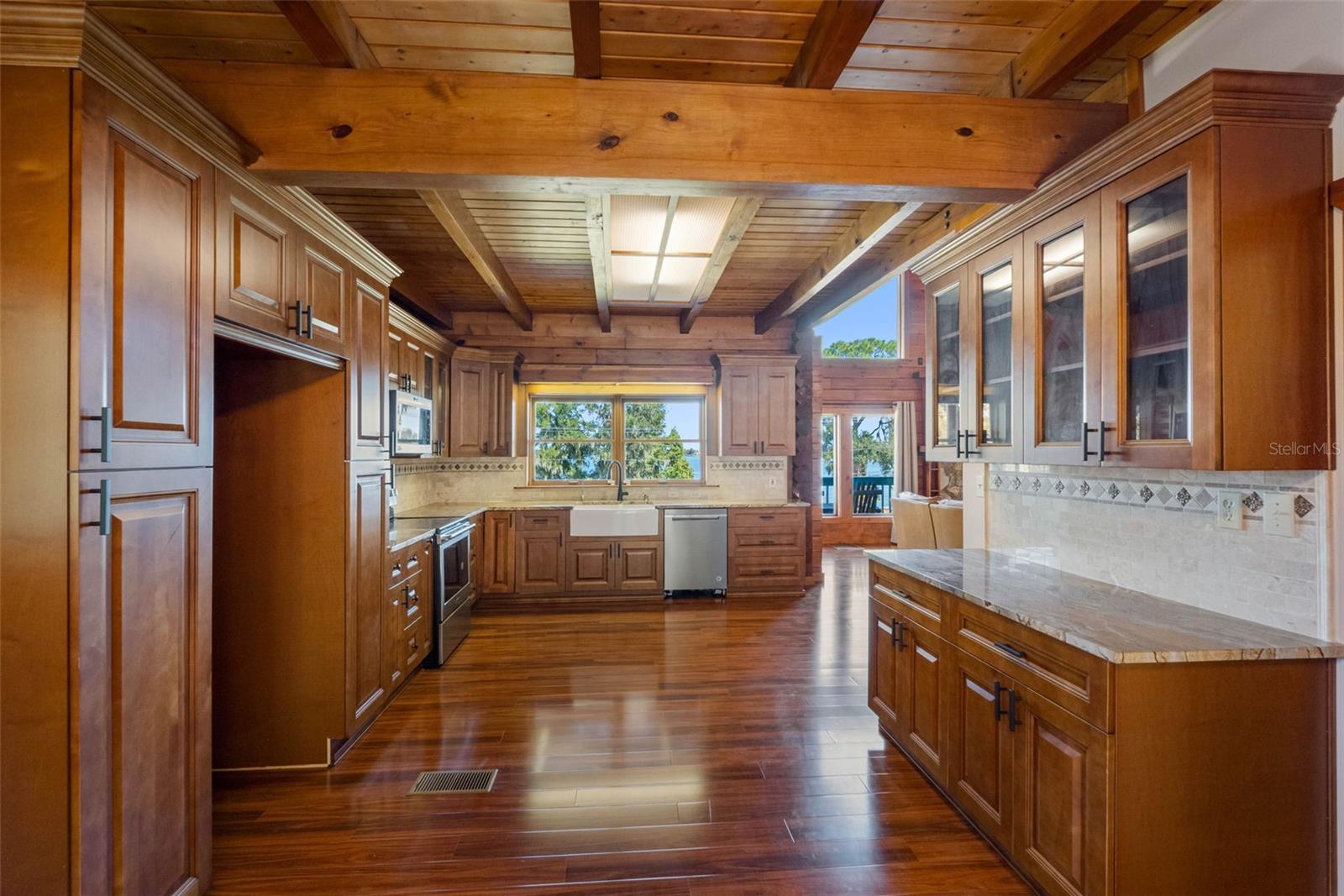 Welcome to your lakeside legend on Lake Thonotosassa, the largest natural lake in Hillsborough County, spanning more than 819 acres of sparkling freshwater beauty. This nearly 2.5-acre private estate is a handcrafted log-cabin masterpiece, surrounded by multi-million-dollar homes yet offering unmatched freedom and privacy. Inside, you’ll find six bedrooms and five baths, soaring vaulted ceilings, and walls of hand-finished wood that glow with natural warmth and timeless craftsmanship. A newly added full kitchen on the first floor creates flexibility, ideal for multi-generational living, private guest quarters, or a short-term rental setup with no HOA and no rental restrictions. The pool area was completely remodeled and lifted, adding a new sun shelf and a secure retaining wall for long-term stability. A second, separate planter retaining wall was installed previously, paired with an underground drainage system that keeps the property pristine and ideally graded. Though the pool sits privately to the rear, you’ll enjoy lake views from every front window, balcony and porch, as sunrise and sunsets over the water never gets old. A waterfall and stream flow gracefully alongside the home, leading to a tranquil Koi pond that completes the peaceful, resort-style ambiance. Across the street on your private lakefront parcel, a cabana with fire pit and outdoor kitchen sets the stage for unforgettable gatherings. The estate is self-sustained with a septic system and new water purification setup, meaning no water or sewer bills. Inside, treat yourself and your guests to the enormous, elegant Turkish bath, a luxurious retreat worthy of a boutique spa. A three-car detached garage shelters your adult-toy investments such as boats, bikes and jet skis, while 10-plus parking spaces between the garage, pads and custom carport ensure room for every guest. Just minutes from USF, top-tier medical centers, Tampa International Airport and Tampa Stadium, you’ll have the most modern conveniences within easy reach yet feel like you’re living in the quiet country, surrounded by water, wildlife and wide-open skies. Every detail of this property blends artistry with utility, luxury with freedom and comfort with opportunity, all set on the shimmering shores of Lake Thonotosassa, where Florida living feels wild, warm and wonderfully alive.