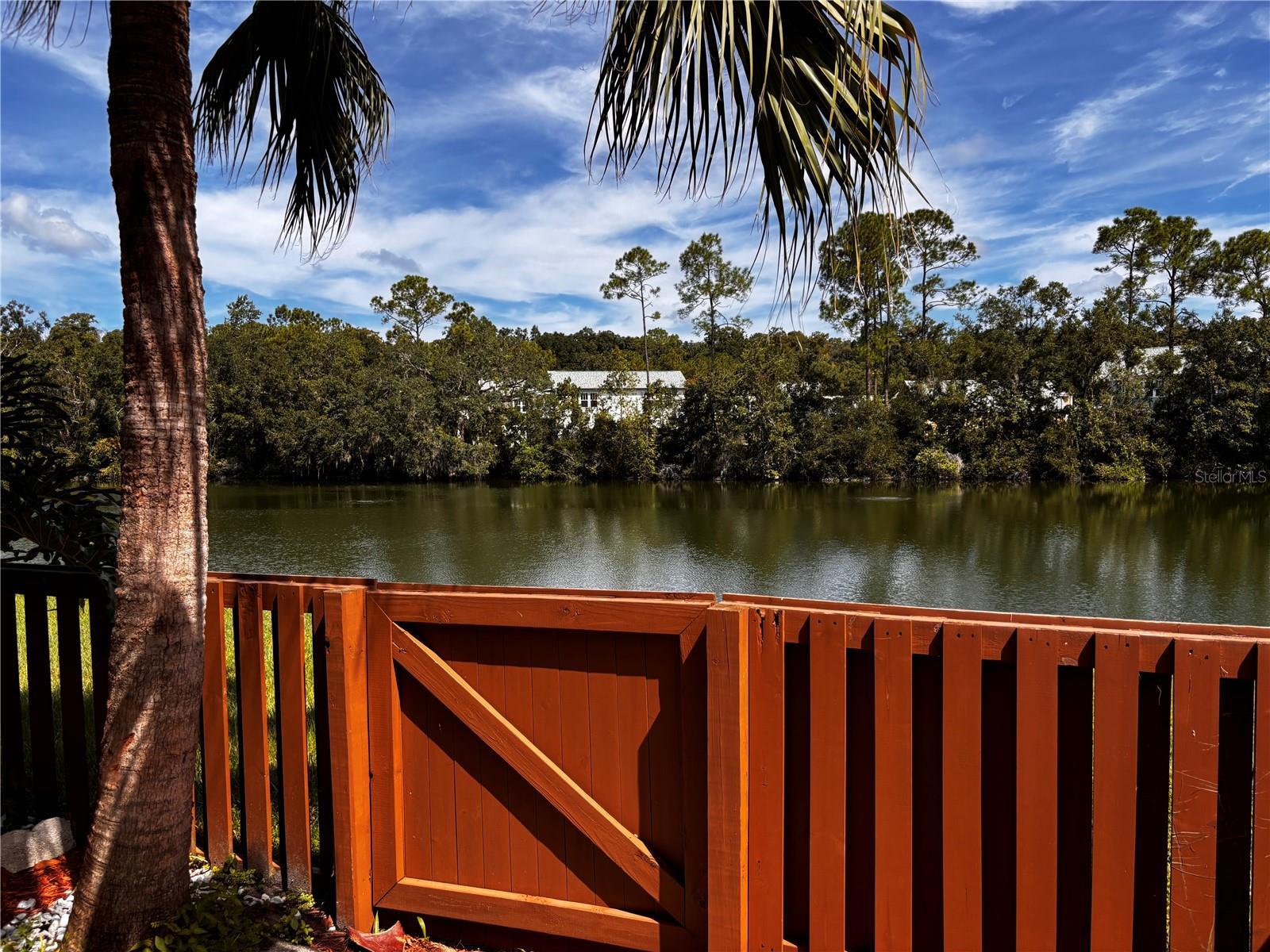 One or more photo(s) has been virtually staged. Waterfront. Enjoy the serenity of a lakefront home with serene water views from the bedroom, living room and fenced back yard. Nestled in a park like setting the end of a cul-de-sac, this home is a quick drive to USF, Moffitt Cancer Center and many of the local research hospitals as well as convenient to shopping, restaurants and local activities. This 2 bedroom 2 bath home is in a POOL COMMUNITY with TENNIS COURTS, PICKLEBALL COURTS and WALKING TRAILS. The kitchen features granite counters and solid wood cabinets. New stainless steel appliances. Soaring ceilings give the living room a majestic feel. Hardwood floors add that touch of class. There are not many homes available in such a great, parklike setting at this price. THE AC was REPLACED in2025 which will help with your electric bills