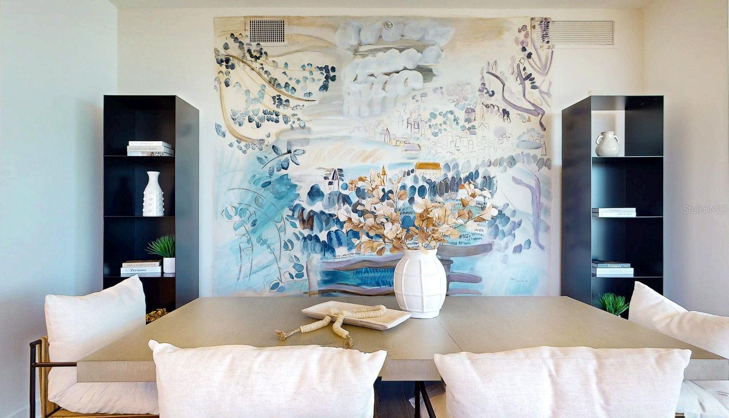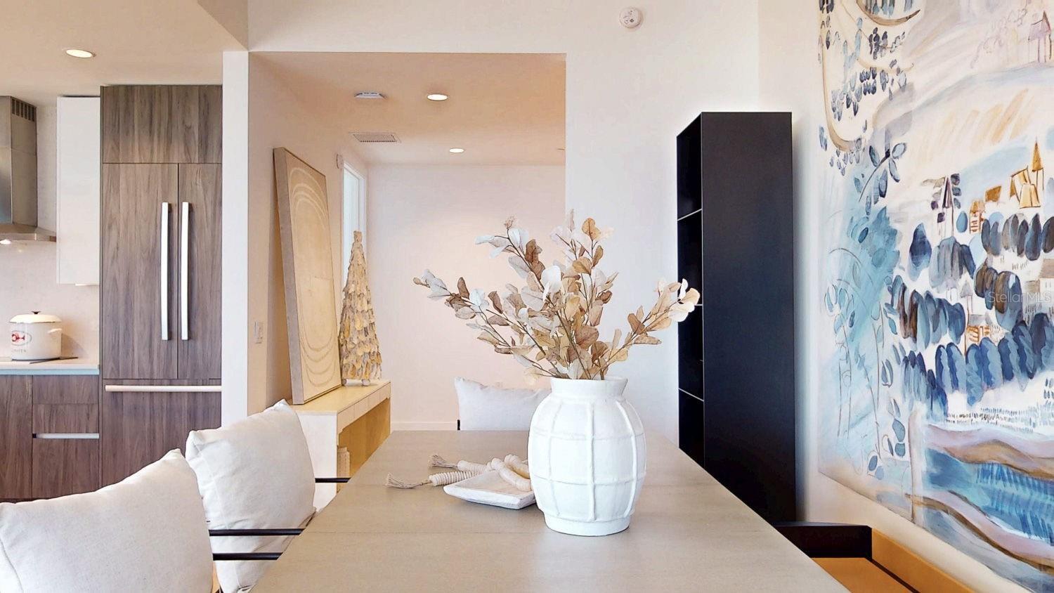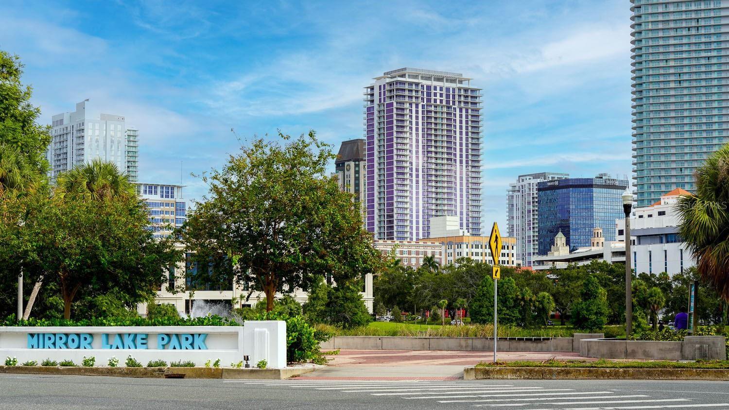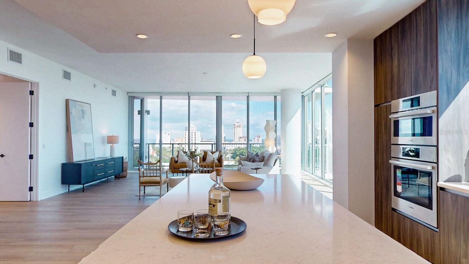 Price reduction and recent (1/2026) updates to kitchen, stunning dividing wall in den and upgraded laundry room finished !!! Motivated seller !!! The Lapis at REFLECTION blends modern design with downtown St. Petersburg’s best WATER AND CITY views. 2 bedroom 2 bathroom AND a large Den (or 3rd bedroom), floor-to-ceiling impact hurricane glass windows brings natural light and sweeping city, Mirror Lake, and Tampa Bay vistas into the open living area, and an exceptional covered large patio adding to the outdoor living area. The welcoming kitchen impresses with quartz countertops, a waterfall island, cabinet-ready Bosch appliances and even an induction cooktop, with a window above the sink framing the skyline. Two HVAC systems with each Halo purification and 10’ ceilings enhance comfort and air quality. The primary suite includes a European-style wet room, upgraded fixtures, one walk in HUGE closet & a regular closet. A large den offers the option of an office or extra 3rd bedroom that will be finished with added wall. This never-lived-in residence features about $150,000 in EXTRA upgrades: whisper quiet Lutron Palladiom motorized shades, CoreTec premium flooring, designer lighting and mirrors, granite backsplash, and a laundry room with soapstone counters, cabinetry, and a deep sink, 8 foot by 10 foot dining wall mural by Carol Dameron & much more! REFLECTION’s rooftop amenities include a heated saltwater pool, spa, fitness center, and entertaining areas with panoramic views. And of course 2 covered and secured parking spaces are included, one even with EV station, and a temperature controlled storage unit! The Condo Association offers complimentary golf cart transportation for residents, providing convenient rides to and from downtown destinations. One or more photo(s) has been virtually staged.