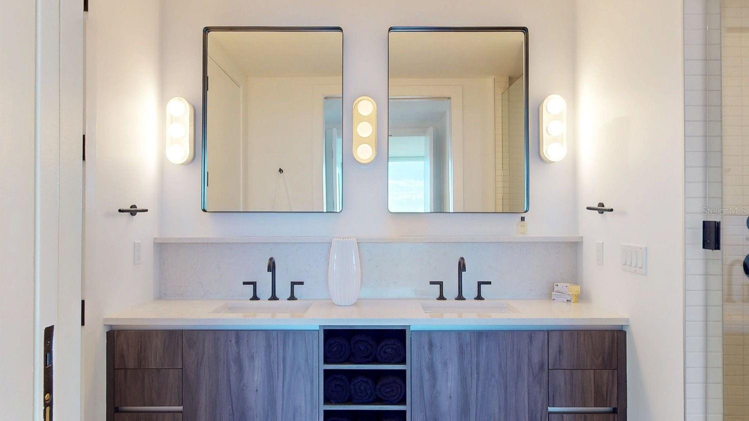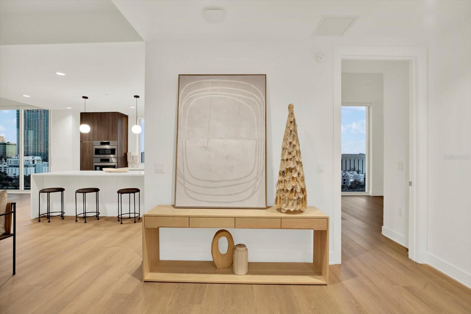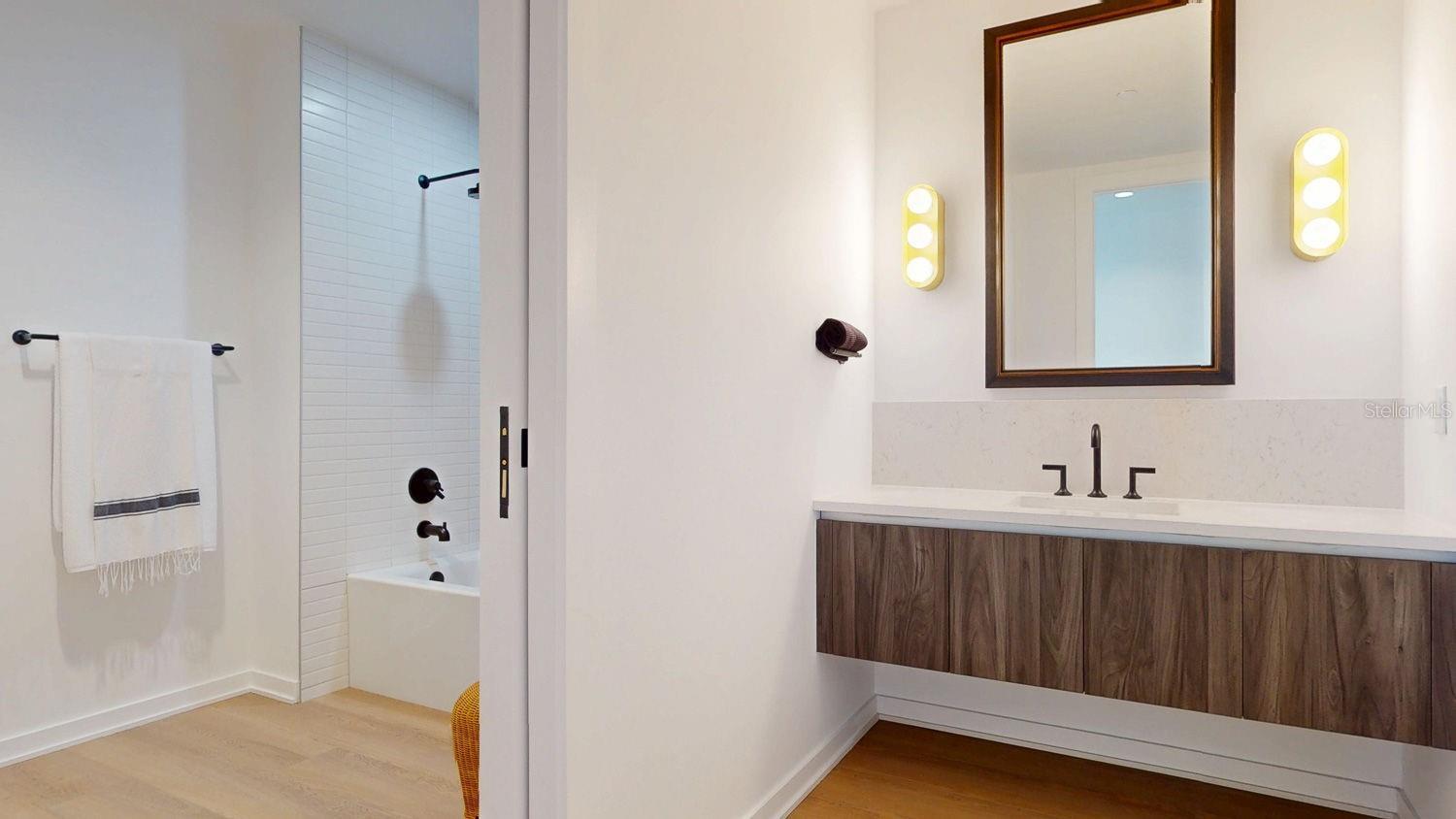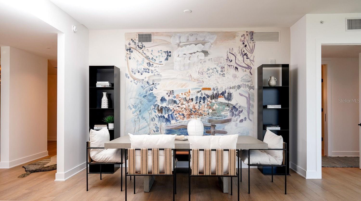 Price reduction and recent (1/2026) updates to kitchen, stunning dividing wall in den and upgraded laundry room finished !!! Motivated seller !!! The Lapis at REFLECTION blends modern design with downtown St. Petersburg’s best WATER AND CITY views. 2 bedroom 2 bathroom AND a large Den (or 3rd bedroom), floor-to-ceiling impact hurricane glass windows brings natural light and sweeping city, Mirror Lake, and Tampa Bay vistas into the open living area, and an exceptional covered large patio adding to the outdoor living area. The welcoming kitchen impresses with quartz countertops, a waterfall island, cabinet-ready Bosch appliances and even an induction cooktop, with a window above the sink framing the skyline. Two HVAC systems with each Halo purification and 10’ ceilings enhance comfort and air quality. The primary suite includes a European-style wet room, upgraded fixtures, one walk in HUGE closet & a regular closet. A large den offers the option of an office or extra 3rd bedroom that will be finished with added wall. This never-lived-in residence features about $150,000 in EXTRA upgrades: whisper quiet Lutron Palladiom motorized shades, CoreTec premium flooring, designer lighting and mirrors, granite backsplash, and a laundry room with soapstone counters, cabinetry, and a deep sink, 8 foot by 10 foot dining wall mural by Carol Dameron & much more! REFLECTION’s rooftop amenities include a heated saltwater pool, spa, fitness center, and entertaining areas with panoramic views. And of course 2 covered and secured parking spaces are included, one even with EV station, and a temperature controlled storage unit! The Condo Association offers complimentary golf cart transportation for residents, providing convenient rides to and from downtown destinations. One or more photo(s) has been virtually staged.