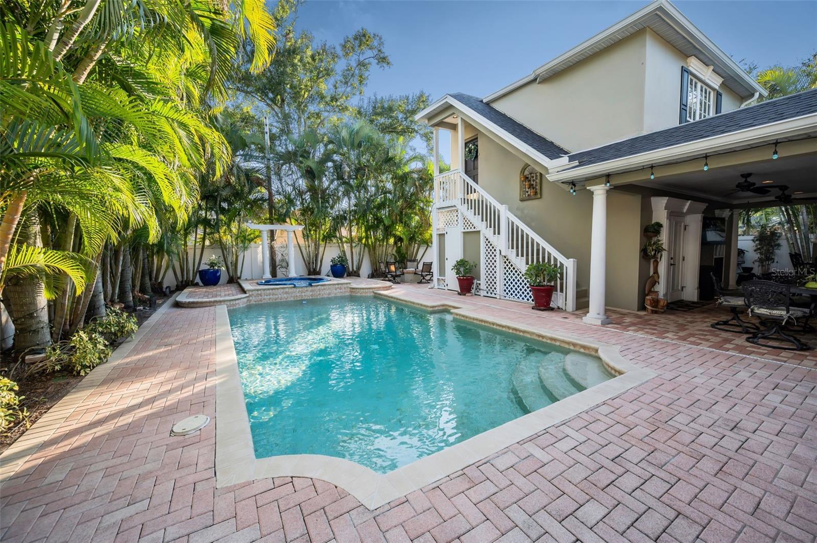 Under contract-accepting backup offers. LOVED FOR DECADES! READY FOR NEW MEMORIES! Discover this elegant pool home in the heart of South Tampa's Swann Estates neighborhood - a perfect blend of luxury, comfort and functionality. Built in 1996, this home offers 3,331 sq. ft. of heated living space; a 4 bedroom, 2.5 bath home and a detached two-story guest suite with an additional bedroom and full bath. Upon entering the dramatic foyer, you'll notice features that are sure to impress: soaring ceilings, crown molding, paneled wainscoting, beautiful wood flooring, and a light and bright interior. The main downstairs living area was designed with timeless elegance and effortless entertaining in mind. The living room/study has a gas fireplace adding warmth and comfort during cooler months. Gather for more formal meals in the dining room that features eye-catching chandelier lighting. The open floor plan includes a kitchen equipped with gas cooking, double ovens, granite counters, stainless farmhouse sink, and an island ideal for prepping, serving, and socializing. The kitchen flows seamlessly into the breakfast nook that can accommodate up to six bar stools for casual dining. The adjacent family room includes built-in cabinetry, plantation shutters and french doors that open to the outside. Travel upstairs to four bedrooms and a convenient laundry room. The spacious primary suite offers a tray ceiling, two walk-in closets, and a spa-like bathroom with dual granite-topped vanities, a garden tub, a private water closet, and a walk-in shower. Additional bedrooms are nicely-sized, one of which is used as an office. The detached guest suite has endless multi-generational possibilities: bedroom for family or guest needs, exercise center, bonus room/media center. The upper level includes a full bath. Embrace the Florida resort lifestyle in the SPECTACULAR paved covered lanai area - an entertainer's dream complete with grill, granite counters, conversational and TV-viewing seating, serving bar with new Hoshizak ice maker and a built-in mosquito misting system. Fenced for privacy and accented by tropical palms, your outside backyard oasis includes a sparkling Pebble Tec pool, heated spa, gas fire pit, pool bath and storage closet. Additional home features include fresh interior paint (2025), a newer roof (2020), covered carport and paver driveway, Polaris Robotic pool cleaner (2025), Rinnai gas tankless water heater, leaf guard gutter system (2021), a Bosch AC installed in 2023 and and a brand-new Rheem A/C for the detached guest suite (2025). Residents of this walkable neighborhood enjoy top-rated schools (Grady, Coleman, Plant) and a prime location convenient to Tampa International Airport, Raymond James Stadium, Amalie Arena, Downtown Tampa and Westshore business areas, Water Street, Hyde Park, hospitals, premier shopping and dining. Nearby bridges lead to Pinellas County and world-renowned Gulf beaches. Schedule your private showing today!
