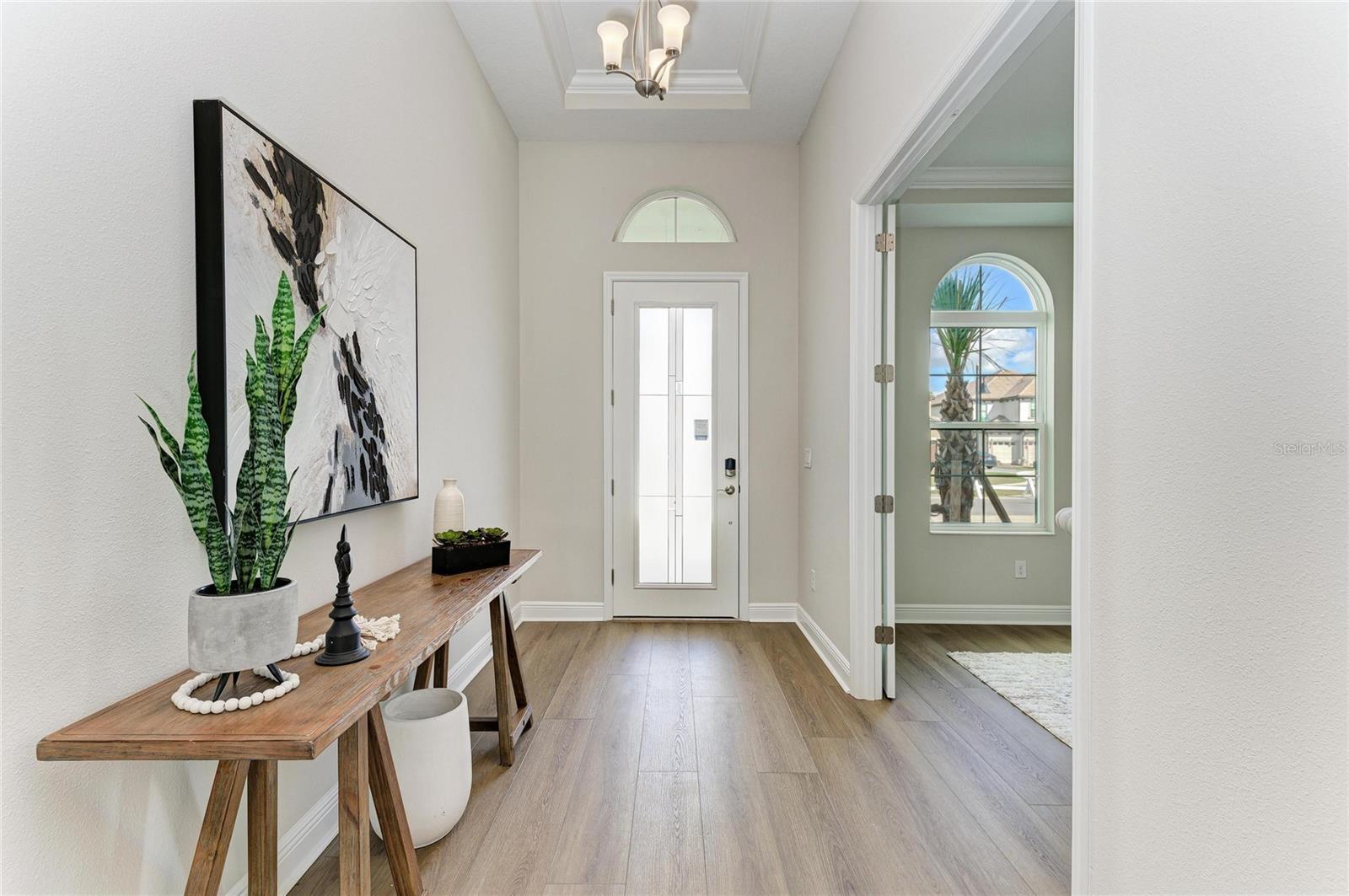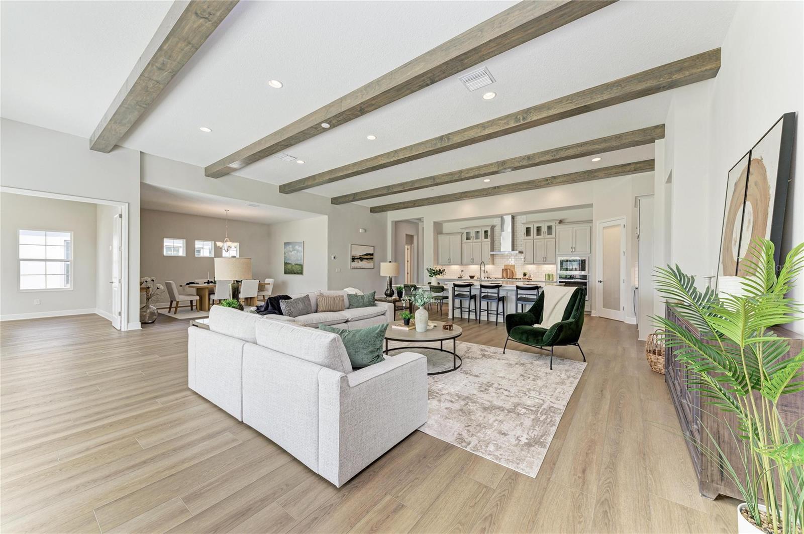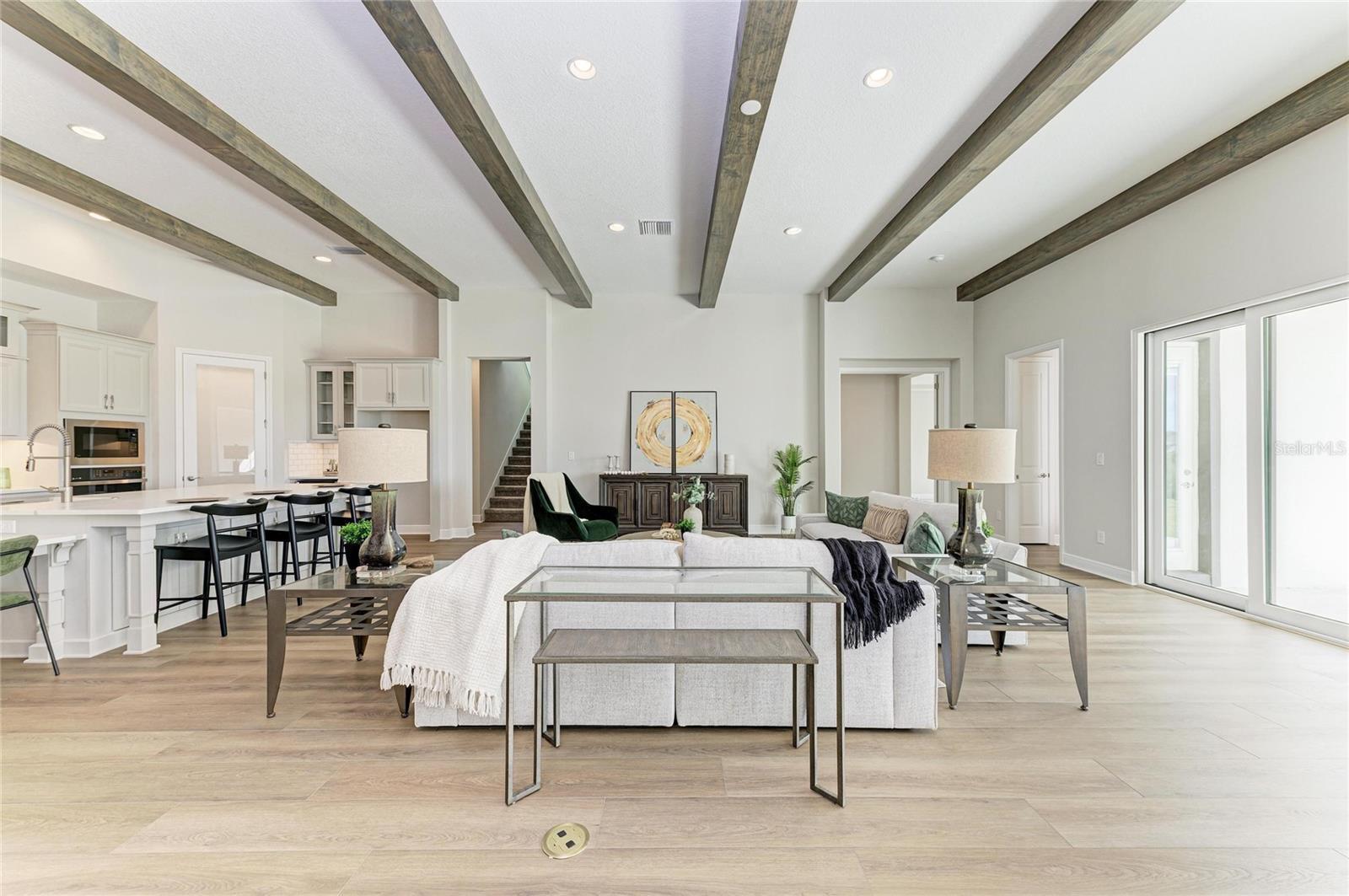 One or more photo(s) has been virtually staged. Key West II - Imagine settling into this beautiful home right away, a space that truly understands and embraces the Florida lifestyle. The Key West II features a bright, airy floor plan that just flows perfectly from the foyer through to the expansive open living areas and continues right out to the oversized covered lanai, making it an absolute dream for indoor outdoor living. The common living areas truly impress with grand 12 foot ceilings in the extended foyer, a versatile den, the generous grand room, and the gourmet kitchen with its large central island, creating an immediate sense of spaciousness and sophistication. The dining room is equally ready for an elegant evening or a relaxed gathering. Your private sanctuary awaits on the lower level in the owner's retreat, which is complete with a large spa like bathroom and an oversized walk in closet. For ultimate convenience, two additional bedrooms and a full bathroom are also located downstairs, while the upper level provides a fourth bedroom, a full bath, and a flexible bonus room for guests or media space. This home is appointed with a curated selection of premium finishes, including elegant Maddox Painted Harbor cabinets, durable Frost Whte MSI Quartz countertops, and stylish Nutmeg Luxury Vinyl Plank flooring. Plus, this particular home has even more adaptability with an upgraded downstairs bonus room and pool bath. Don't miss the chance to make this exceptional Key West II your home! Listing Price amount for this Pending Sale includes Design and Structural Options. Please note: This home is professionally staged.