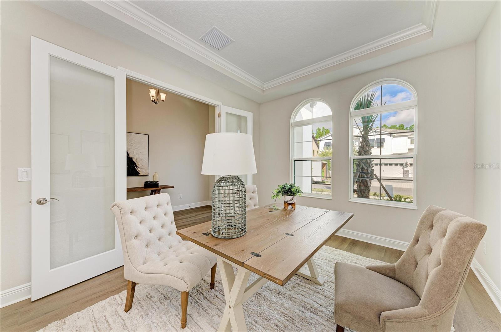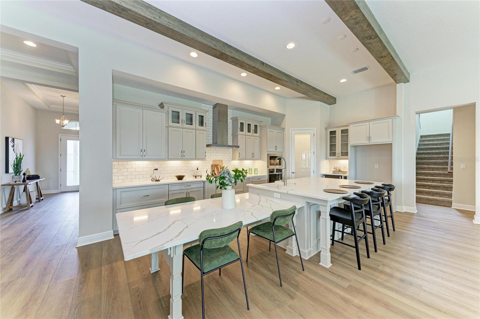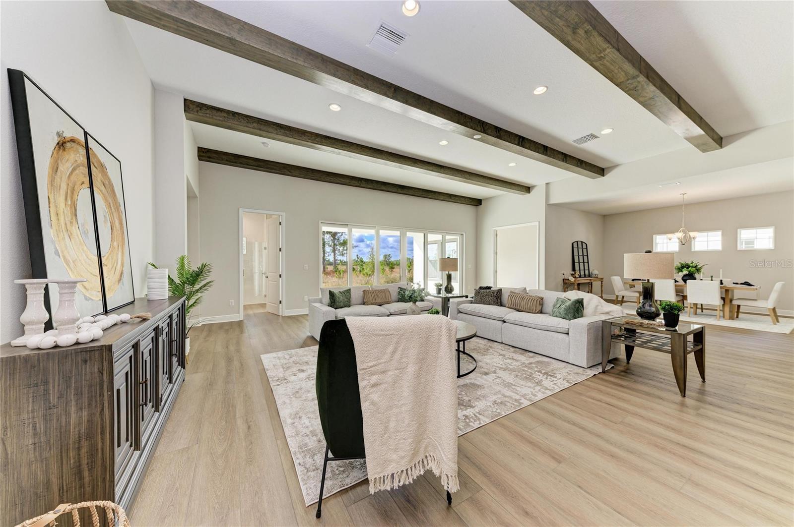 One or more photo(s) has been virtually staged. Key West II - Imagine settling into this beautiful home right away, a space that truly understands and embraces the Florida lifestyle. The Key West II features a bright, airy floor plan that just flows perfectly from the foyer through to the expansive open living areas and continues right out to the oversized covered lanai, making it an absolute dream for indoor outdoor living. The common living areas truly impress with grand 12 foot ceilings in the extended foyer, a versatile den, the generous grand room, and the gourmet kitchen with its large central island, creating an immediate sense of spaciousness and sophistication. The dining room is equally ready for an elegant evening or a relaxed gathering. Your private sanctuary awaits on the lower level in the owner's retreat, which is complete with a large spa like bathroom and an oversized walk in closet. For ultimate convenience, two additional bedrooms and a full bathroom are also located downstairs, while the upper level provides a fourth bedroom, a full bath, and a flexible bonus room for guests or media space. This home is appointed with a curated selection of premium finishes, including elegant Maddox Painted Harbor cabinets, durable Frost Whte MSI Quartz countertops, and stylish Nutmeg Luxury Vinyl Plank flooring. Plus, this particular home has even more adaptability with an upgraded downstairs bonus room and pool bath. Don't miss the chance to make this exceptional Key West II your home! Listing Price amount for this Pending Sale includes Design and Structural Options. Please note: This home is professionally staged.