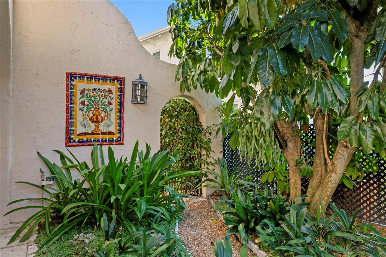 - Awning(s), Balcony, Courtyard, French Doors, Lighting, Rain Gutters, Sidewalk