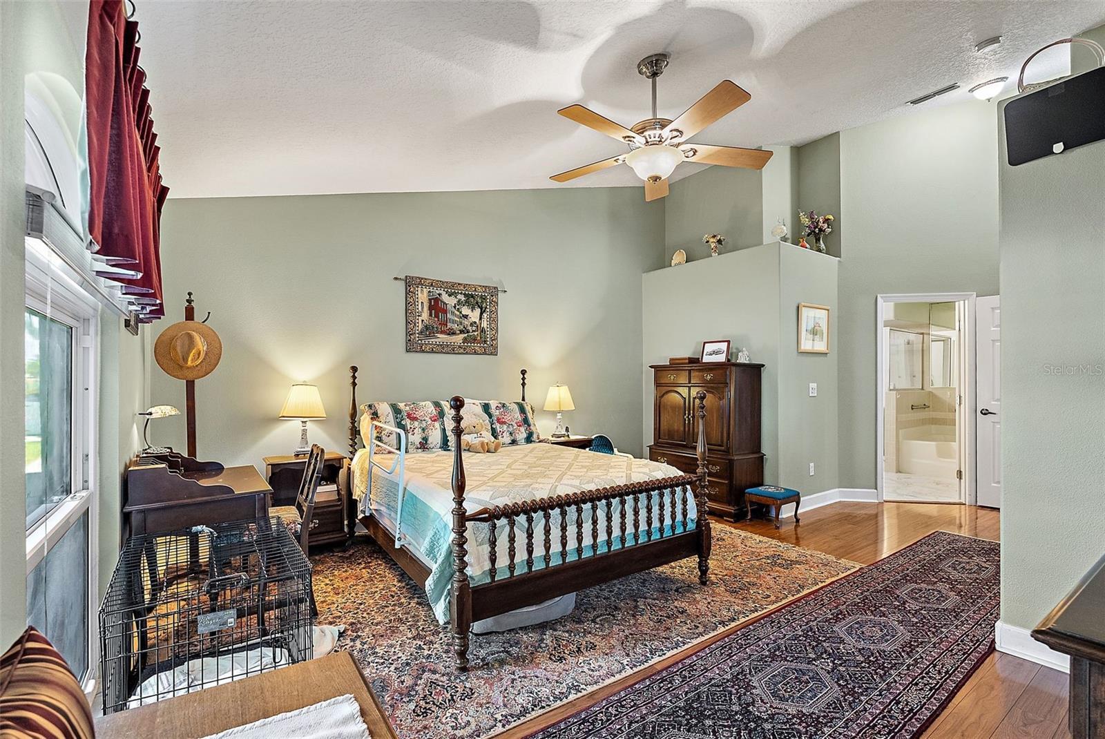 - Cathedral Ceiling(s), High Ceilings, Living Room/Dining Room Combo, Open Floorplan, Primary Bedroom Main Floor