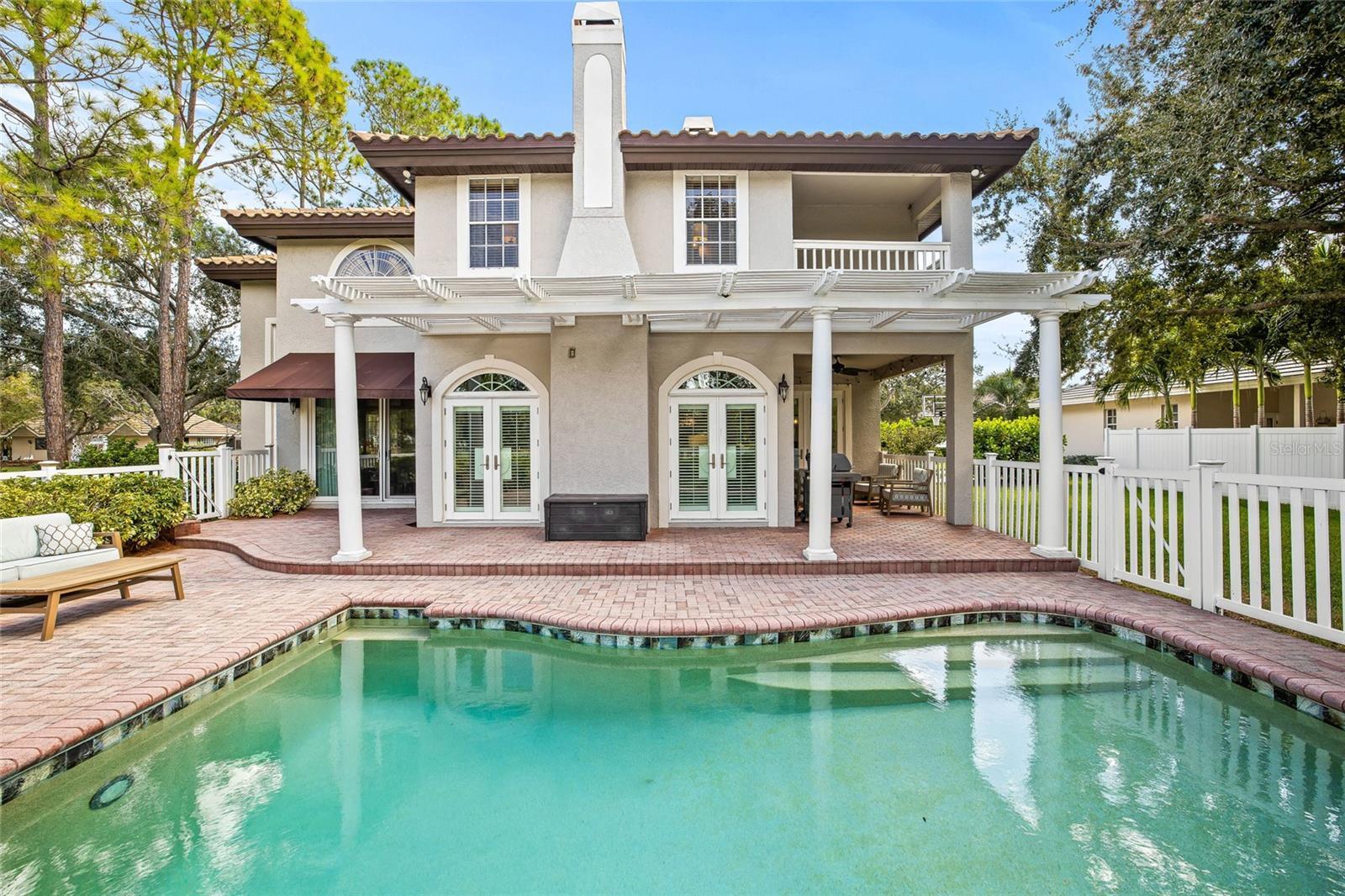 Under contract-accepting backup offers. Tucked within the prestigious, guard-gated enclave of Placido Bayou, this remarkable two-story estate stands as one of the community’s most custom-designed floorplans — a true showcase of craftsmanship and coastal sophistication. Spanning over 3,500 square feet, the home features four bedrooms plus an office and two-and-a-half baths, each space thoughtfully curated for form and function. The entire first floor has been updated with rich coastal hardwood flooring and a showstopping gourmet kitchen that defines modern luxury. Every element, from the beveled Quartzite countertops to the Sub-Zero refrigerator, Wolf oven, induction cooktop, and built-in wine cooler, reflects an uncompromising standard of quality. Cleverly integrated pull-out appliance and beverage cabinets keep the space and electrical outlets discreet and functional. Opposite the large kitchen island lies an inviting hearth room which opens to a Southern-style pool terrace through French doors overlooking the lake—a picture-perfect setting for morning coffee or evening gatherings. The formal dining room and adjacent hospitality room’s soaring 30-foot ceilings create a dramatic sense of arrival, balanced by the warmth of natural light and the graceful sweep of a staircase that leads to the upper level. Upstairs, a versatile bonus room provides the ideal nook for a media lounge, creative studio, or serene space for work and study. The primary suite is a destination unto itself, featuring a brand-new, spa-inspired bathroom with chevron-laid tile, vessel tub, and a glass-enclosed shower that evokes a boutique resort. Two custom walk-in closets and a private covered balcony extend the sense of calm and luxury, offering the perfect spot to unwind among a canopy of trees. Three additional large bedrooms are located down the hall with a shared hallway bathroom. Thoughtfully designed and meticulously upgraded, this home captures the essence of refined Florida living—all while being minutes away from dining, shopping, entertainment and outdoor enjoyment of downtown St. Petersburg, sugar-sand beaches and a quick commute to two international airports.
