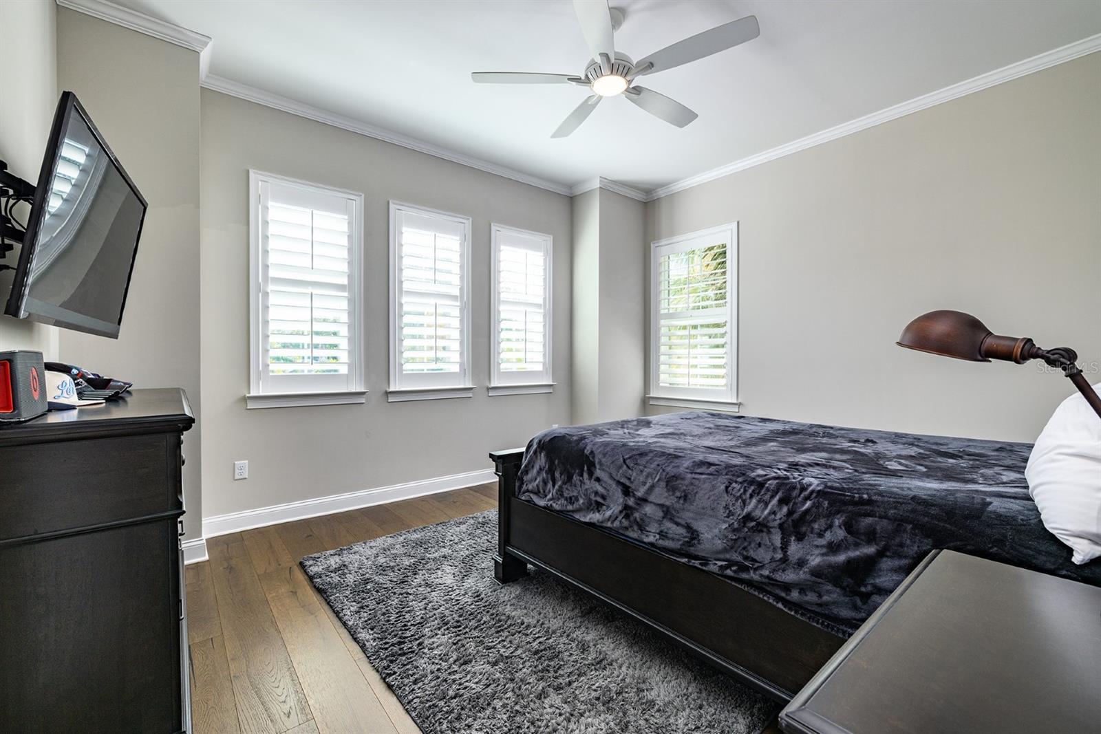 Beautiful Milana Custom Home Built in 2020! Step onto the charming front porch and into a welcoming foyer that opens to a spacious living room featuring rich hardwood floors throughout. The open-concept kitchen is a chef’s dream, complete with a gas range, pot filler, and a large island with seating—perfect for casual dining or entertaining. A cozy dining nook and open family room overlook the back patio and private, fenced backyard.Upstairs, a versatile loft area leads to the luxurious primary suite and three additional bedrooms. The primary suite offers a generous walk-in closet, dual vanities, a standing shower, and a freestanding soaking tub for ultimate relaxation. Enjoy outdoor living year-round on the covered lanai with a built-in fireplace and entertainment setup. The backyard is fully enclosed with a 6-foot white PVC fence, providing both privacy and charm. Additional features include 8-foot doors throughout and impact-resistant windows. Centrally located and just minutes from all that South Tampa has to offer—this home blends quality craftsmanship, comfort, and convenience in one perfect package.