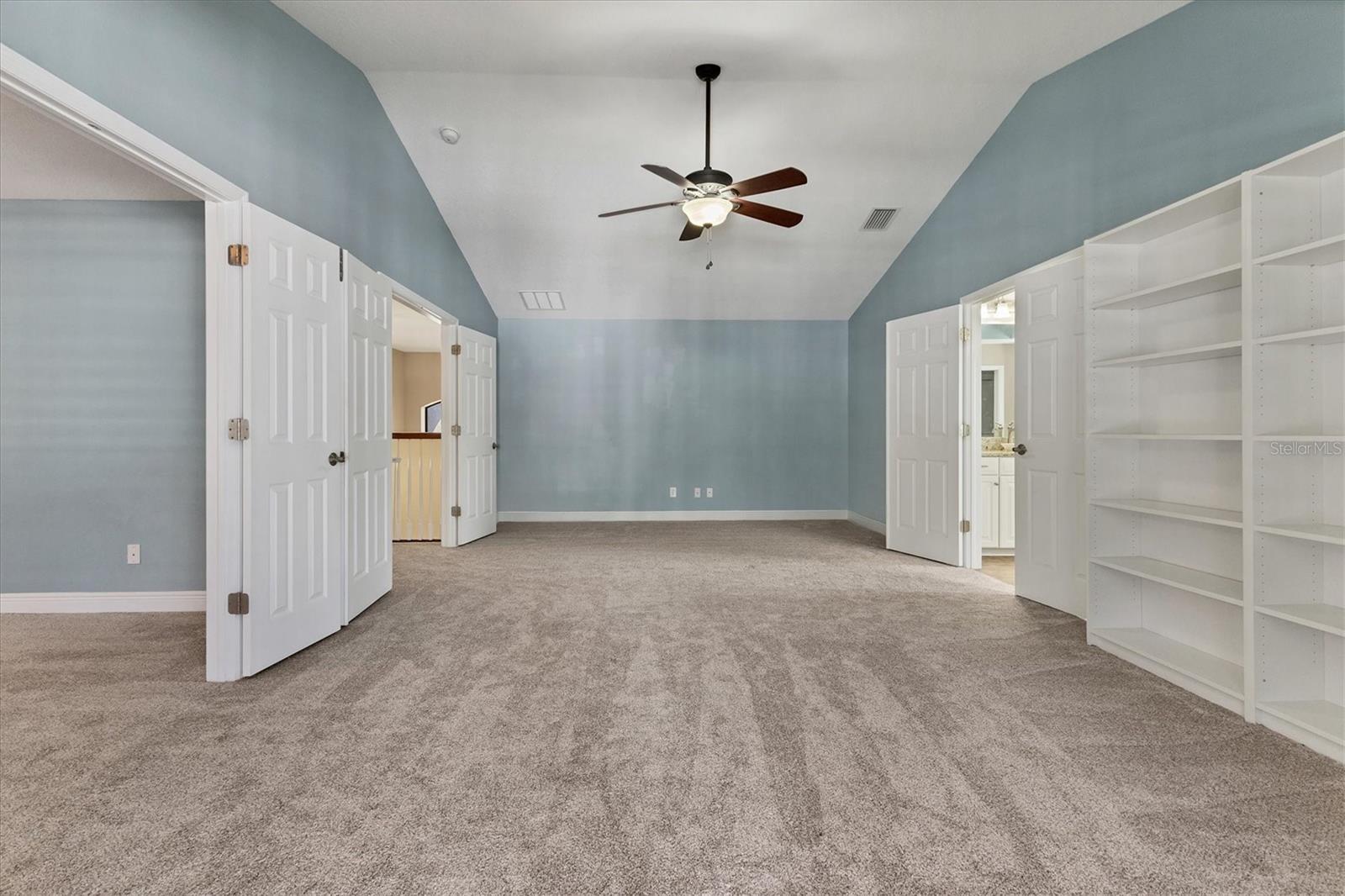 - Ceiling Fans(s), Crown Molding, Dry Bar, Eat-in Kitchen, High Ceilings, Living Room/Dining Room Combo, PrimaryBedroom Upstairs, Stone Counters, Thermostat, Walk-In Closet(s), Window Treatments