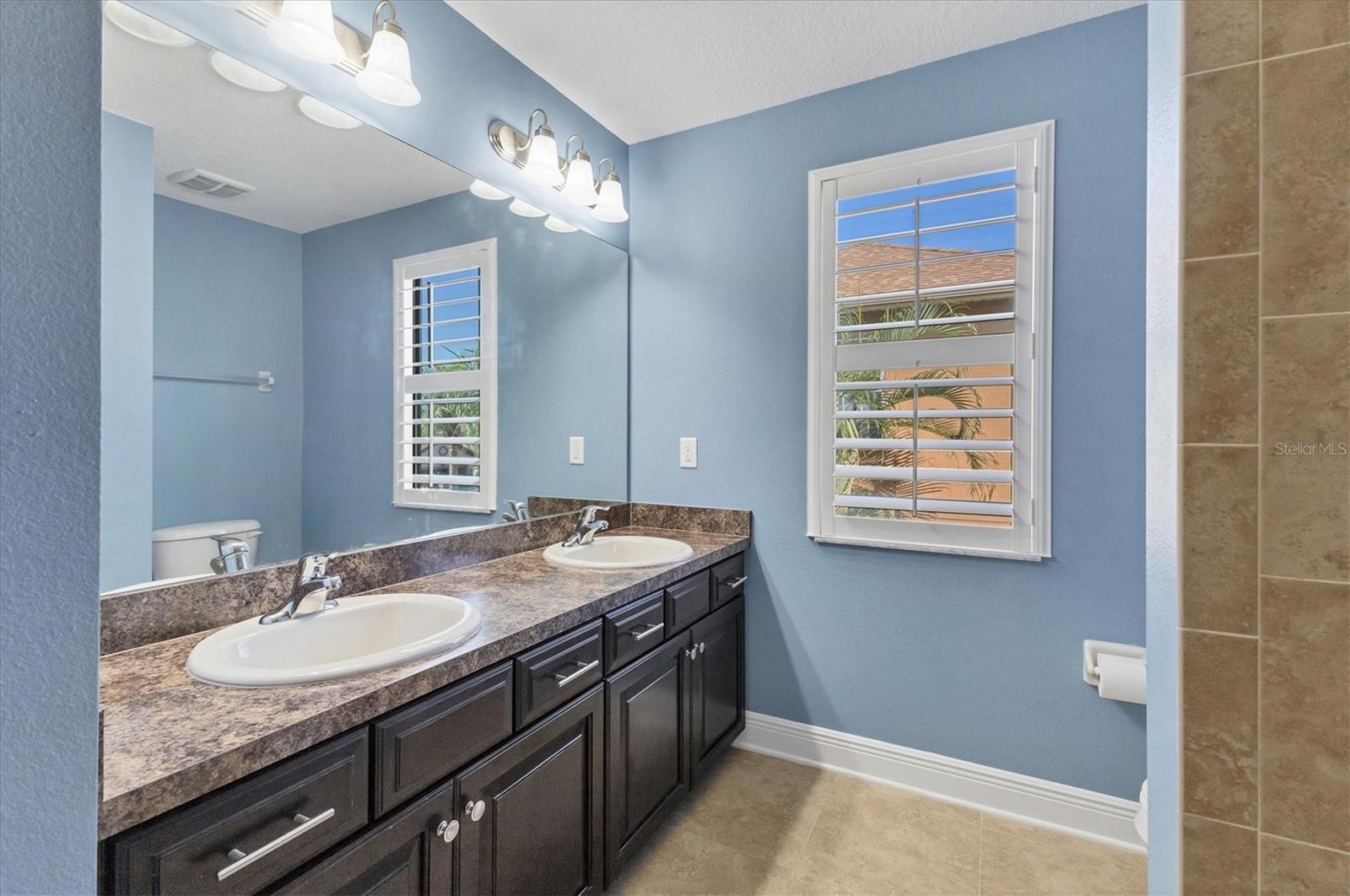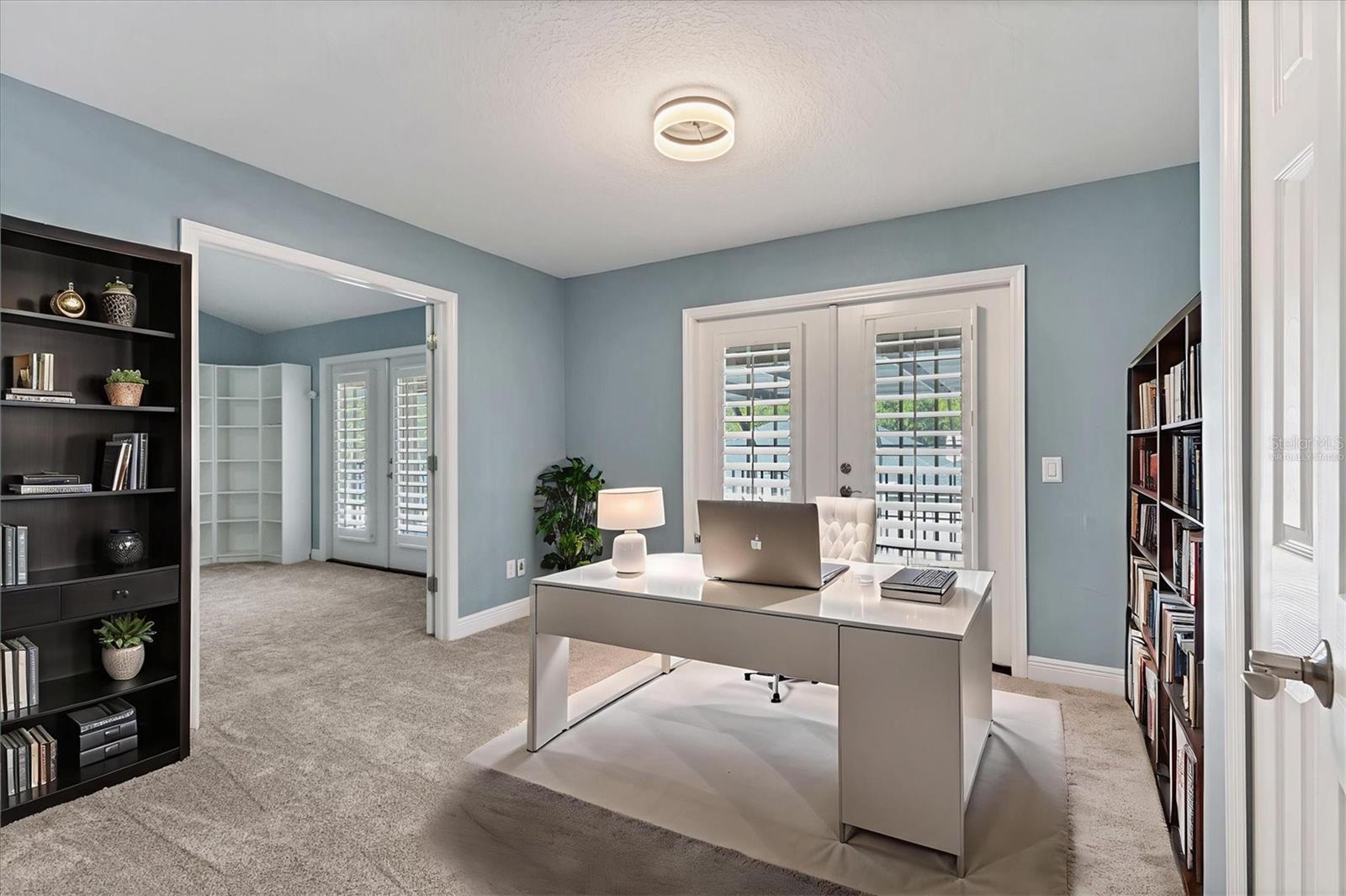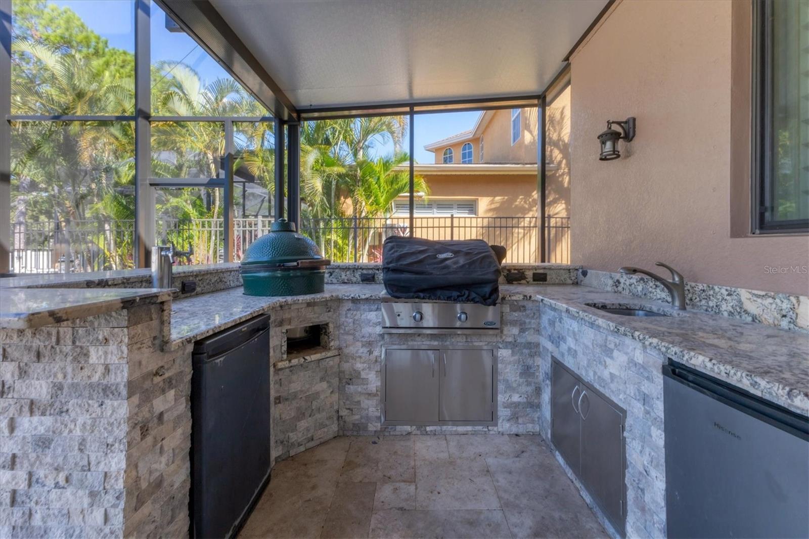 One or more photo(s) has been virtually staged. ENTERTAINER'S DREAM! With 5000SF under roof, this beautiful 5-bedroom home situated within a small GATED COMMUNITY, features 3 full baths (1 accessible to pool/patio), a Living/Dining Combo, Kitchen/Family combo, BONUS ROOM, POOL & 3 CAR GARAGE. In 2024 a $100k upgrade extended the BACK PATIO PAVER DECK to the property line to provide an ENORMOUS OUTDOOR RETREAT that is surrounded by a 2 STORY SCREENED ENCLOSURE that also encompasses the UPSTAIRS PATIO off the Primary Bedroom Suite. Use the EXTRA SPACE to set up a game of cornhole, chaise loungers and even a dining table with chairs. The inviting HEATED, SALTWATER POOL (heat pump 04/25 + WIFI controller) boasts a shallow SUN SHELF complete with shade umbrella as well as a serene ROCK WATERFALL FEATURE. You're sure to appreciate the COVERED OUTDOOR KITCHEN with mini fridge, propane grill, stainless steel sink & a big Green Egg too! An OUTDOOR LIVING AREA w/ WALL MOUNTED TV completes this outdoor space! For added safety, a METAL FENCE surrounds the backyard and joins the neighbor's privacy fence for a FULLY FENCED BACKYARD. The entire EXTERIOR is FRESHLY PAINTED (Oct 25) & has NEW COACH LIGHTING. DOUBLE FRONT DOORS, in a tropical shade of blue, welcome you inside this beautiful home where you'll enter into an OPEN FOYER that is also home to a staircase to the second floor. The formal living/dining areas boast WOOD FLOORS, WAINSCOTING DETAIL & PLANTATION SHUTTERS. A spacious family room also features wood floors and boasts FULLY RETRACTABLE SLIDING DOORS that will open up the house for SEAMLESS INDOOR-OUTDOOR LIVING. The WELL-APPOINTED, EAT-IN KITCHEN is ideally situated in between the dining & family rooms. Featuring GRANITE counters, TILE backsplash, STAINLESS STEEL appliances including a French (2 door/2 drawer) refrigerator, a dishwasher, microwave, DUAL WALL OVENS, a glass cooktop & microwave oven, this kitchen is ideal for a large family...as is the HUGE WALK-IN PANTRY that wraps under the stairs for more STORAGE. Handy PULL-OUT DRAWERS are in MOST CABINETS for added convenience & there's also a built-in DRY BAR. Rounding out the 1st floor is the LAUNDRY ROOM featuring a FULL-SIZE STACKED WASHER & DRYER, a utility SINK and storage cabinets, as well as a GUEST BEDROOM & FULL BATH that doubles as a POOL BATH. Up the staircase & throughout the ENTIRE SECOND FLOOR is BRAND-NEW CARPET. At the top of the stairs, you'll enter the incredible PRIMARY SUITE through double doors. Inside you'll find CUSTOM BUILT-IN WALL SHELVES & a SPACIOUS ENSUITE BATH featuring separate vanities, a beauty bar, walk-in shower, garden tub, private water closet & 2 walk-in closets with Automatic Lighting. The MAIN CLOSET offers maximum space utilization with a CUSTOM-BUILT CLOSET SYSTEM. Access the DECK OVERLOOKING THE POOL through French Doors. A small bedroom is connected to the primary suite by double doors and would make a great OFFICE, NURSERY or DEN. Two additional bedrooms with walk-in closets, bookend a HUGE WALK-IN STORAGE CLOSET (possible 2nd laundry room) and a 3rd full bath with dual vanities, a tub/shower combo & linen closet. Last but not least is the spacious BONUS ROOM- great for a theatre, playroom, etc. YOU DECIDE! Other features: Newer 2 car GARAGE Door (12/22), New 1 car opener (10/25), WIFI enabled; AC units (12/22 & 12/24)- WIFI capability; Whole House saltless water softener (10/23); Starlink Satellite (11/24). NO FLOOD ZONE & NO prior storm damage! LOW HOA!