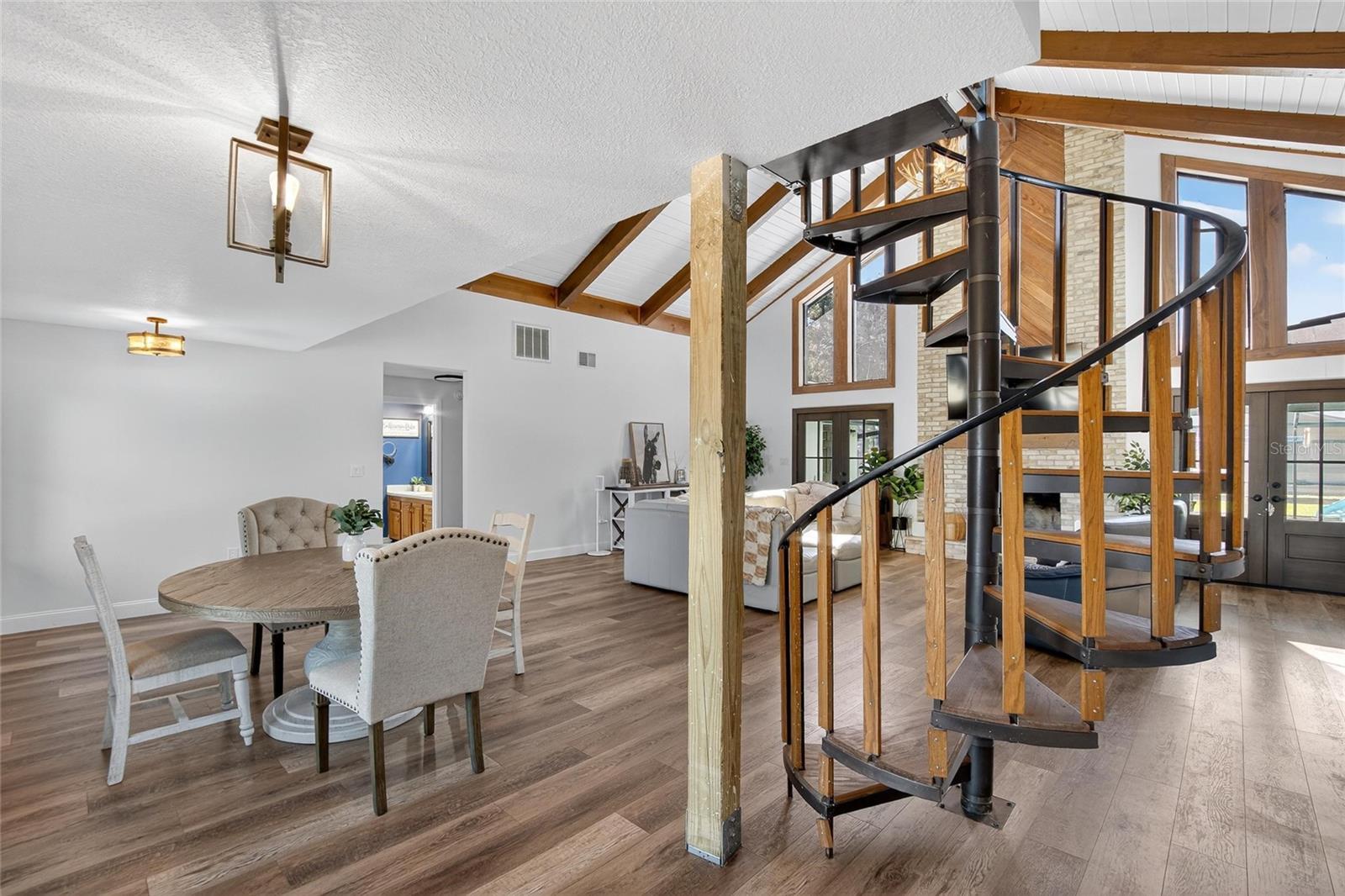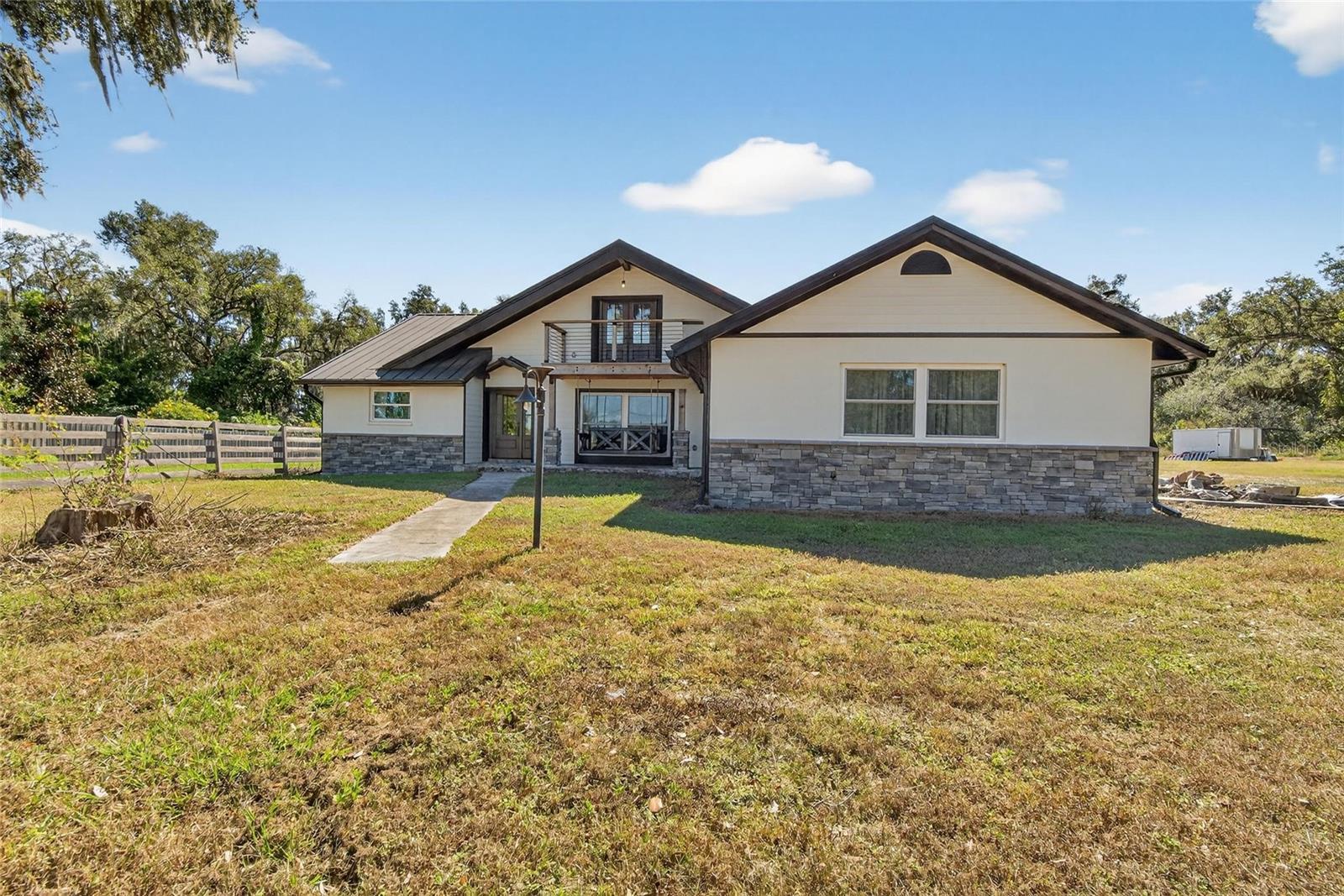 RENOVATED COUNTRY LIVING ON 3 ACRES WITH POOL & BARN!? *****HIGH AND DRY - NO FLOODING***Enjoy the charm of country living with modern upgrades and everyday convenience — all just minutes from I-4. This inviting 3 BEDROOM, 3 BATH HOME with LOFT, POOL, and 1,500 SF BARN is perfectly situated on 3 FENCED ACRES, thoughtfully divided into separate sections for animals, GREENBELT, and recreation. Inside, the open living area features 20-FOOT CEILINGS, WOOD BEAMS, REAL WALNUT ACCENTS, and a stunning FIREPLACE that serves as a focal point unifying the space. The kitchen blends functionality with timeless style, showcasing a QUARTZ SINGLE-SLAB ISLAND with storage, REAL COPPER SINK, SMART LG APPLIANCES, WALK-IN PANTRY, and custom walnut trim. The PRIMARY SUITE is a true oasis, offering a CUSTOM AMISH-BUILT VANITY, QUARTZ COUNTERTOPS, a 70-SQ-FT WET ROOM, and a HUGE WALK-IN CLOSET. Upstairs, the LOFT with WALKOUT BALCONY overlooks the property and provides a flexible living or office space. Major updates ensure peace of mind with updated energy efficient vinyl windows and IMPACT RATED ENTRY DOORS (with transferable warranty), NEW DUCTWORK, refurbished AC units, NEW WATER SOFTENER, and a LIFETIME STANDING SEAM METAL ROOF (approximately 10 years) with SEAMLESS GUTTERS. The exterior has been re-stuccoed and painted. The barn is ready for horses (or hobby) complete with water and electric service, two 15x18 stalls and two 15x20 stalls (two with rubber padding), water basins, bins, and breezeways on both sides for convenience. A tack room with loft storage adds organization, and a separate 15x20 concrete slab (current shed) nearby offers space for a new workshop, or future structure. The new back fence and stabilized trees following the 2024 hurricanes enhance both safety and longevity. Outdoor living is just as enjoyable, featuring a SCREENED POOL with NEW POOL PUMP and HOT TUB (4 years new). The POOL BATH offers convenient access for outdoor gatherings, and the HERRINGBONE BRICK FLOOR laundry/mudroom provides a stylish, practical transition indoors. With thoughtful renovations, quality updates, and dry land, this property offers a comfortable and functional country lifestyle ready to be enjoyed for years to come.