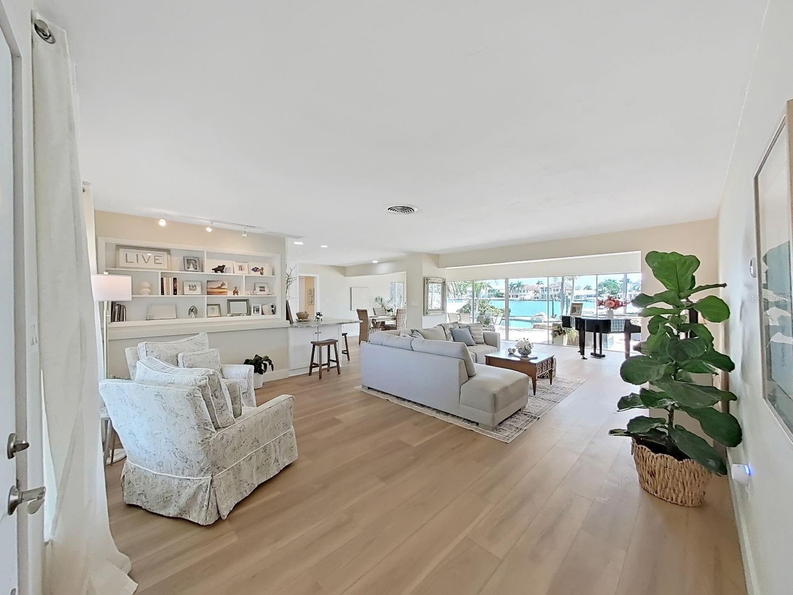 Move right in to this beautifully renovated coastal contemporary home on an extraordinary oversized waterfront lot in the prestigious Bath Club Estates of North Redington Beach. This rare nearly half-acre (.46-acre) property sits on a quiet cul-de-sac surrounded by fine waterfront homes, offering the perfect blend of privacy, space, and resort-style living. If you are looking to build your Dream Home This lot is priced at under $71 per square foot!!! Do your research on waterfront lots and see what they are selling for per square foot... Step inside to an open, sun-filled floor plan that flows seamlessly toward panoramic water views. The home has been fully renovated with new luxury vinyl plank flooring, a top tier kitchen with stunning stone countertops, all new LG stainless-steel appliances, and updated baths featuring elegant coastal finishes. Enjoy the serenity of protected waterfront on a wide basin with sunny southern exposure, ideal for boating, paddleboarding, or simply relaxing by the lagoon style pool and spa. Outdoors, tropical landscaping frames a spacious paver patio and pool deck, perfect for entertaining. The property includes a two-car garage and split-bedroom layout for added privacy. Located just steps from a neighborhood park with a walking path, gazebo, playground, and pickleball and tennis courts, this home is part of a community with underground utilities, lantern-style streetlights, and natural gas access. You’re also an easy stroll to the white sands of North Redington Beach, with resident-only parking and beach access. With low town taxes and a central location near shopping and dining, this property combines the best of coastal tranquility and everyday convenience. Note: The home experienced flooding for the first time during Hurricane Helene and has undergone fully permitted professional remediation and renovation — all work completed to modern standards for peace of mind. Choice Ultimate Home Warranty offered to Buyers.