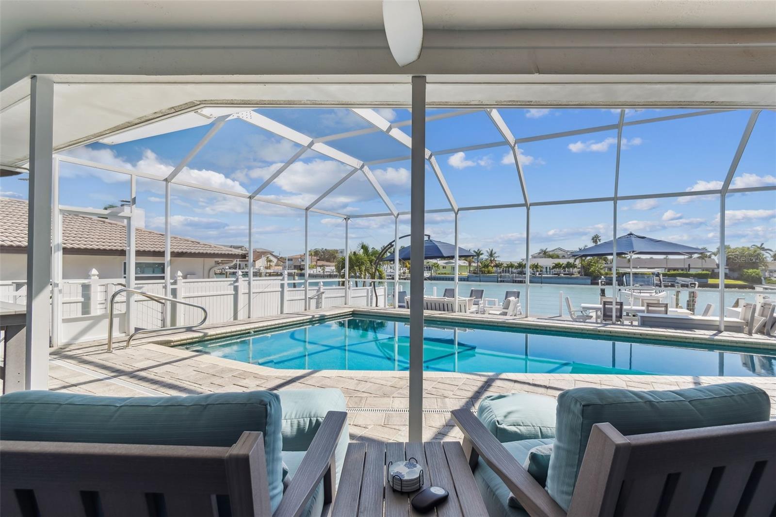 Completely Renovated Waterfront Luxury Home in Belleair Beach! Welcome to 320 Belle Isle Avenue, a beautifully reimagined coastal residence offering the very best in Florida waterfront living. This elevated home (9.9 ft above sea level) had no interior flooding during any hurricanes, providing added peace of mind in a premium location. This turn-key property has undergone a complete renovation inside and out, blending modern elegance with thoughtful functionality. Features include all-new wide-plank flooring, fresh interior/exterior paint, upgraded lighting throughout, epoxy garage flooring, custom tile entry, a fully remodeled chef’s kitchen with an oversized peninsula and high-end Kitchen Aid appliances. The luxurious primary suite boasts a spa-inspired bath with wet room, commercial grade steam shower and a custom walk-in closet. All bathrooms have been fully remodeled, including a stylish pool bath and a third full bathroom was added for enhanced convenience. Outdoor living shines with a resurfaced pool, new pavered pool deck, new pool pump and heater, upgraded outdoor kitchen and shower, new pavered driveway, refreshed tropical landscaping, and a resurfaced waterfront deck with storage underneath. All-new impact-rated windows and doors and a new garage door adds efficiency and storm protection. The seawall and dock have both been redone, featuring a 16,000 lb boat lift and 8,000 lb dual jet ski lift with kayak/sup launch. This is a rare opportunity to own in the highly sought after Belleair Beach community. Direct water access with close proximity to the Gulf, popular beaches, shopping and dining are the epitome of Florida living. This home offers elevated peace of mind, luxurious finishes and the relaxed elegance that coastal living dreams are made of.