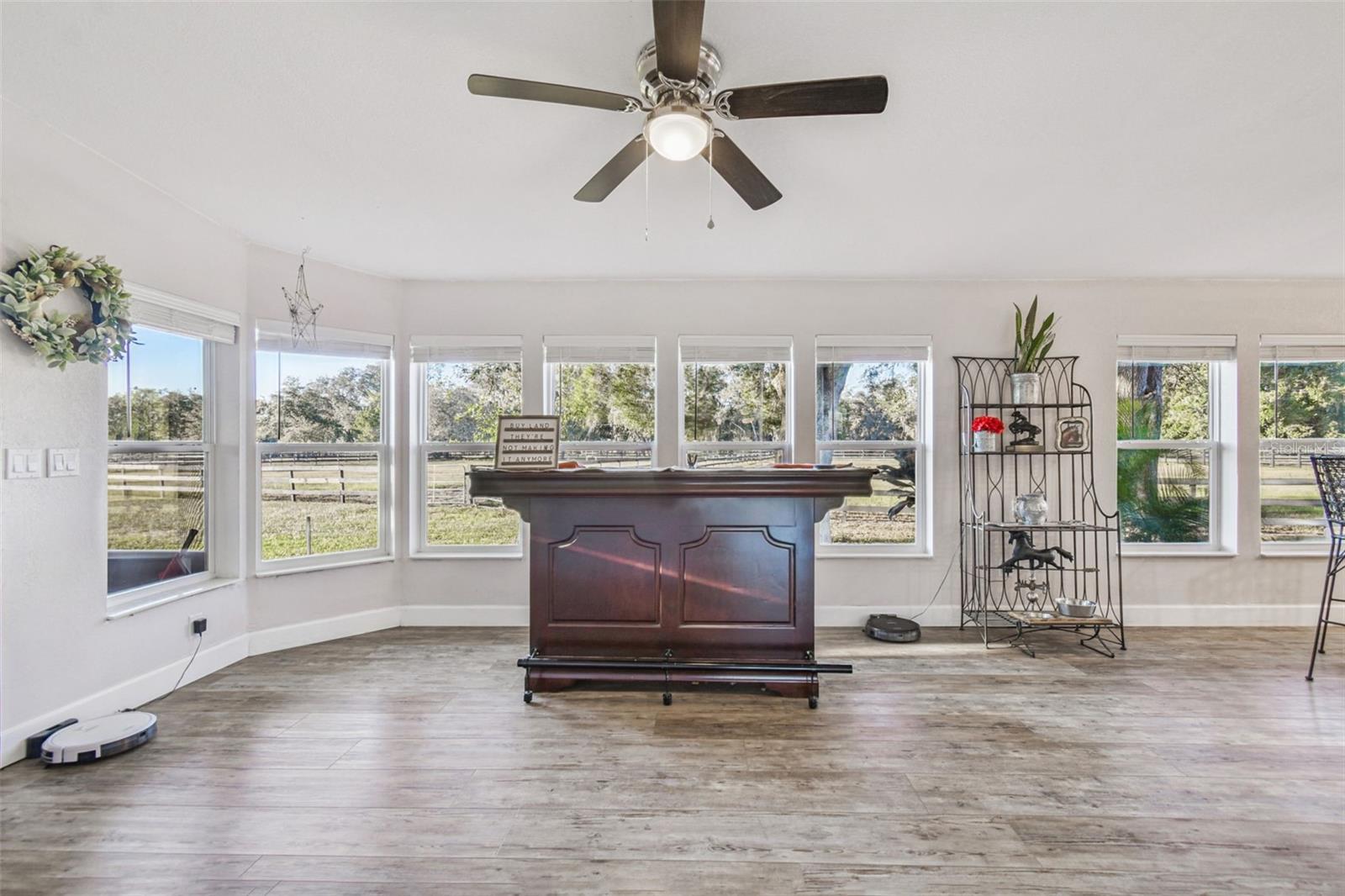 Offered for your consideration a farm that encompasses the best of both worlds. 12714 Tyler Run Ave is in Keystone, an unincorporated area of Odessa, FL. This neighborhood is home to many horse farms and it is common to see equestrians riding their horses down the road to trail ride through 1100 acres in Lake Dan Preserve. This property is just under 10 acres of high and dry land. Come in through the automatic gate and travel down the tree-lined driveway straight to the barns. This farm has been an income producing boarding and training facility for years. It is set up with convenience for clients in mind and there is plenty of parking for cars and trailers. The main barn is an insulated center aisle barn situated east to west to take advantage of the sea breeze. With plenty of mature oaks there is always a breeze and shade even on the hottest summer days. With a center aisle barn with 11 stalls plus 2 more in a paddock this farm can easily accommodate more than a dozen horses. All stalls have their own water shut off valve for water buckets, electric for fans, and mats with clay underneath. The main barn houses a very large tack room, a wash rack with hot water, extra grooming racks, and an open porch with a hanging swing and chairs for the riders. There are also two outside wash racks shaded by oak trees. The riding area is closed in with fencing and a gate. It consists of a professionally installed arena and a round pen. The base for both the arena and round pen is limestone screenings. The footing is angular sand (the same used for GGT footing). The dressage arena has full length mirrors, irrigation and four 600-watt high pressure sodium lights for evening riding. There is ample room to ride behind the mirrors and on the perimeter of the dressage arena. There are plenty of other places for riding and turnout. There is a galloping field, two large front pastures, and four smaller paddocks. Other farm amenities include an insulated storage container for feed and hay. A 30X50 garage with a double door and two single doors that can house automobiles and farm equipment or be used as a workshop. Included is a 120 gallon 5 hp air compressor. Inside the garage there is an enclosed air-conditioned area that can be used as an office. The barn bathroom is a stand alone building with a full bath along with a washer and dryer. Next to this building is a finished handy house with a kitchenette and a loft. The 3-bedroom 2 bath home has many updates and additions. Over the last two years the house has undergone $130k in renovations. (See the attached document). The primary bedroom has 2 walk-in closets, double sink, a new shower and a private toilet room. The kitchen has been recently renovated, and its design makes for easy maneuvering while cooking. The kitchen has an abundance of soft close drawers and cabinets. The home is made by Jacobsen. Built in the Tampa area since 1959 and known for its strength, quality craftsmanship, and durability...even standing up to the strongest of hurricanes, Jacobsen Homes is the oldest and largest builder of manufactured homes in the state of Florida. See attachments for more information. Next to the house is a two-car garage measuring 24X26. Inside this garage is an Aquasure which is a water treatment system specifically designed for well water. This farm wants nothing and offers you everything you could desire in a turn-key equestrian estate. Call for your private viewing.
