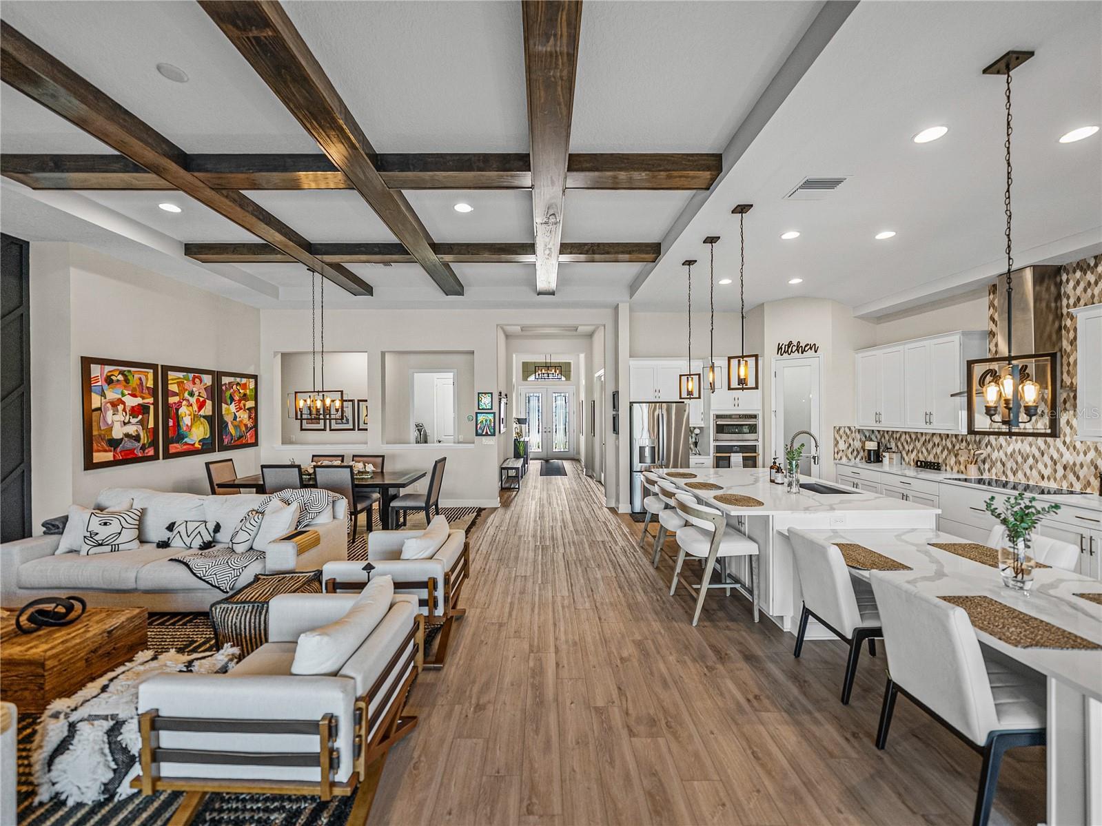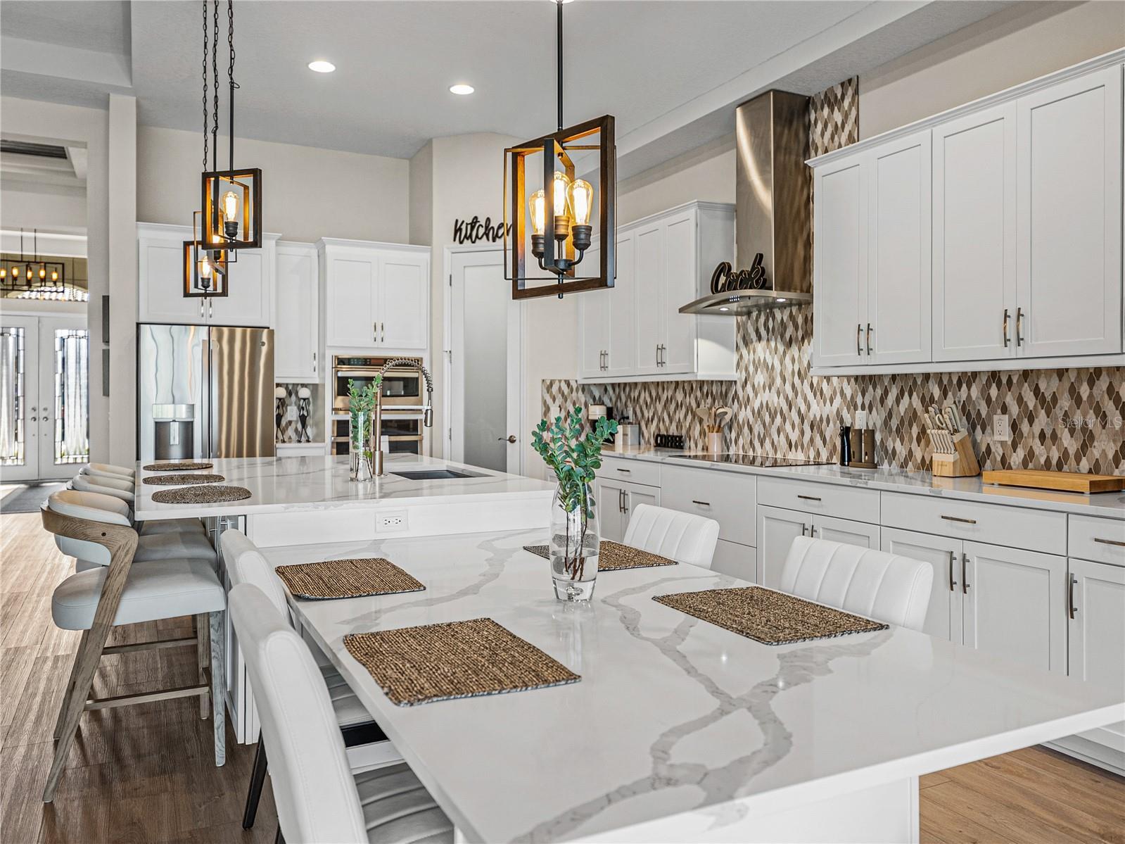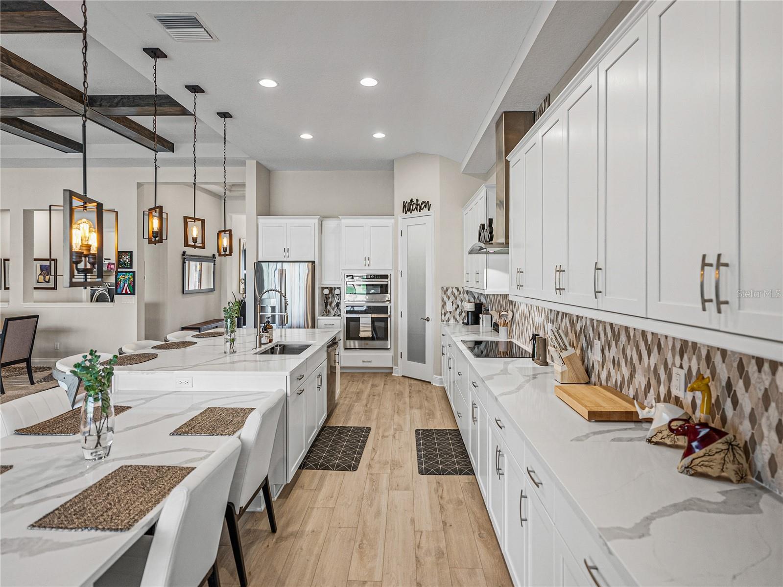 This extraordinary WestBay-built single-family home in the prestigious Mirada community of San Antonio, Florida, is the epitome of luxury, comfort, and resort-style living, offering 4 bedrooms, 3 bathrooms, and a spacious 3-car garage. Thoughtfully designed with a perfect balance of elegance and functionality, the home showcases soaring 12-foot ceilings, expansive open-concept living areas, and breathtaking pond views that create a true sanctuary. The gourmet kitchen is a chef’s dream, featuring premium GE PROFILE appliances, a 36” cooktop, convection microwave, sleek range hood, and full smart home integration, flowing seamlessly into the grand living and dining areas that open onto a covered lanai. The master suite is a private retreat with panoramic water views, a spa-inspired super shower, and custom walk-in closets, while an additional bedroom has been transformed into a private en-suite ideal for family or guests. The laundry room is equally functional, including a washer/dryer set with pedestal drawer and a utility sink for added convenience. Step outside to your personal oasis, where a beautifully landscaped yard, paver driveway, pool deck, and resort-style screened pool await—complete with remote-controlled multi-color lighting, an outdoor kitchen, and a solar-powered remote-control terrace screen for effortless indoor-outdoor living. Enhanced with thoughtful upgrades such as gutters, shutters, a water softener, and an AIPER wireless pool vacuum, this home also offers peace of mind with a nearly new roof, high-efficiency A/C system, and water heater. Nestled in Mirada, a master-planned community known for its world-class lagoon, resort-style pool, trails, parks, and vibrant atmosphere, and conveniently located near Tampa’s shopping, dining, and entertainment, this home is more than a residence—it’s the Florida lifestyle at its finest.