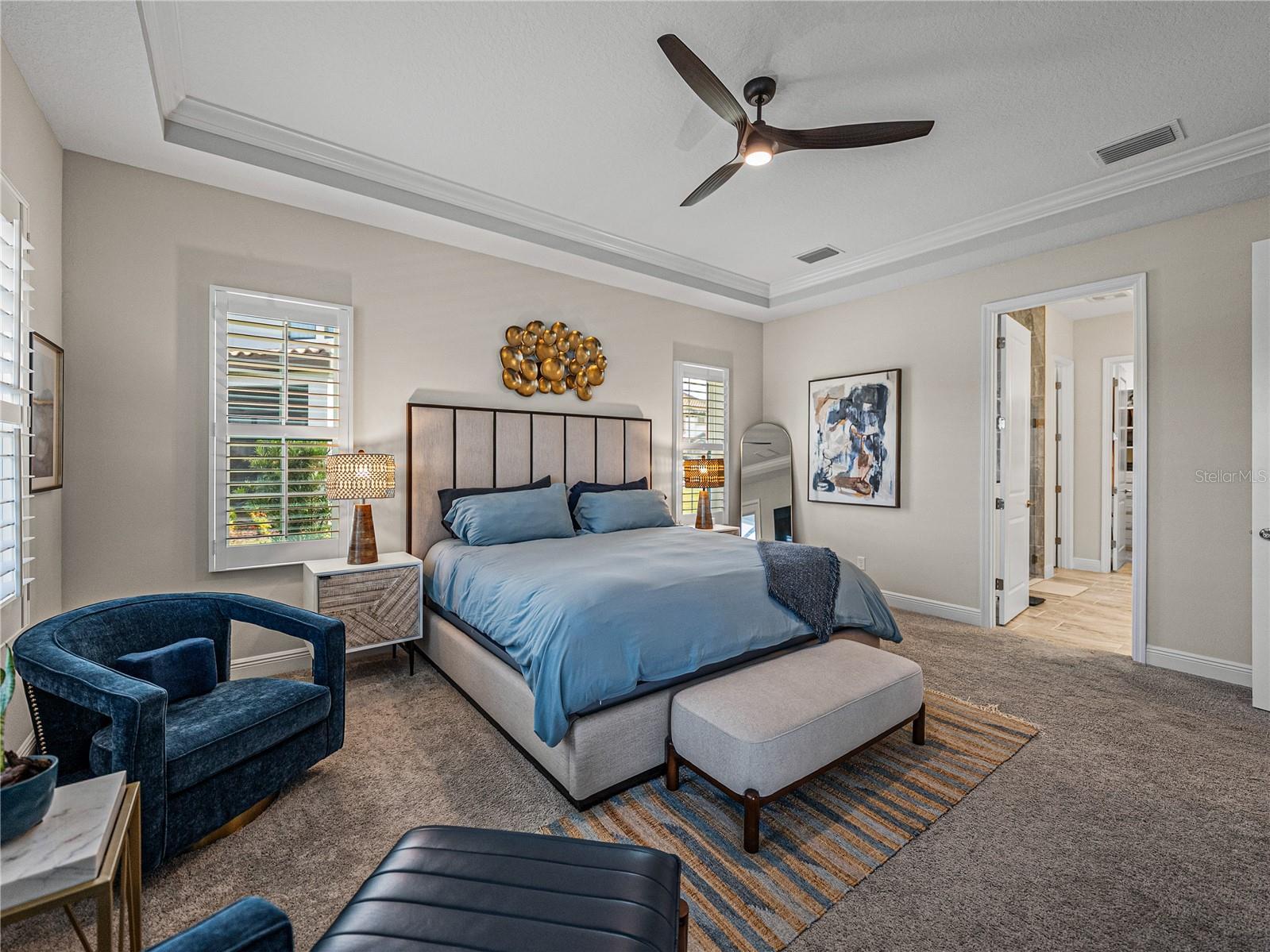 - Ceiling Fans(s), High Ceilings, In Wall Pest System, Open Floorplan, Stone Counters, Walk-In Closet(s)