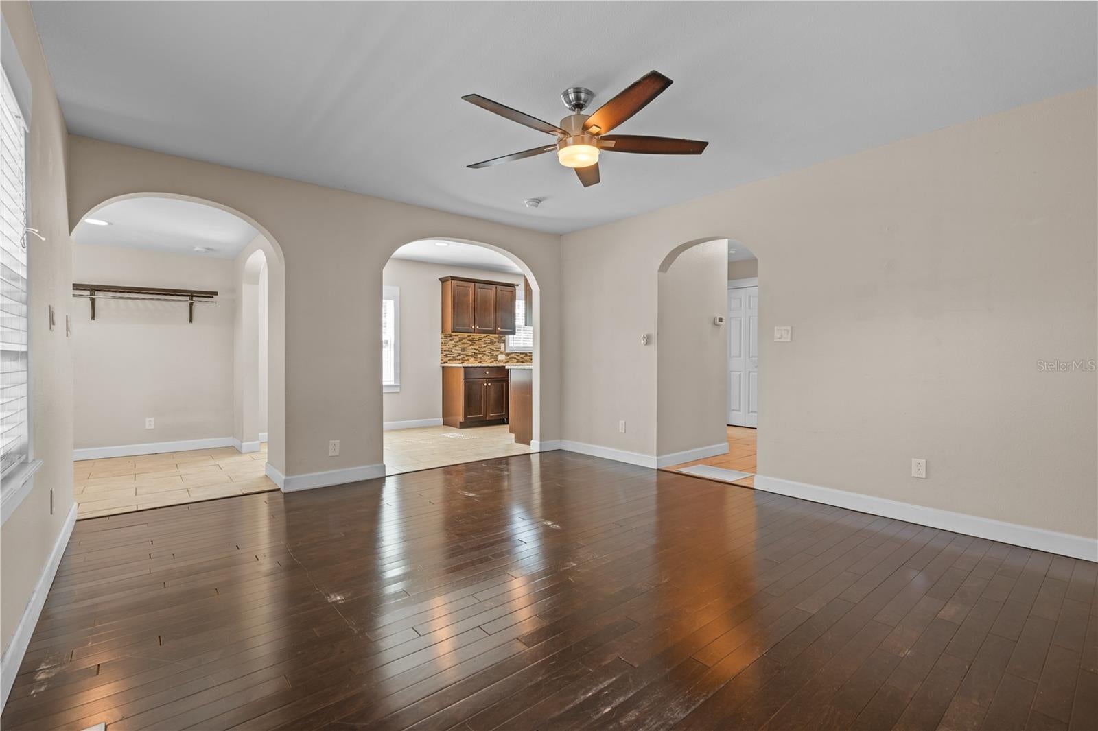 - Ceiling Fans(s), Eat-in Kitchen, Living Room/Dining Room Combo, PrimaryBedroom Upstairs, Solid Surface Counters, Solid Wood Cabinets, Split Bedroom, Stone Counters, Thermostat, Walk-In Closet(s), Window Treatments