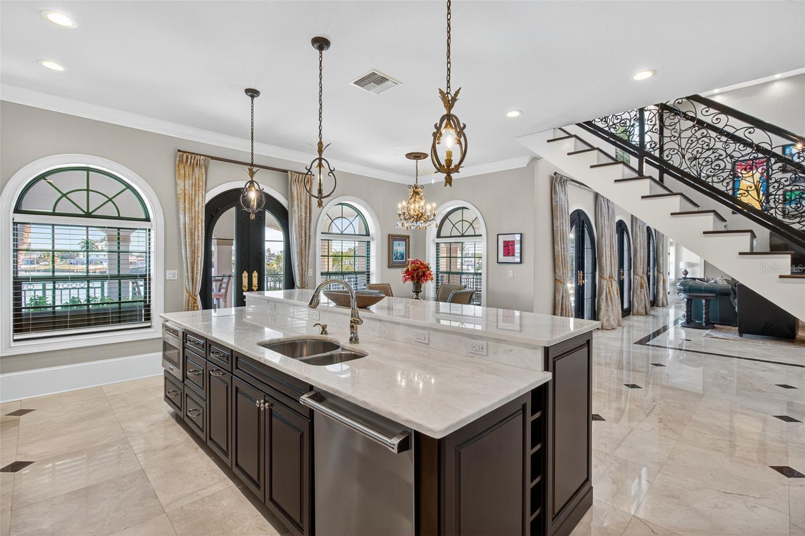 Welcome to Yacht Club Estates! This 3-bedroom, 3-bath home private office home offers over 3,600 sq. ft. of waterfront living on a rare cul-de-sac lot with 100 feet of waterfront. Enjoy a custom dock with a 32’ lift, water, electric, solar lighting, and a newer seawall (2019). Built with 2x6 insulated walls and impact windows, the home is elevated so the main living areas stayed dry during recent storms.Inside, you’ll find open living and dining areas that lead to a large waterfront terrace—perfect for entertaining. The kitchen features Viking appliances, quartzite countertops, a wine cooler, and an ice maker. The entire upper level is a private owner’s suite with a balcony, dual closets, and a spa-style bathroom.Additional features include two guest bedrooms, a dedicated office, a heated saltwater pool, and two 2-car garages. With direct access to Boca Ciega Bay, the Gulf, nearby beaches and downtown St. Pete, this home offers the best of waterfront living.