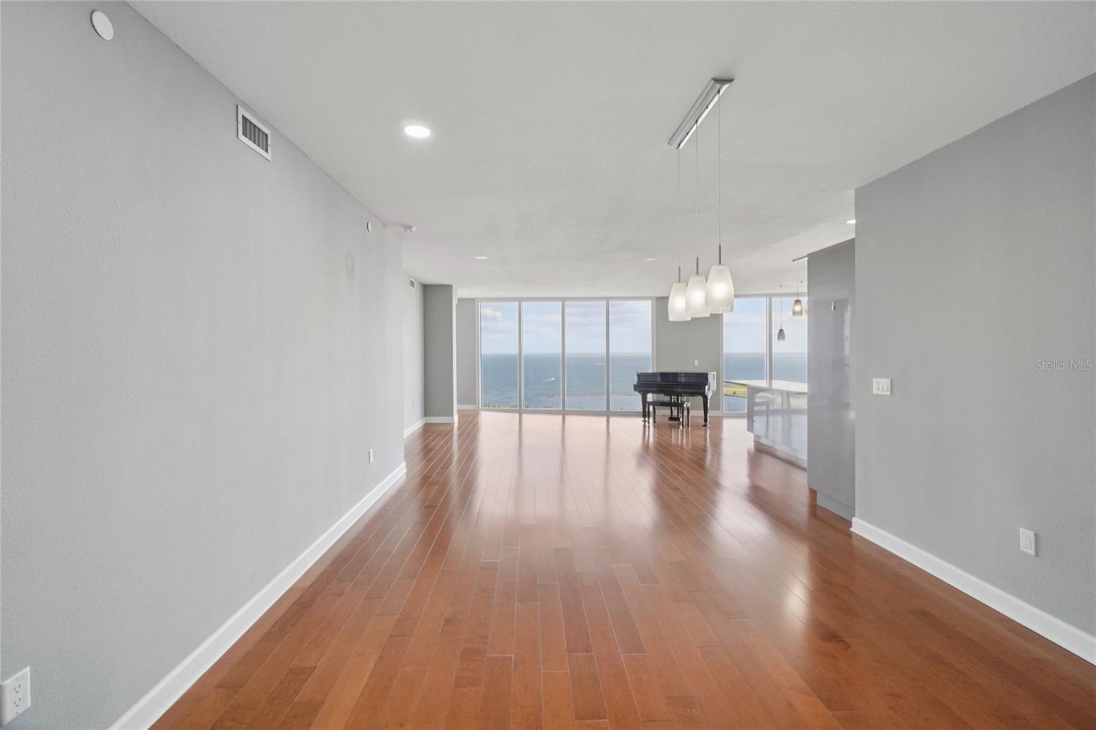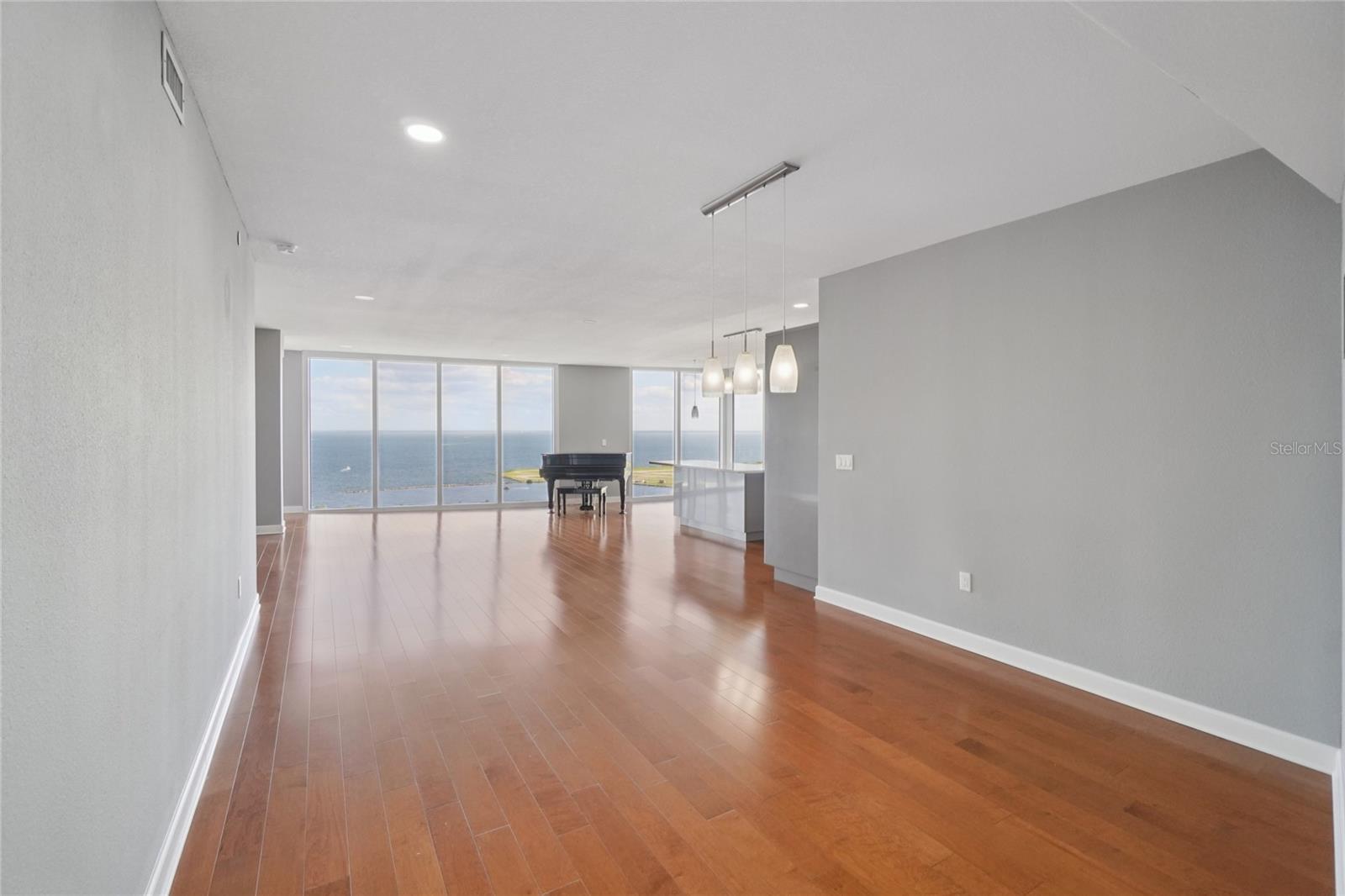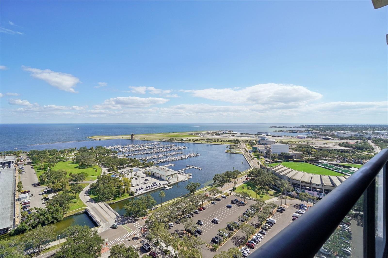 Bayfront Tower - Exceptional Water frontage of Tampa Bay in the heart of Downtown St. Petersburg, open water view 180 degrees. Updated 2 bedroom 2 bathroom with a Den. 1930 sf. Open floor plan with Kitchen moved forward to allow due exceptional view and large island. Split bedrooms, inside laundry room, two full massive bathrooms ensuite. Large walk in closets and dressing areas. New windows, triple-pane, high-efficiency impact-rated windows, newly installed Sprinkler system, manufactured wood floors throughout, Tile baths and carpet in primary. The kitchen is the modern European grey custom cabinetry, lots of counter space and storage, steel appliances, good size balcony that faces East on waterside plenty room for a table and chairs or patio type comfy entertaining. The entire building was updated and is in the process of complying with the required Engineer report. When this building was built unlike many today where there are only penthouses that get to enjoy the panoramic views, on this one all the amenities, a rooftop breathtaking views, head pool, a state-of-the-art fitness center, exercise and massage rooms, a game room, library, full restaurant size party kitchen and dance floor, bar area and running track and walking track on two different floors. With four elevators, one for deliveries, pets with outside access. Covered parking, valet parking, 24 hour security, concierge and wonderful maintenance men. St Petersburg has side walk cafe’s, a gastronomic access to world class dining. Waterfront parks, museums, orchestra, opera, live theater and more. Treat yourself to luxury at its finest at an amazing affordable price.