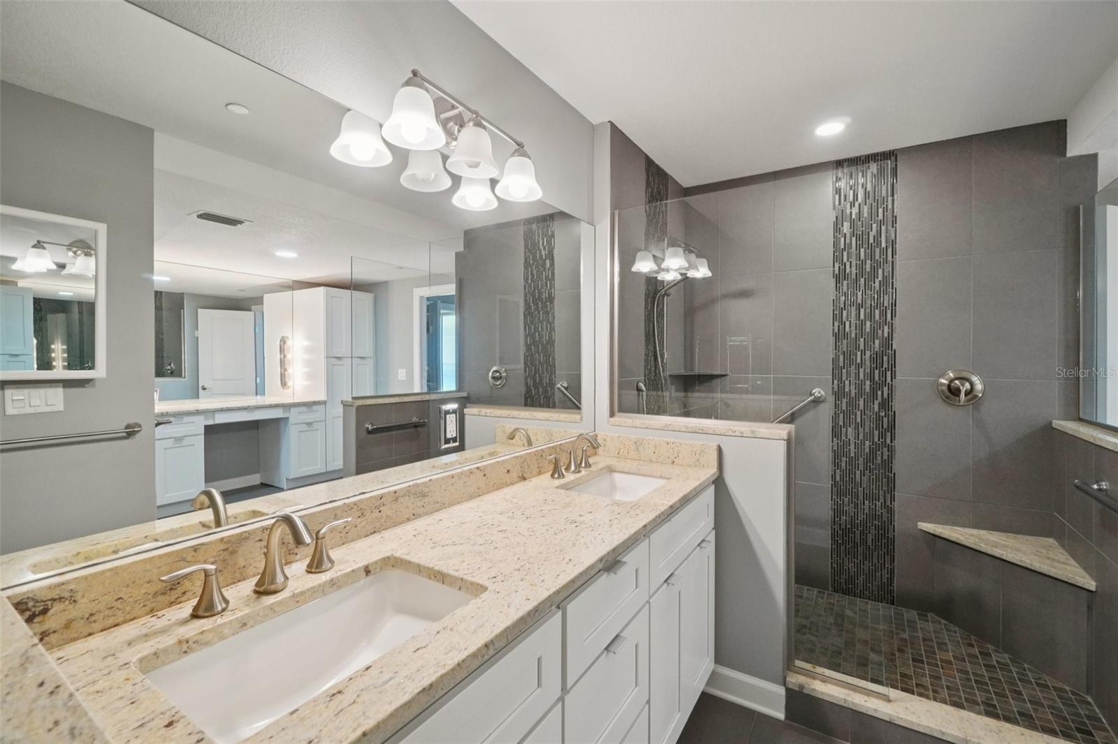 - Eat-in Kitchen, High Ceilings, Open Floorplan, Primary Bedroom Main Floor, Solid Surface Counters, Split Bedroom, Thermostat, Walk-In Closet(s)