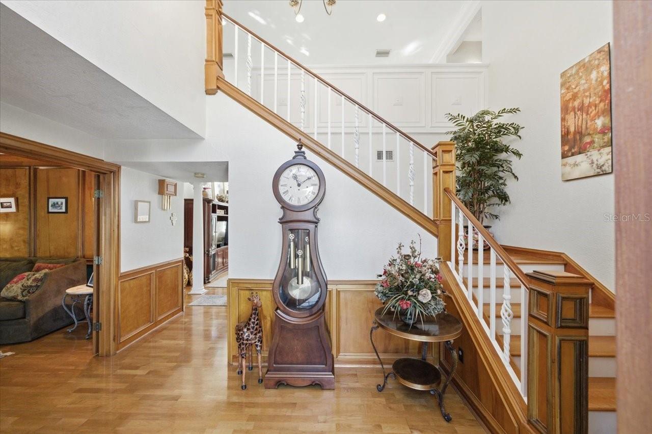 Under contract-accepting backup offers. Tucked away in a quiet "hidden" retreat neighborhood, high and dry, non evacuation zone and conveniently central to all of Dunedin's amenities, this elegant Two-Story Estate with Pool and Expansive Grounds is truly special. Welcome to Indian Creek Court. This stately 4-bedroom + den and bonus room, 3.5-bath residence with a 3 car side load garage is perfectly situated on a spacious, beautifully landscaped lot in one of Dunedin’s most desirable neighborhoods. Classic charm meets modern comfort in this impressive two-story home, offering ample room for both relaxing and entertaining. Inside, you’ll find formal living and dining rooms, ideal for gatherings and special occasions, as well as a warm, wood-paneled office or den—perfect for remote work or a quiet retreat. The kitchen and family areas flow seamlessly to the outdoor living spaces, creating a perfect setting for Florida living at its finest. Upstairs features three additional bedrooms, two baths and a bonus room that can be used for a second family room, media room, gym, or whatever you dream up. Step outside to your private oasis featuring a sparkling pool, expansive decking, gazebo, and plenty of open yard space for recreation or gardening. The meticulously maintained grounds provide a tranquil backdrop for morning coffee, weekend entertaining, or sunset relaxation. With its blend of timeless architecture, generous living spaces, and a resort-style backyard, and multiple recent upgrades including impact windows and doors and a whole house generator, this exceptional Dunedin home offers a rare opportunity to enjoy luxury, comfort, and privacy just minutes from the charming and bustling shops, restaurants, and waterfront parks of downtown Dunedin.