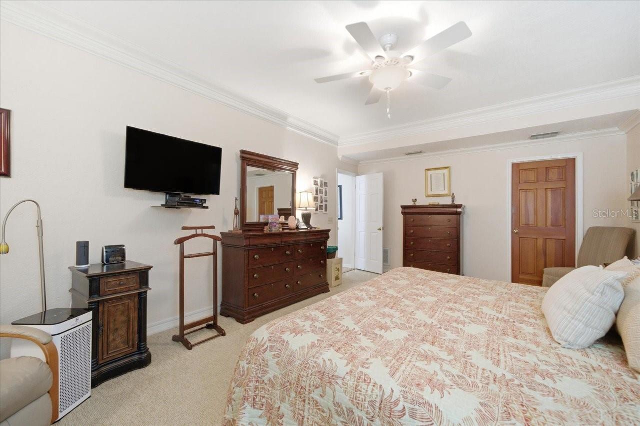 - Ceiling Fans(s), Crown Molding, Eat-in Kitchen, High Ceilings, Solid Surface Counters, Walk-In Closet(s)