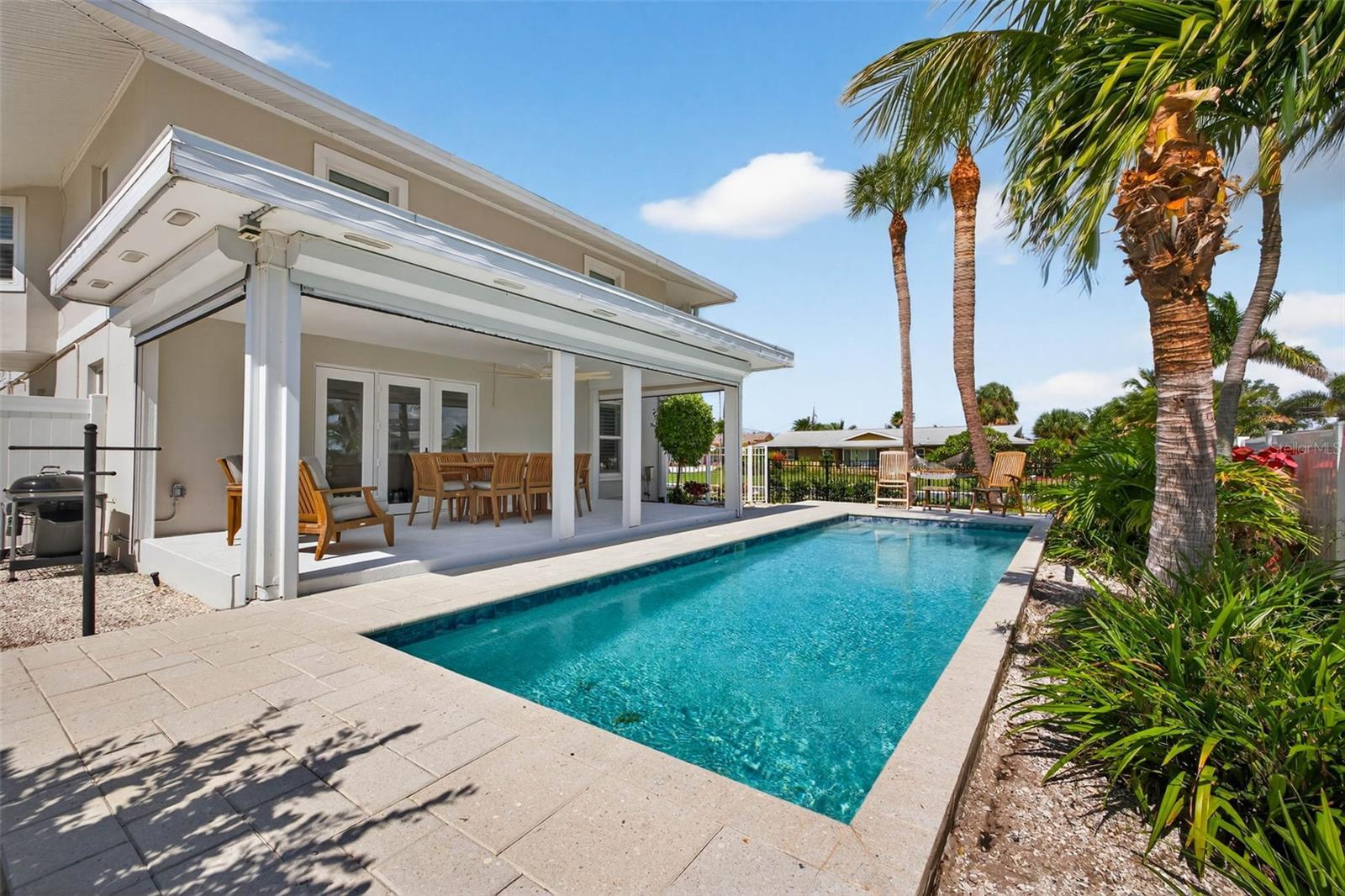 This is the home that delivers everything Florida living is meant to be. Perfectly situated on a corner lot just a three-minute walk to the beach, it embodies the sun-drenched, laid-back elegance of Belleair Beach. Styled in the soft, soothing hues of a modern coastal cottage, the home blends timeless design with contemporary comfort. Recent upgrades include hurricane-rated Pella impact windows and French doors, a new saltwater pool, and luxury finishes throughout—each choice reflecting thoughtful attention to safety, durability, and style. The spacious first level invites both quiet relaxation and lively gatherings. A custom wet bar with quartz countertops and soft-close cabinetry makes entertaining effortless, while the light-filled living area opens through impact-rated French doors to the pool deck. Outside, the saltwater pool and lounge area feature remote-controlled privacy and sun shades, creating an ideal retreat at any time of day. Upstairs, a smart split floor plan seamlessly connects open gathering spaces with private retreats. The chef’s kitchen showcases high-end appliances and refined details, and the front balcony fills the home with natural light while offering tranquil sky views and glimpses of the Gulf above the treetops—the perfect spot for morning coffee or sunset cocktails. (A complete list of updates and upgrades is available upon request.) Beyond the home, Belleair Beach elevates everyday living. You won’t find large crowds here—just cool, soft sand and the warm Gulf waters. Residents enjoy permit-only access to four resident beach parking lots, making spontaneous beach days a breeze. Morgan Park and multiple beach access points are within walking distance for those who love to put their toes in the sand. A short stroll away, Bayside Park features an active community center with tennis and basketball courts, a children’s playground, and bay access for boating, fishing, and more. Nearby fishing piers and neighborhood parks are only blocks away, perfect for evening strolls or a relaxing end to the day. Just pack your beach bag and wander to the shoreline—or return home to your private poolside haven. Don’t miss this rare opportunity to make this Belleair Beach treasure your everyday getaway, where ordinary days become extraordinary.
