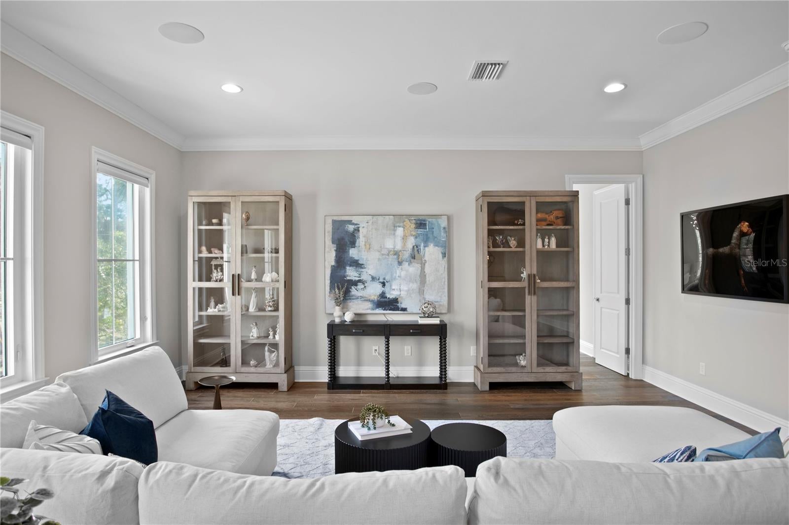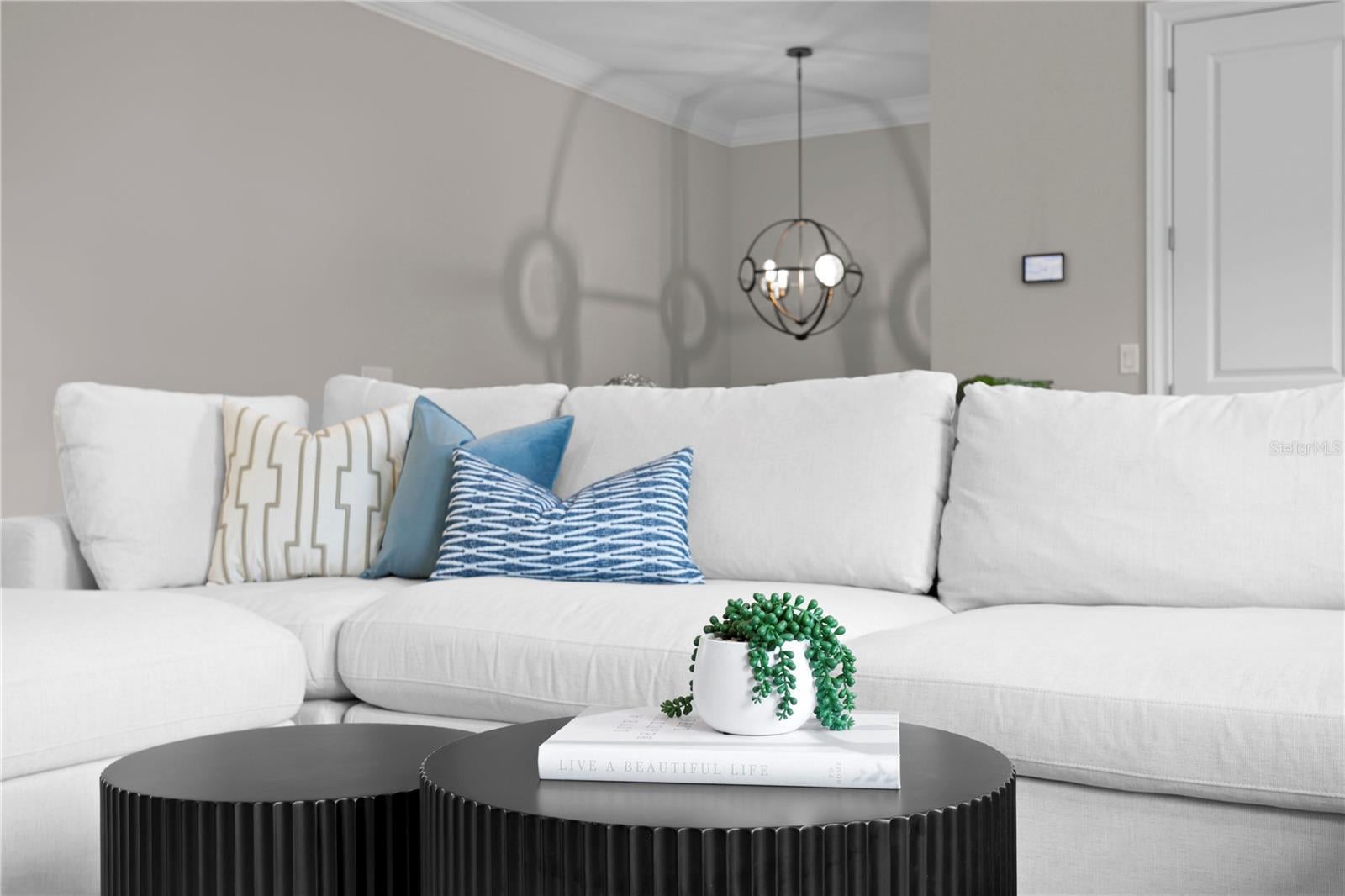 - Crown Molding, Eat-in Kitchen, High Ceilings, In Wall Pest System, Kitchen/Family Room Combo, PrimaryBedroom Upstairs, Solid Wood Cabinets, Stone Counters