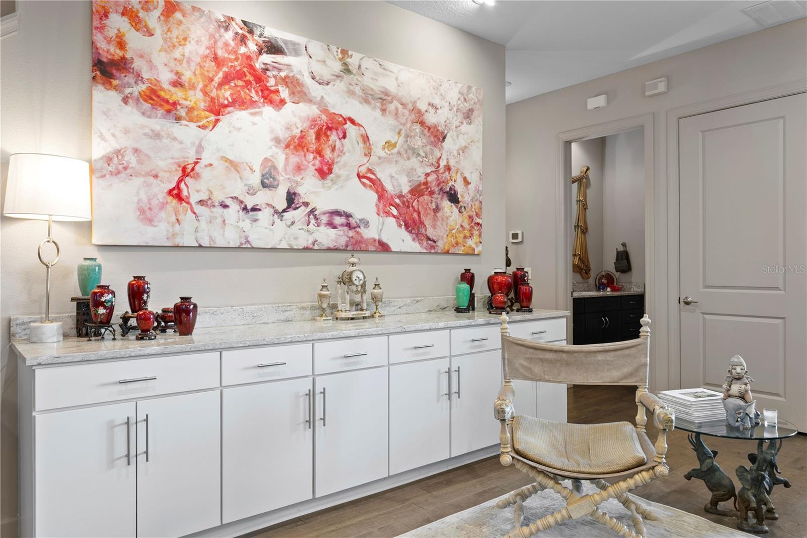 - Built-in Features, Ceiling Fans(s), Elevator, High Ceilings, Kitchen/Family Room Combo, Open Floorplan, PrimaryBedroom Upstairs, Split Bedroom, Stone Counters, Thermostat, Walk-In Closet(s), Window Treatments