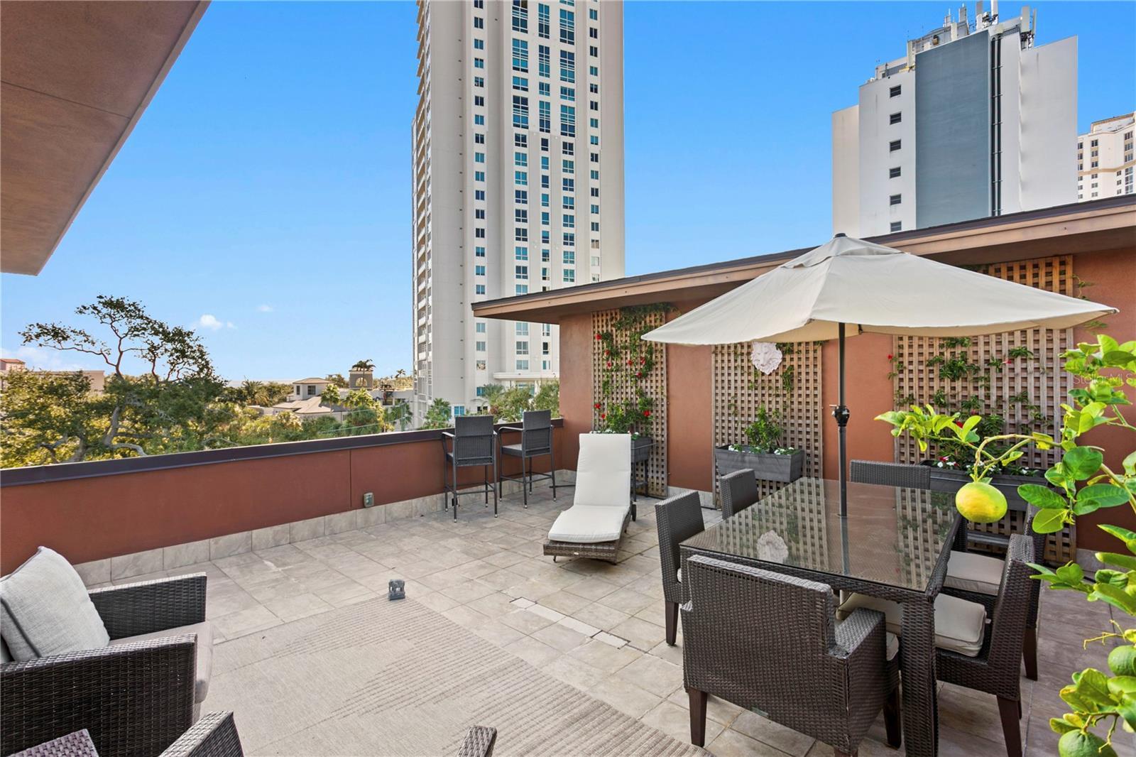 DOWNTOWN LUXURY | DUAL MASTER SUITES | PRIVATE ELEVATOR + LOW HOA This four-story luxury townhome with a private elevator offers a distinctive downtown lifestyle with East facing waterfront view from the rooftop level, all while being just steps from the restaurants, waterfront parks, galleries, and cultural attractions that define downtown St. Petersburg. Located within the exclusive eight-residence Towns on Fifth community, this 2,619 square foot home delivers generous living space and a thoughtfully designed four-level layout in the heart of the city. The ground level provides a flexible guest suite or studio, ideal for visitors, a media room, or additional living space. An entire level is devoted to the primary suite, creating a private retreat complete with an EcoSmart fireplace, spa-inspired bath, custom walk-in closets, in-suite laundry, and a dedicated office area within the suite—perfect for working from home while maintaining separation from the main living spaces. The main living level is designed for both function and entertaining, featuring an open-concept great room that flows seamlessly into a chef’s kitchen with a professional gas range, expansive stone island, custom cabinetry, Hunter Douglas shutters, curated lighting, and refined designer f inishes throughout. The rooftop terrace crowns the home with an east-facing outdoor space offering partial Tampa Bay and skyline views, ideal for entertaining, enjoying morning light, or relaxing above the city. Built north of the zoning line that now limits surrounding new construction, this residence benefits from protected sightlines and long-term value within a boutique eight-home enclave. While nearby projects face height restrictions, this townhome maintains its elevated position and sense of openness in a rapidly evolving downtown landscape. This boutique townhome offers condo-style luxury without high-rise density or excessive fees. With an exceptionally low HOA of just $186 per month, monthly ownership costs are significantly lower than nearby luxury condominiums. Located just moments from Beach Drive, Vinoy Park, the St. Pete Pier, waterfront parks, dining, galleries, and year-round events, this residence delivers walkable downtown living with privacy, space, and lasting value. A rare opportunity to secure modern construction, private elevator living, and low monthly fees in one of downtown St. Petersburg’s most desirable locations.