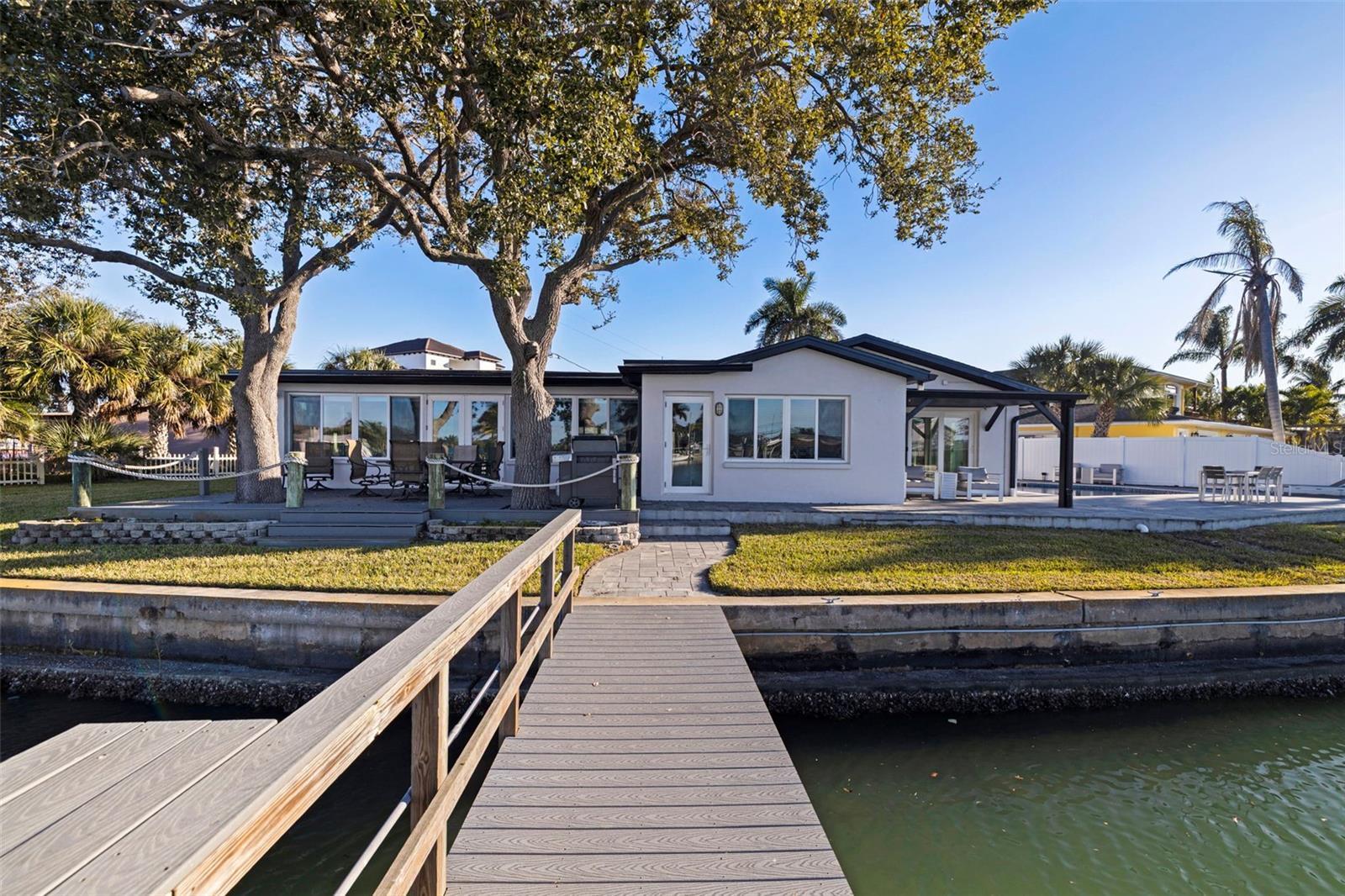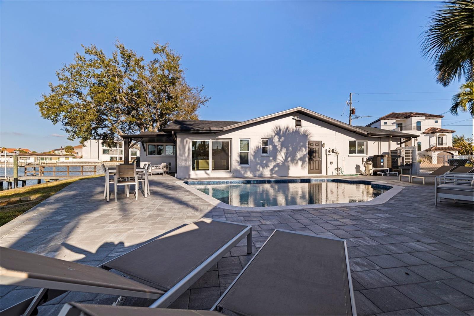 Beautifully renovated deep-water pool home on 1.26 acres in Pasadena Golf Club Estates, offering over 150 feet of seawall, a 10,000-lb lift, and quick 15-minute access to the Gulf of Mexico. This turnkey 3-bed, 2-bath coastal residence blends modern design with exceptional functionality, featuring impact windows and doors, custom cabinetry, quartz countertops, upgraded baths, and a sleek wet bar with a built-in wine refrigerator. The chef’s kitchen includes double ovens, an induction cooktop, premium cabinetry, and a farmhouse sink, with an adjacent dining area that opens directly to the waterfront deck. A split floor plan provides spacious living and family rooms filled with natural light and views of the water. Step outside to a private waterfront oasis. The composite dock (2019) includes a cleaning station, sink, and 10,000-lb lift. Deeded underwater rights offer potential for an additional dock, jet ski lift, or paddleboard launch. Enjoy the heated private pool, resurfaced in 2024 and surrounded by a new paver deck, along with multiple outdoor living and dining areas. Recent major upgrades include a 2024 roof, 2025 HVAC, and 2025 water heater for added peace of mind. Located in unincorporated Pinellas County, the property is short-term rental friendly, offering excellent options for primary residency, a seasonal retreat, or an income-producing investment. Conveniently positioned less than 10 minutes to St. Pete Beach, 15 minutes to downtown St. Petersburg, and 35 minutes to Tampa International Airport, with direct access to the Intracoastal Waterway, Boca Ciega Bay, Blind Pass, and Pass-a-Grille Channel. A rare combination of deep-water access, modern upgrades, and oversized lot in one of Pinellas County’s most desirable waterfront communities.